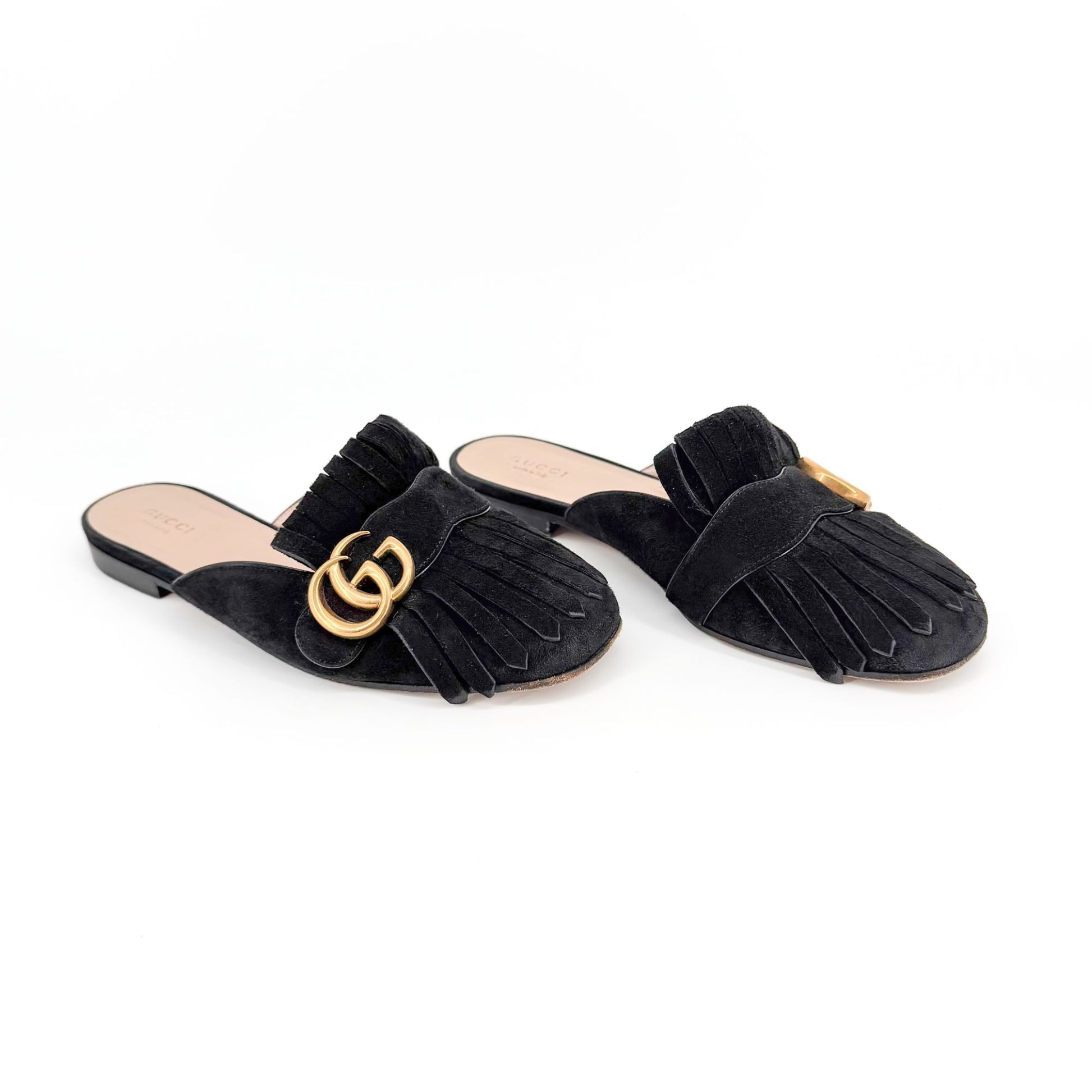 Gucci Marmont GG Fringe Black Suede Mules Size 37