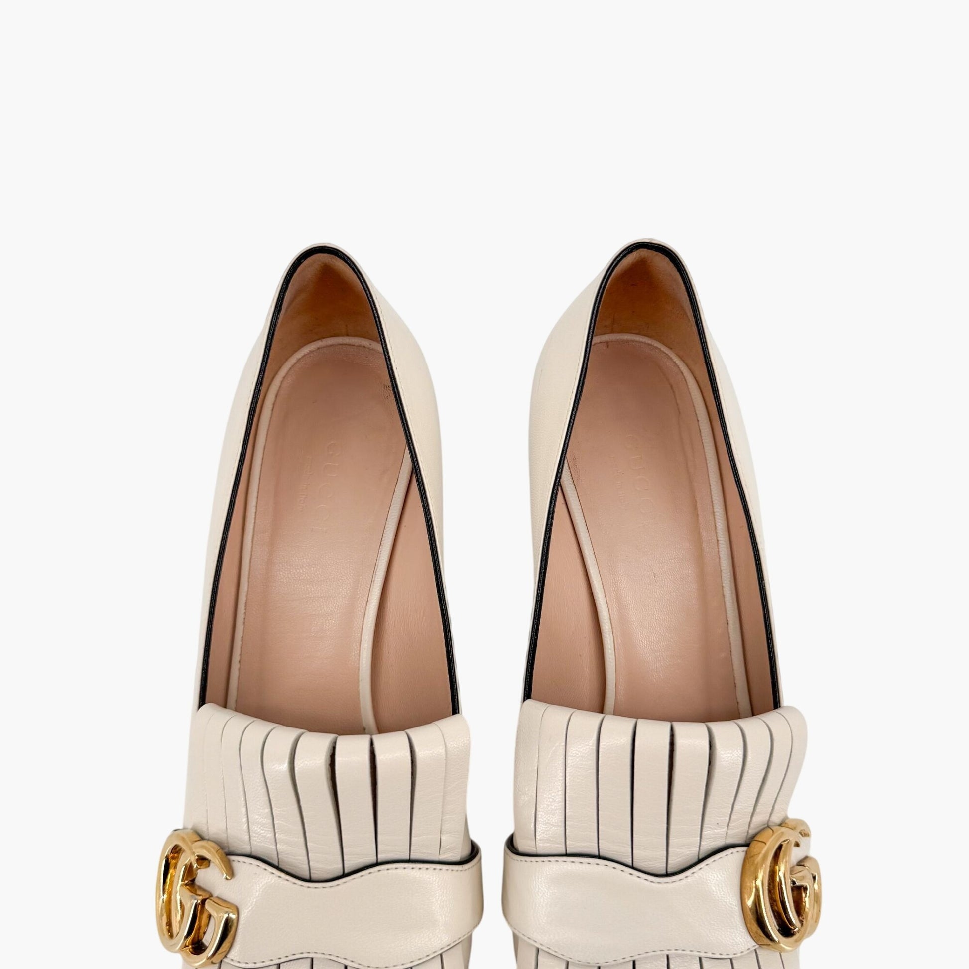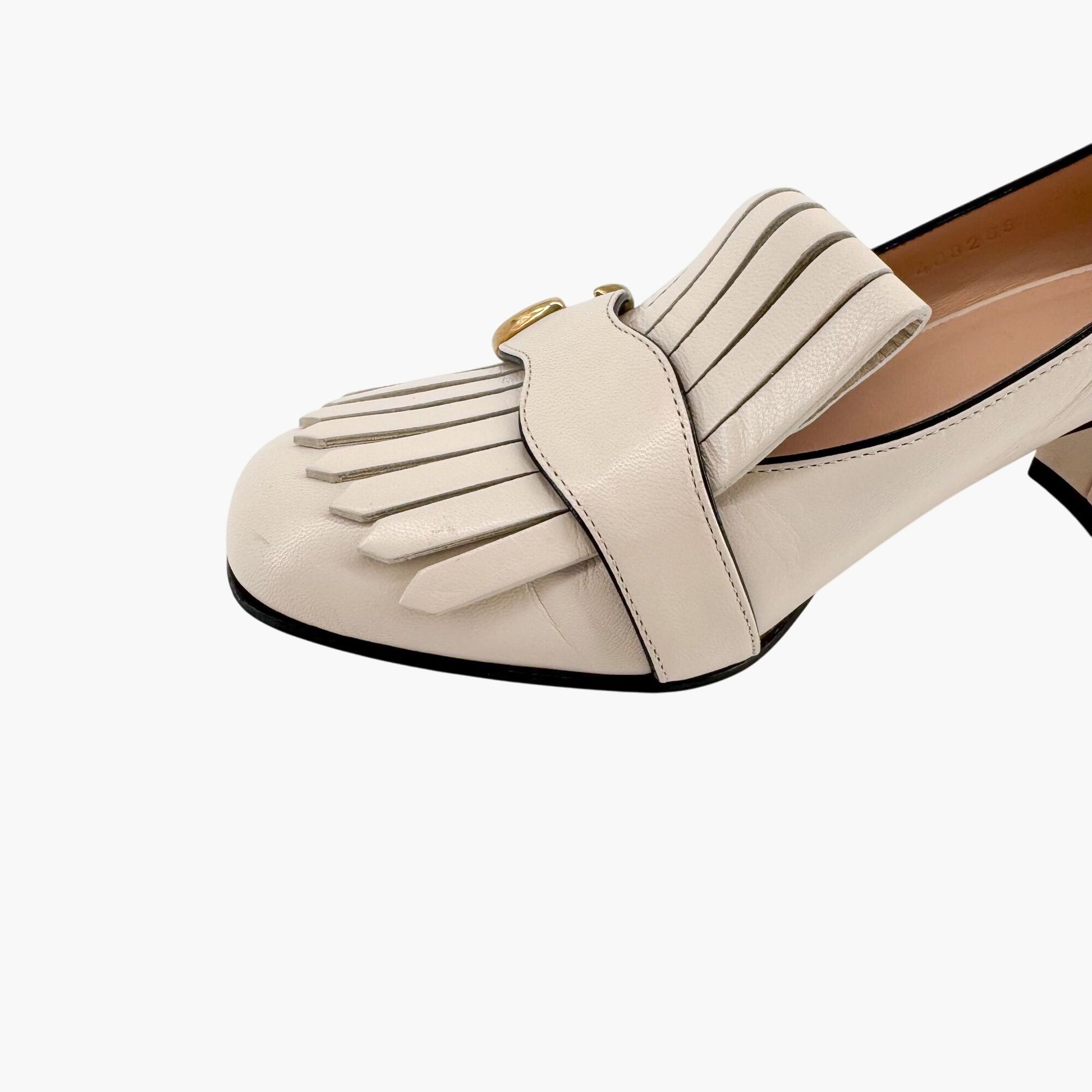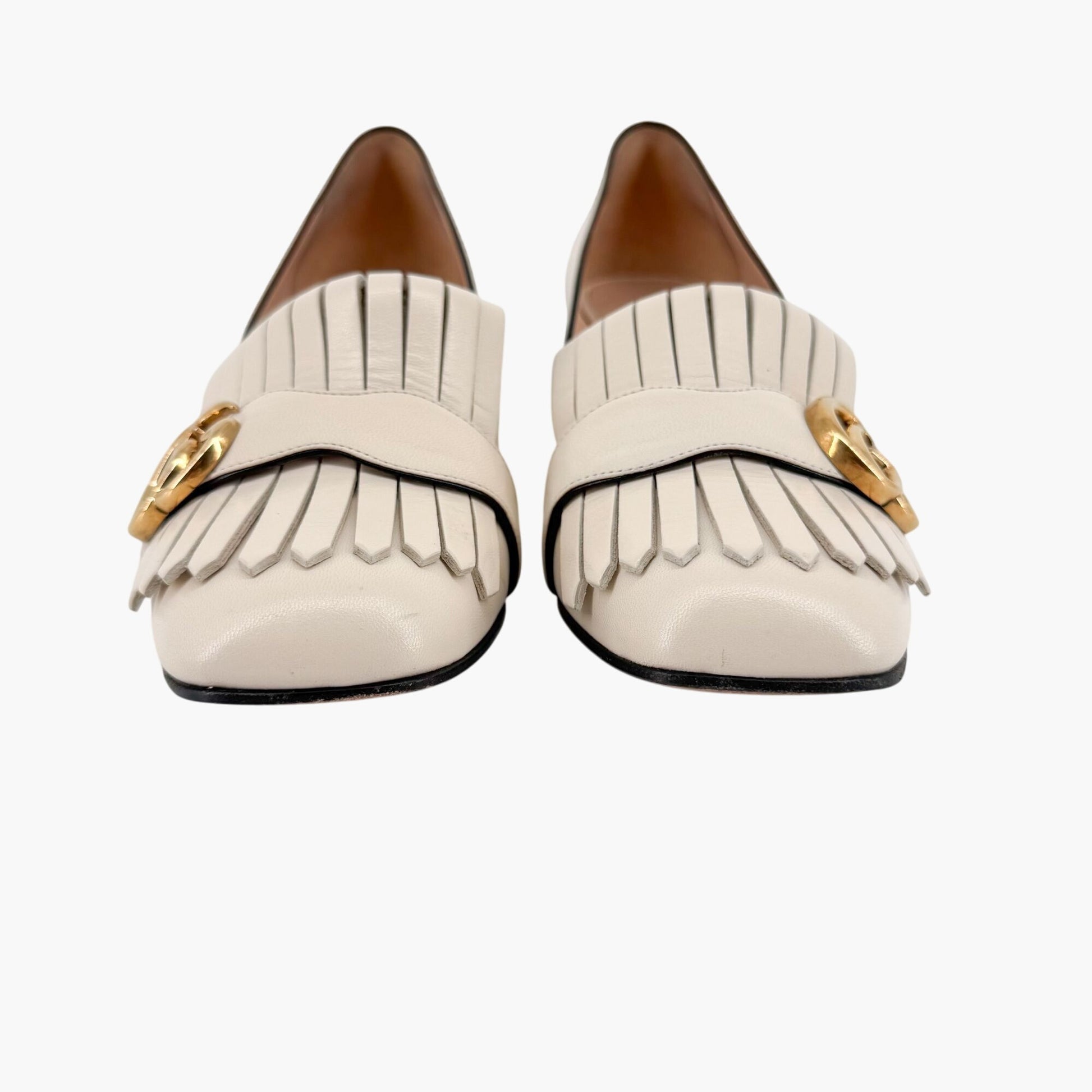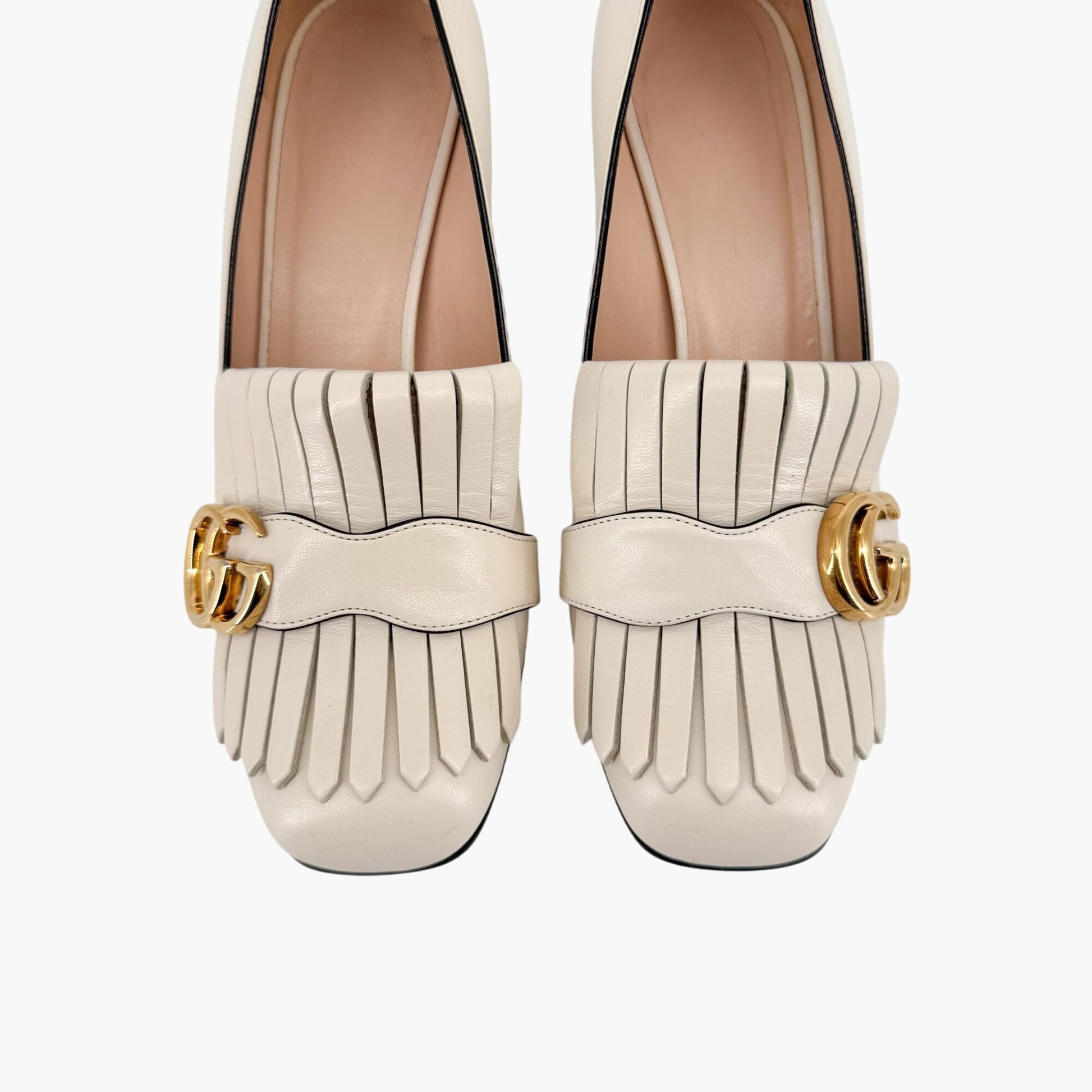 Gucci Marmont GG Fringe Loafer Pumps in White Leather – Size 37.5