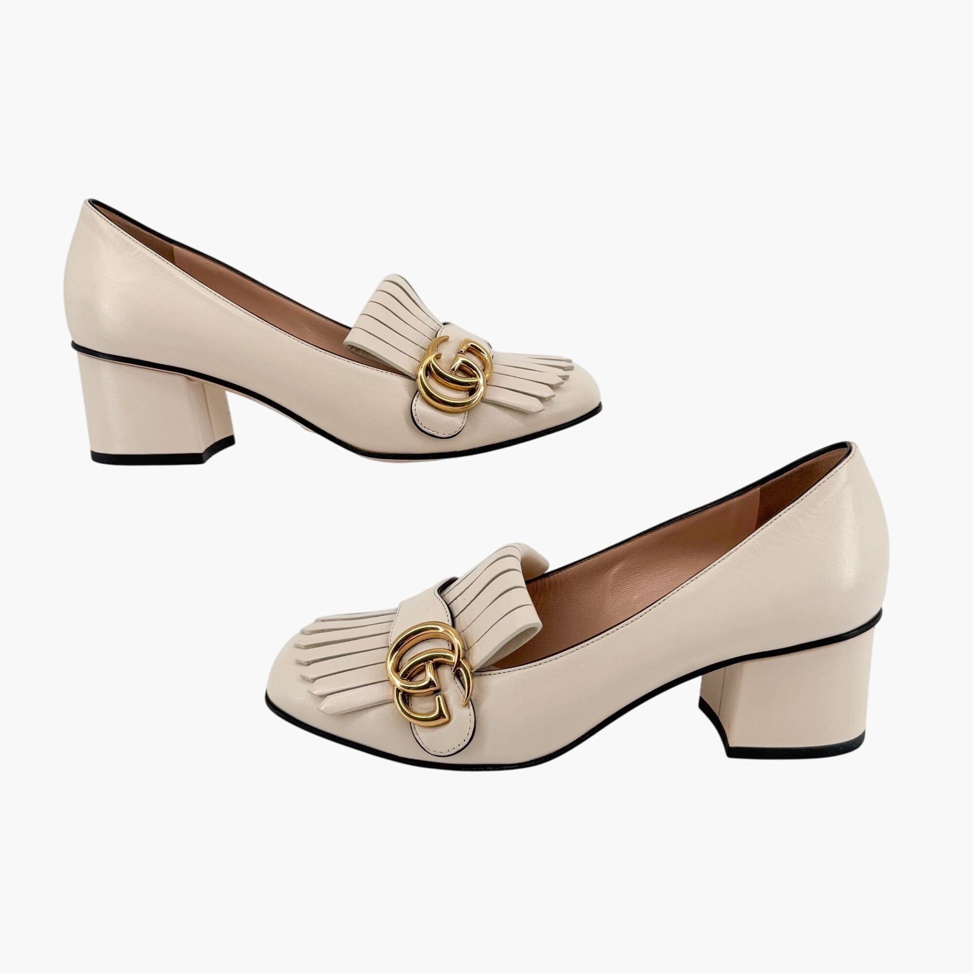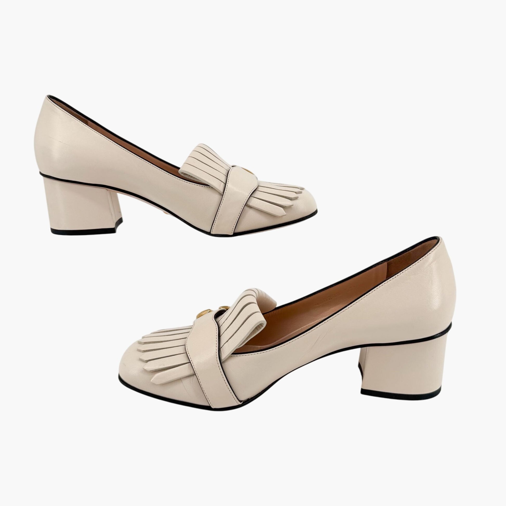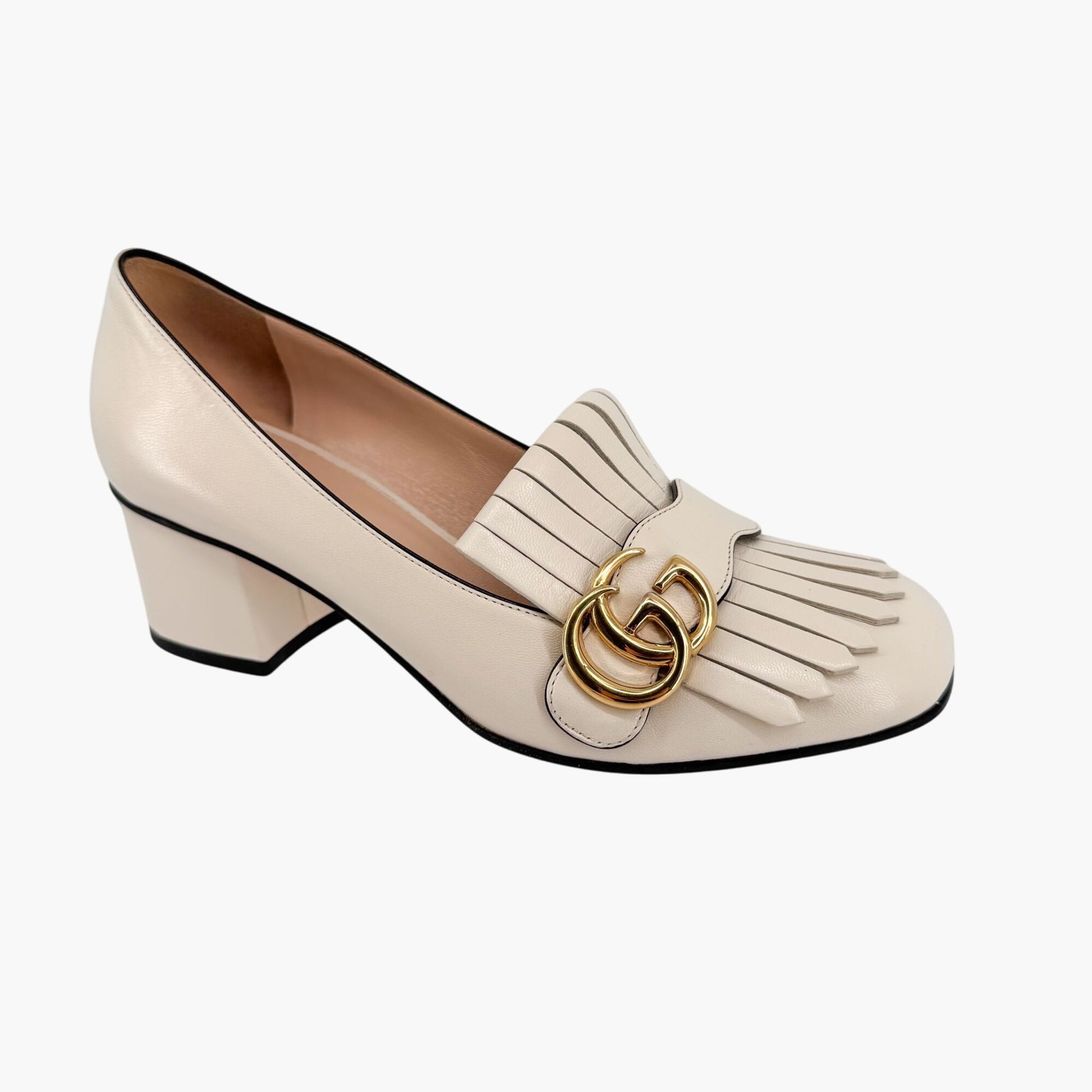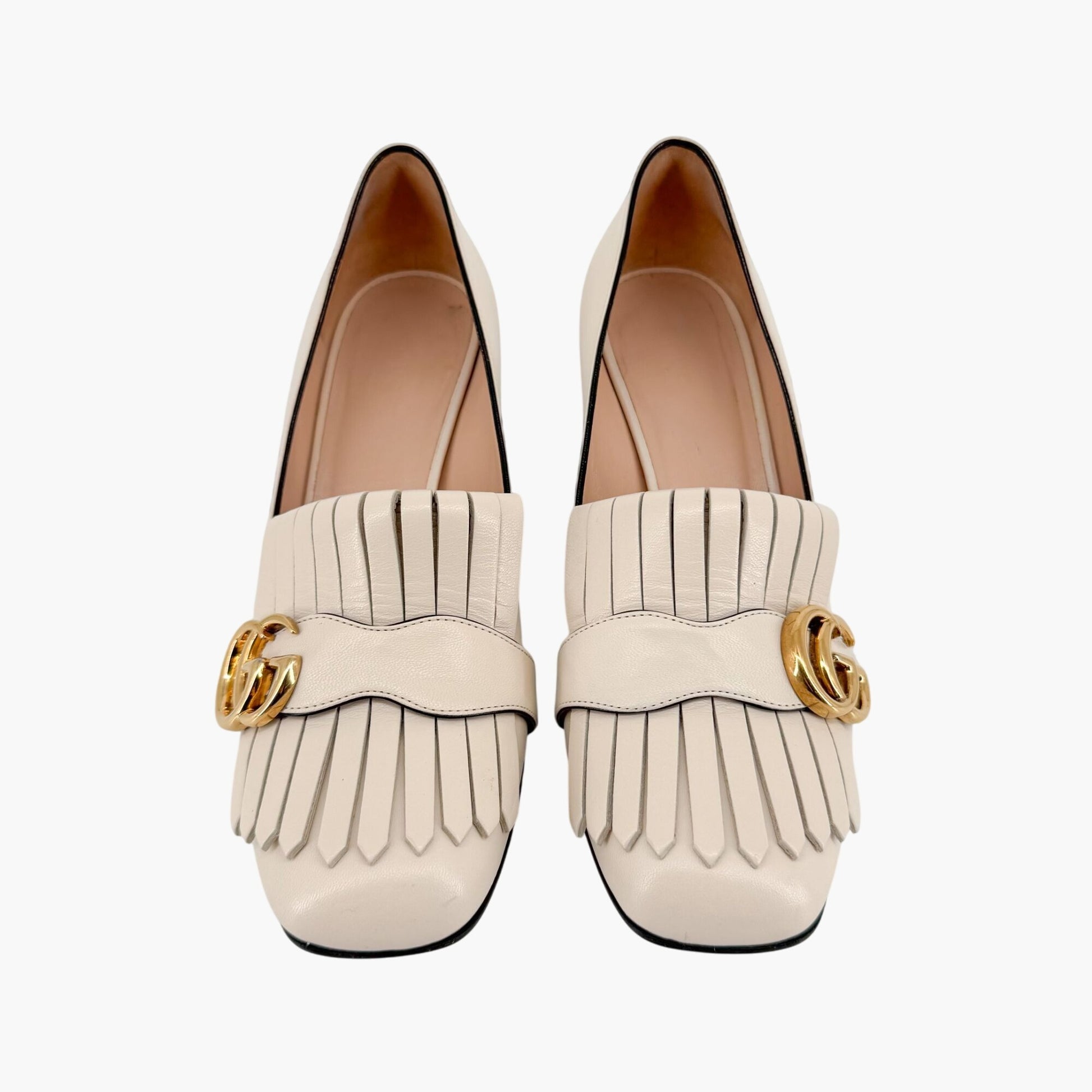 Gucci Marmont GG Fringe Loafer Pumps in White Leather – Size 37.5