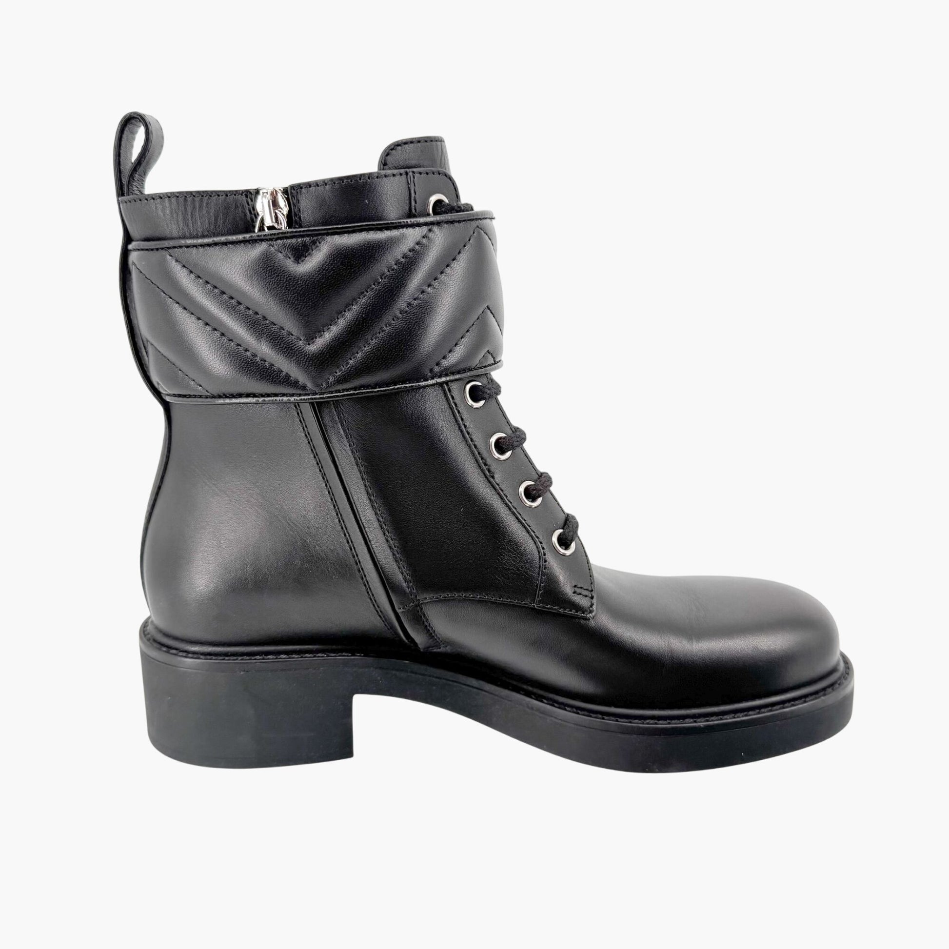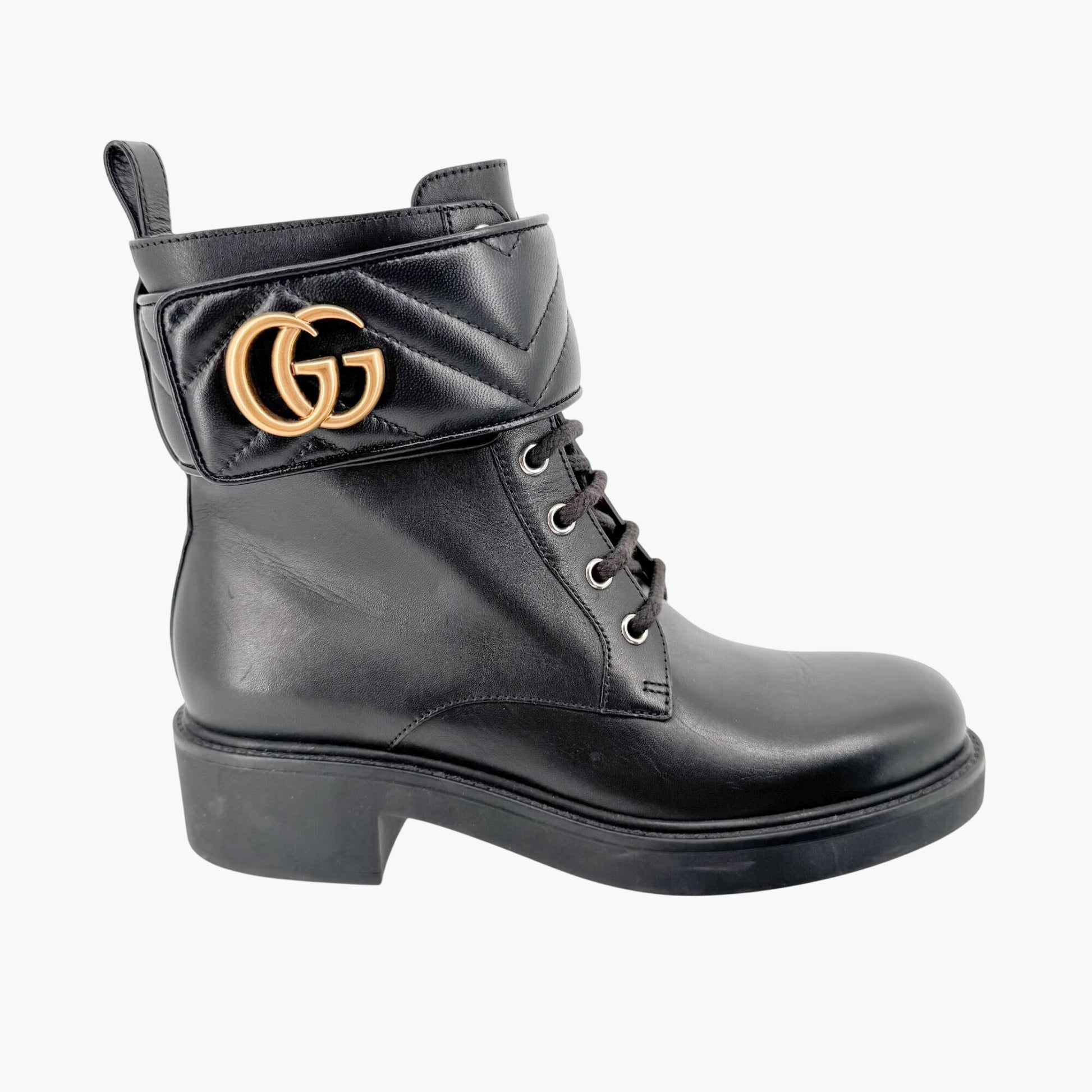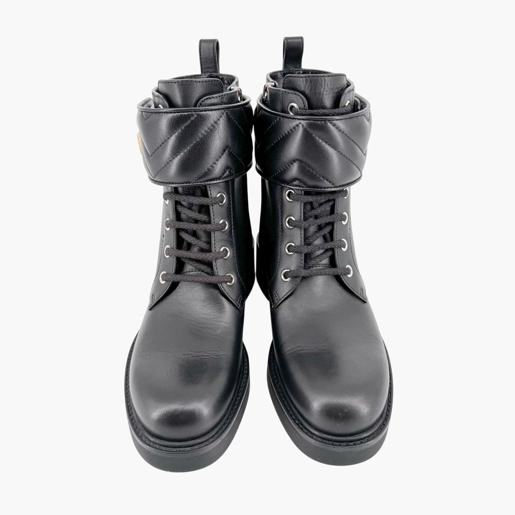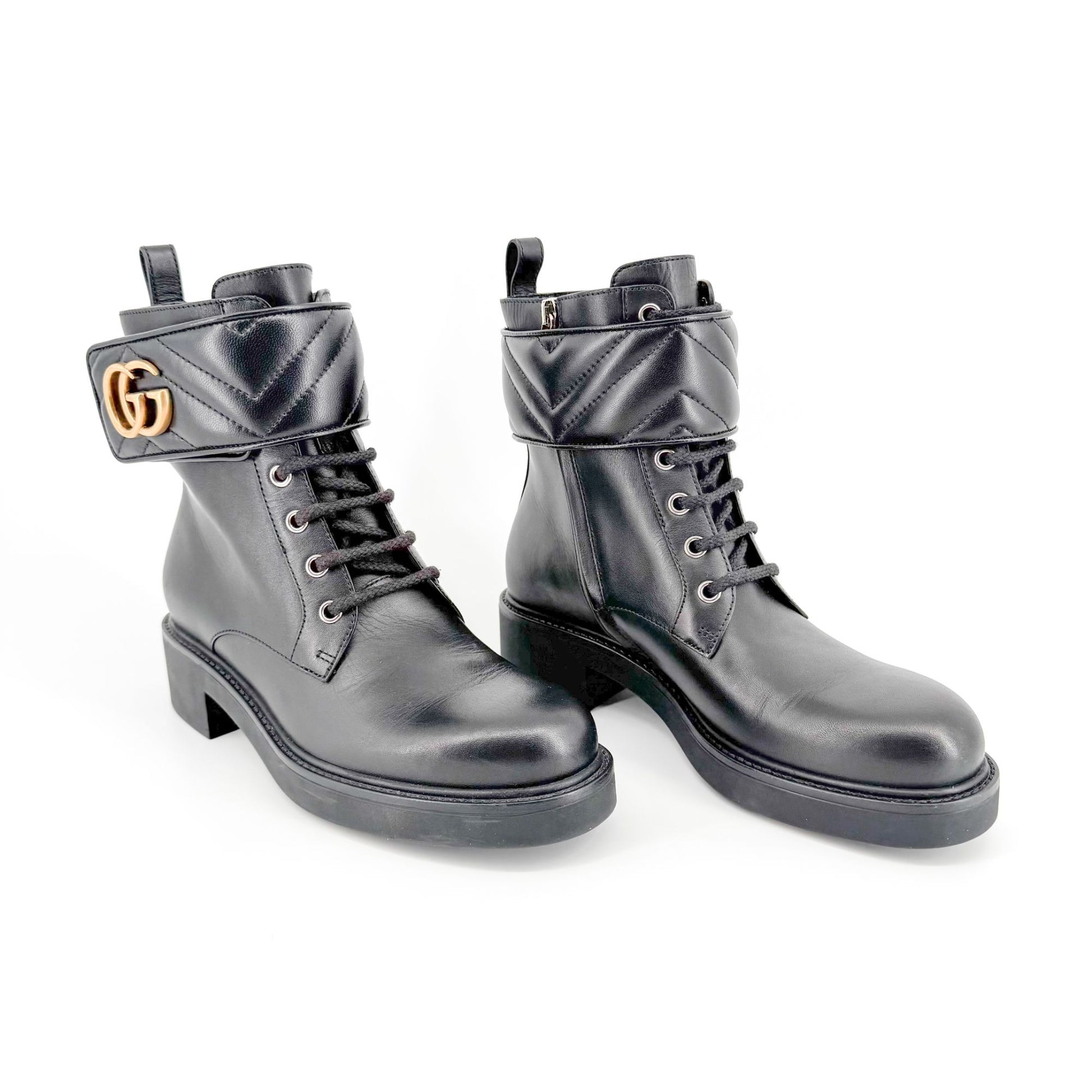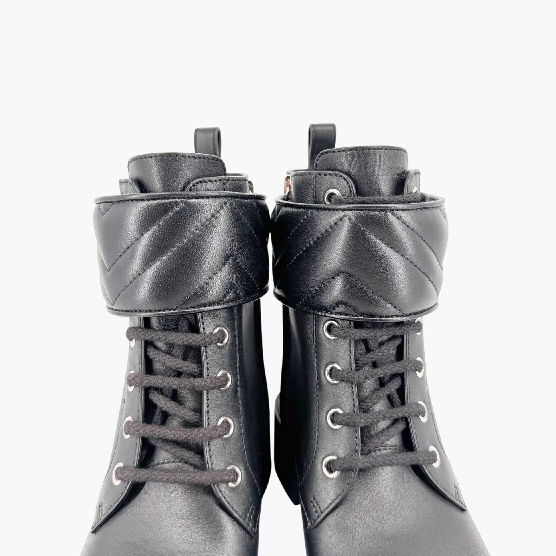 Gucci Marmont GG Lace Up Combat Boots in Black Leather Size 37