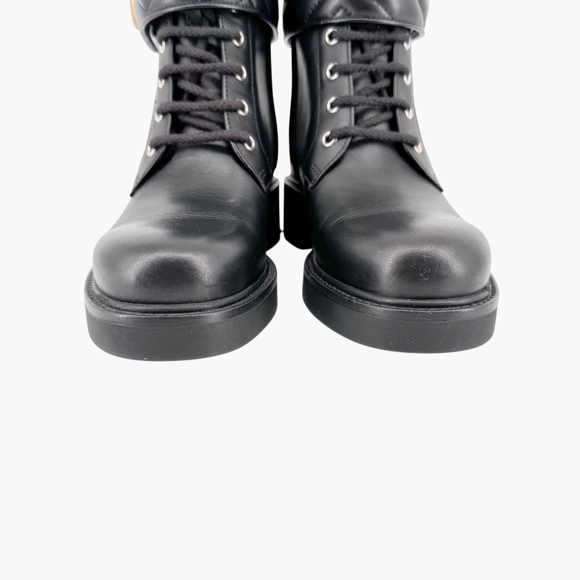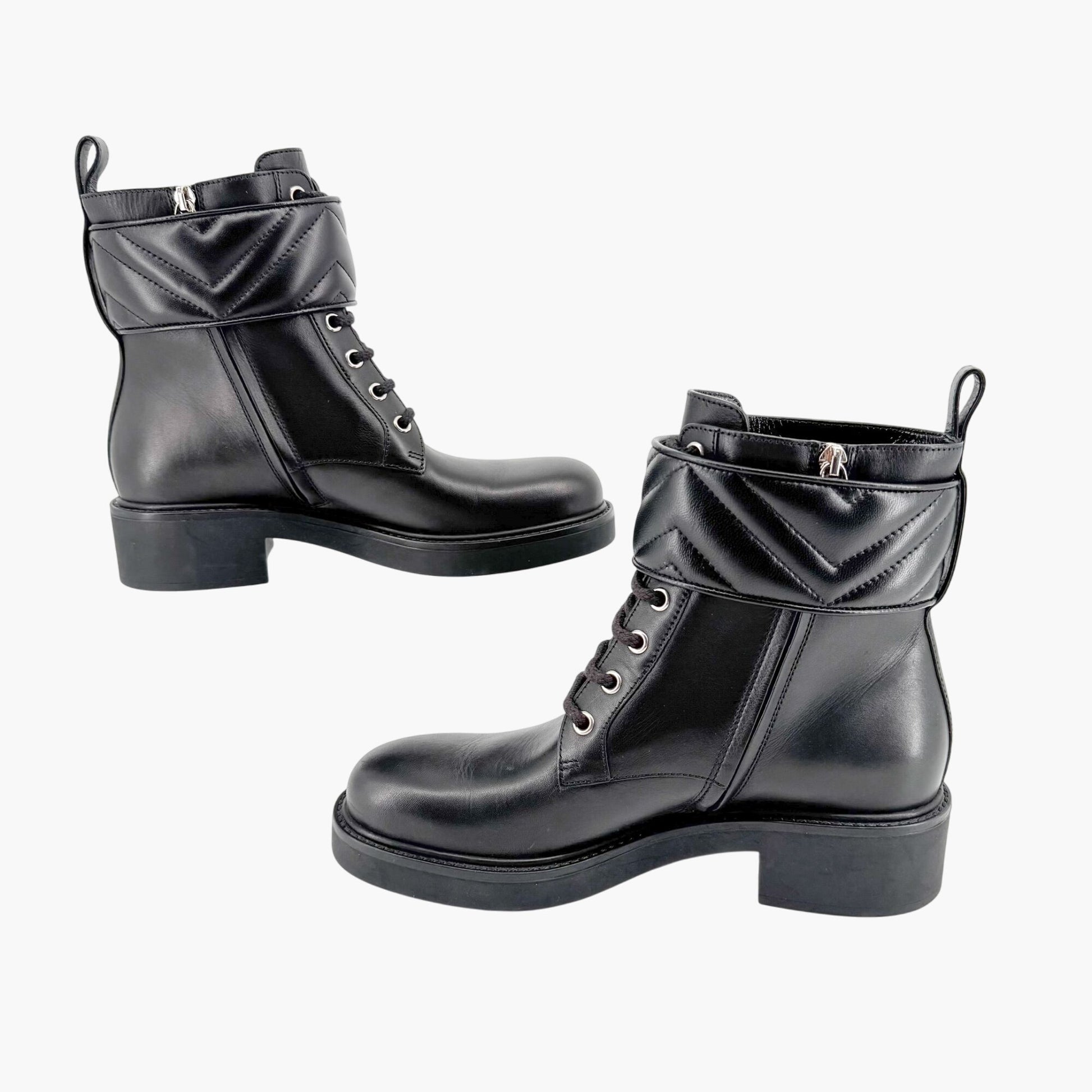 Gucci Marmont GG Combat Boot Size 37 US 7 Black Lace Up Quilted Ankle Biker Logo