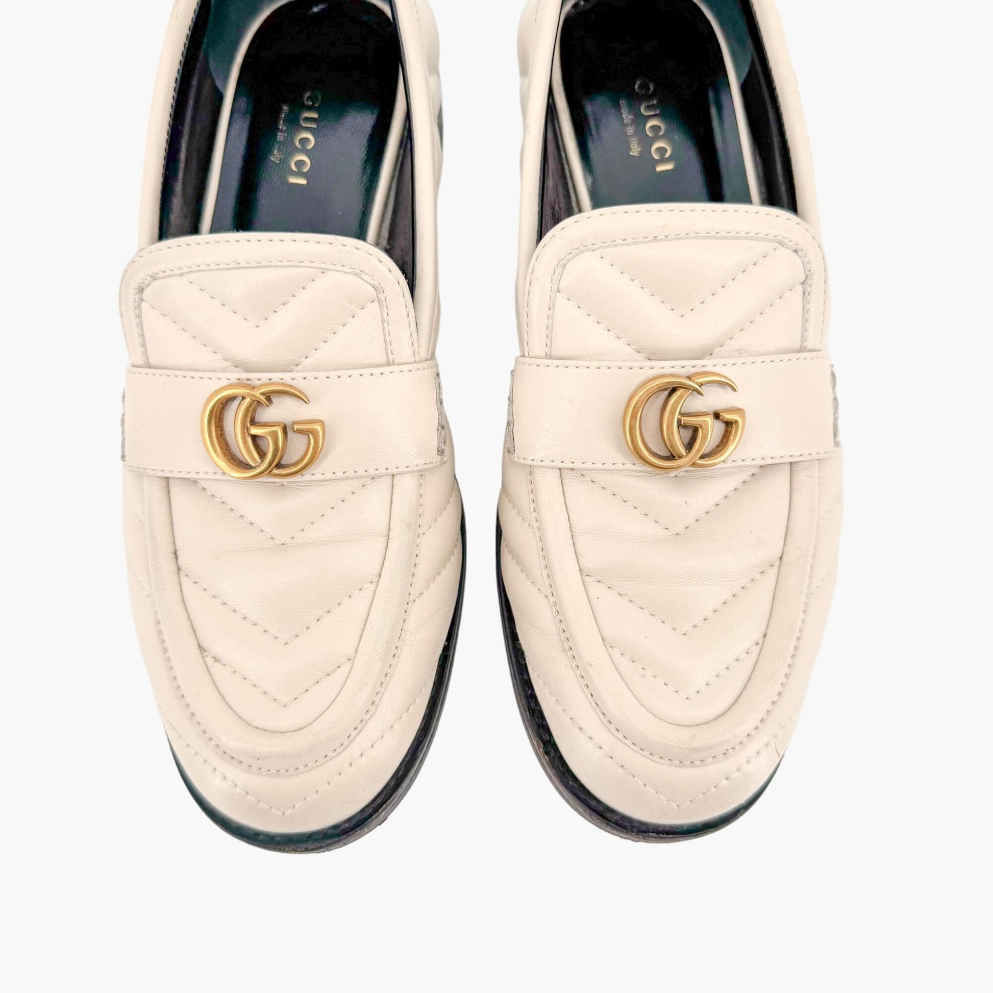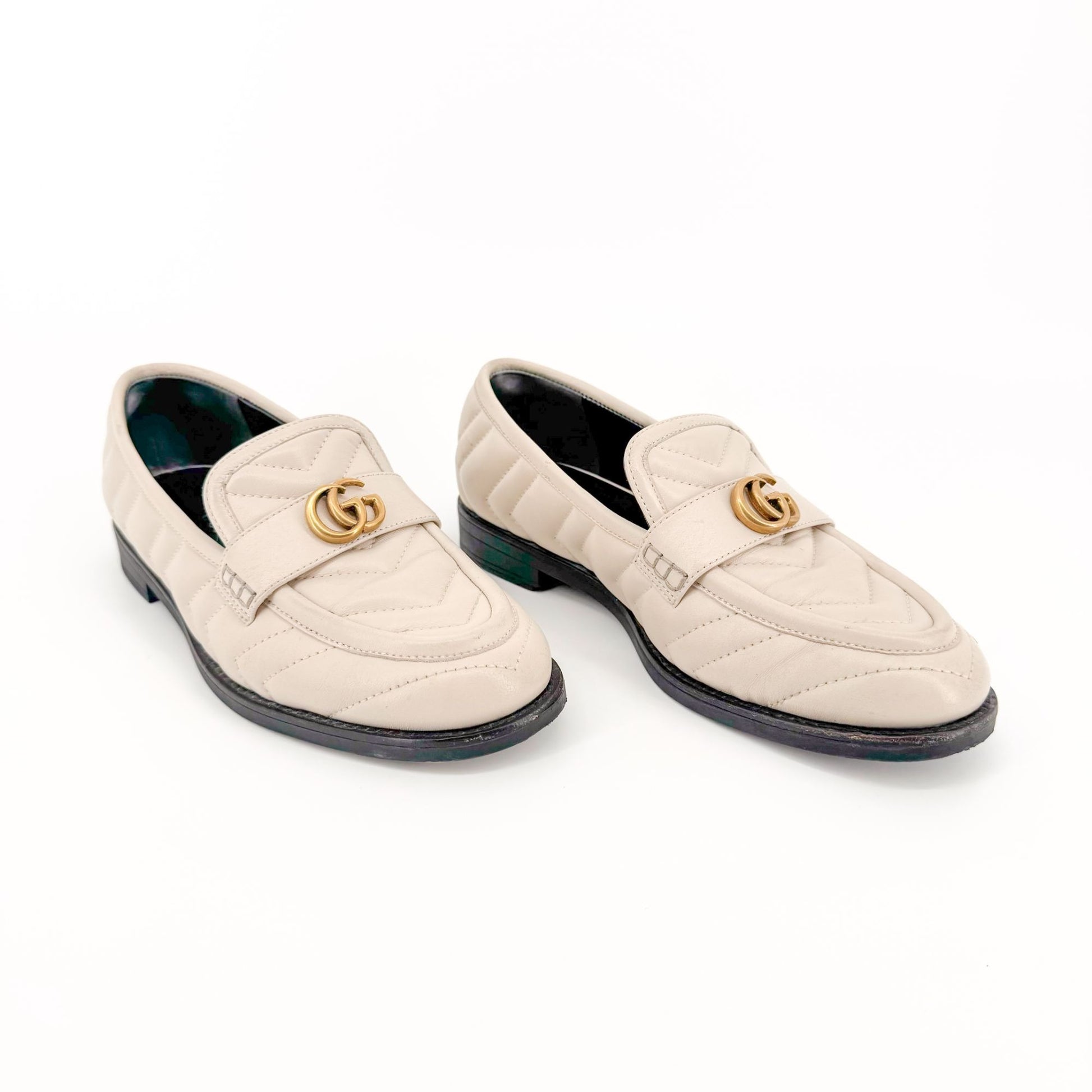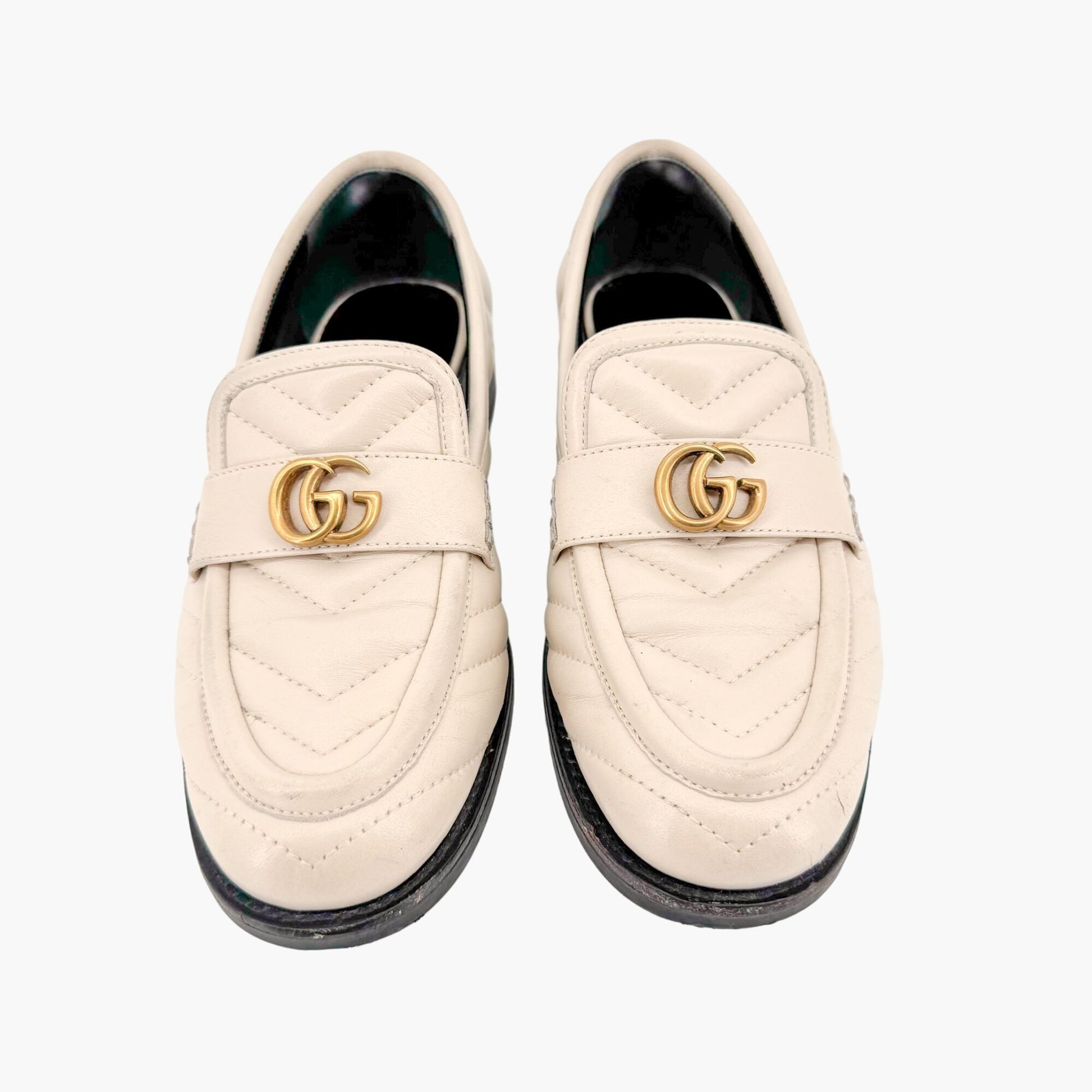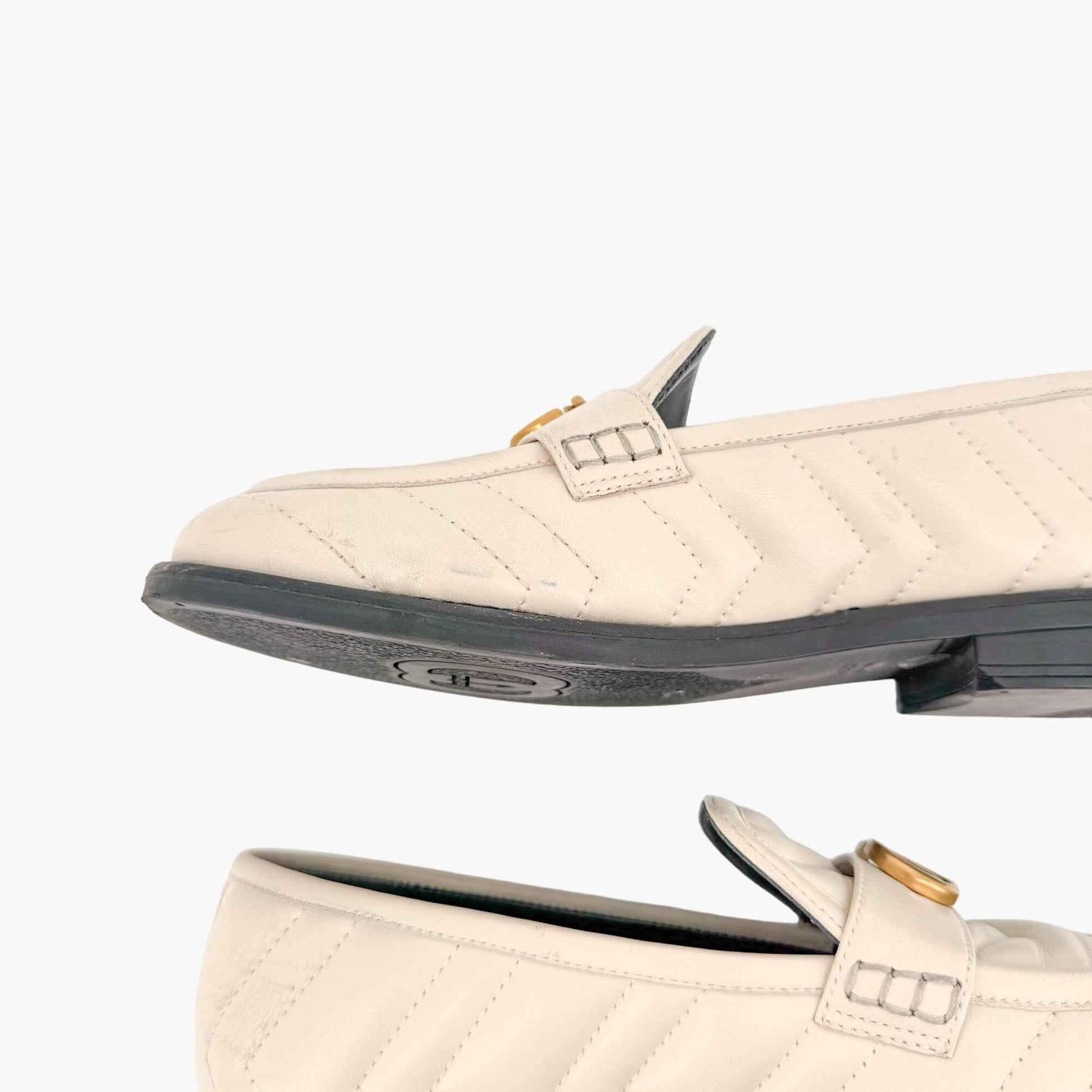Gucci Marmont GG Matelasse Loafer EU 36.5 US 6.5 White Quilted Chevron Leather