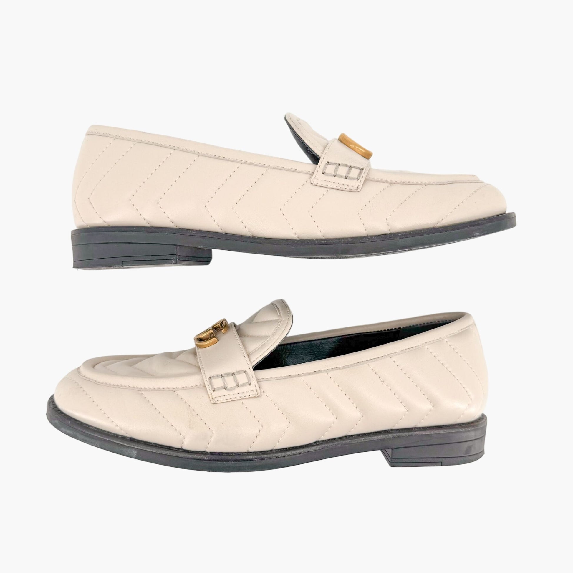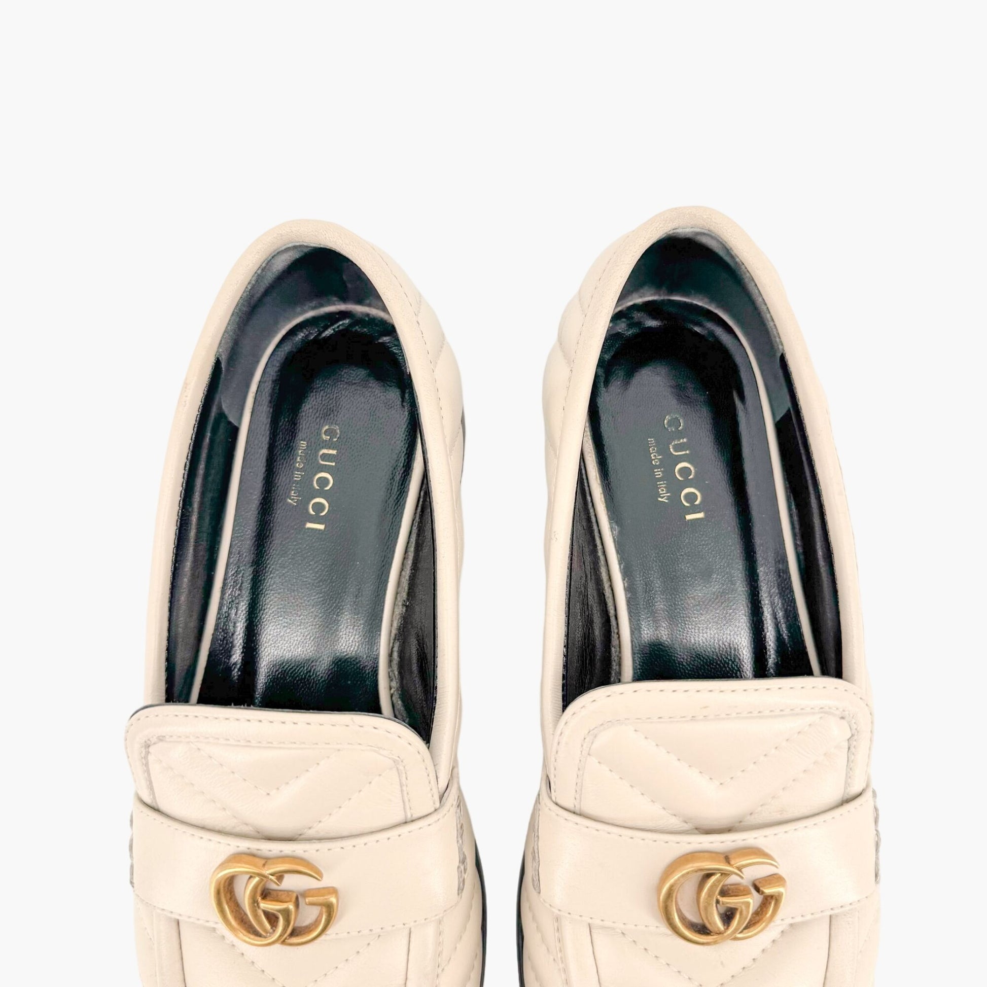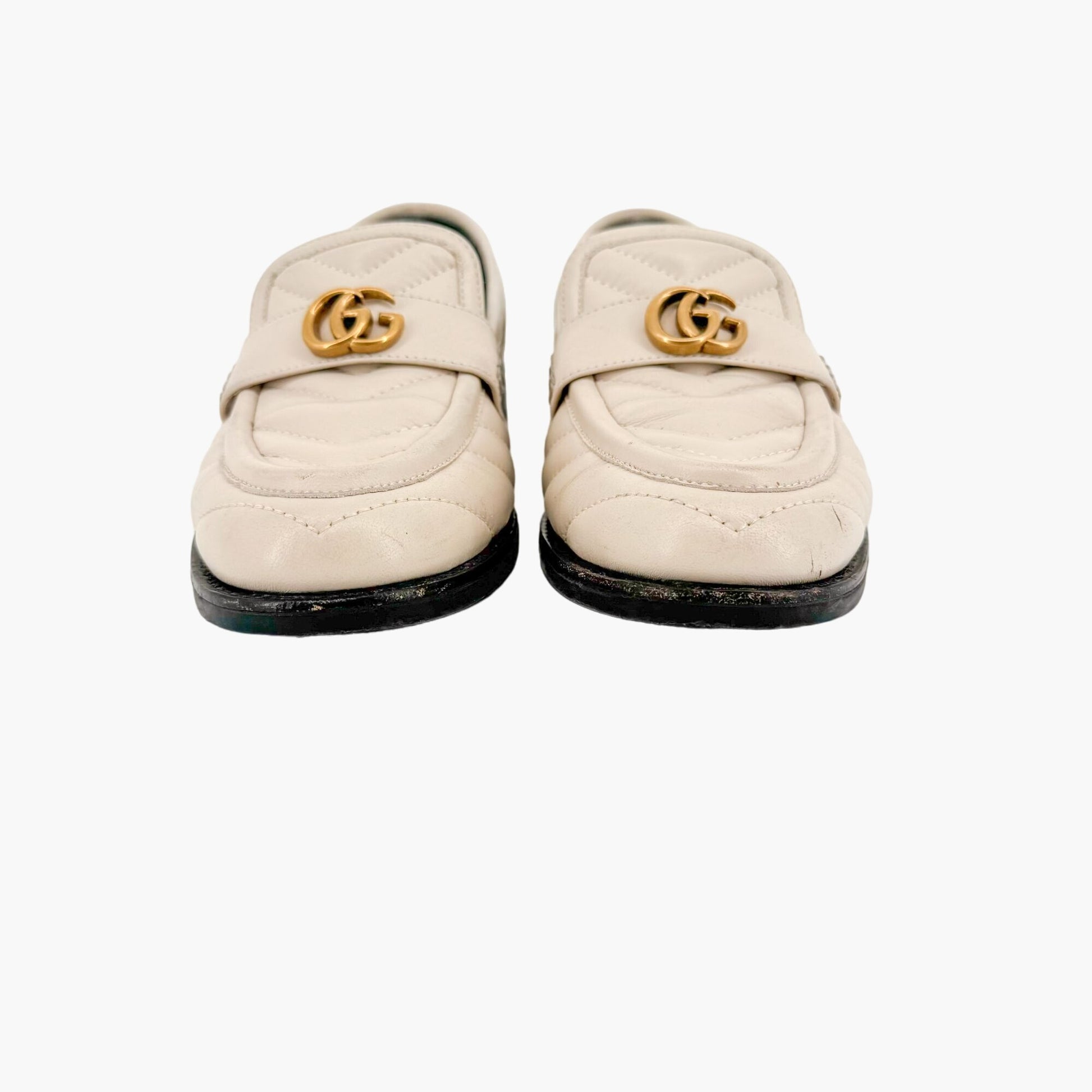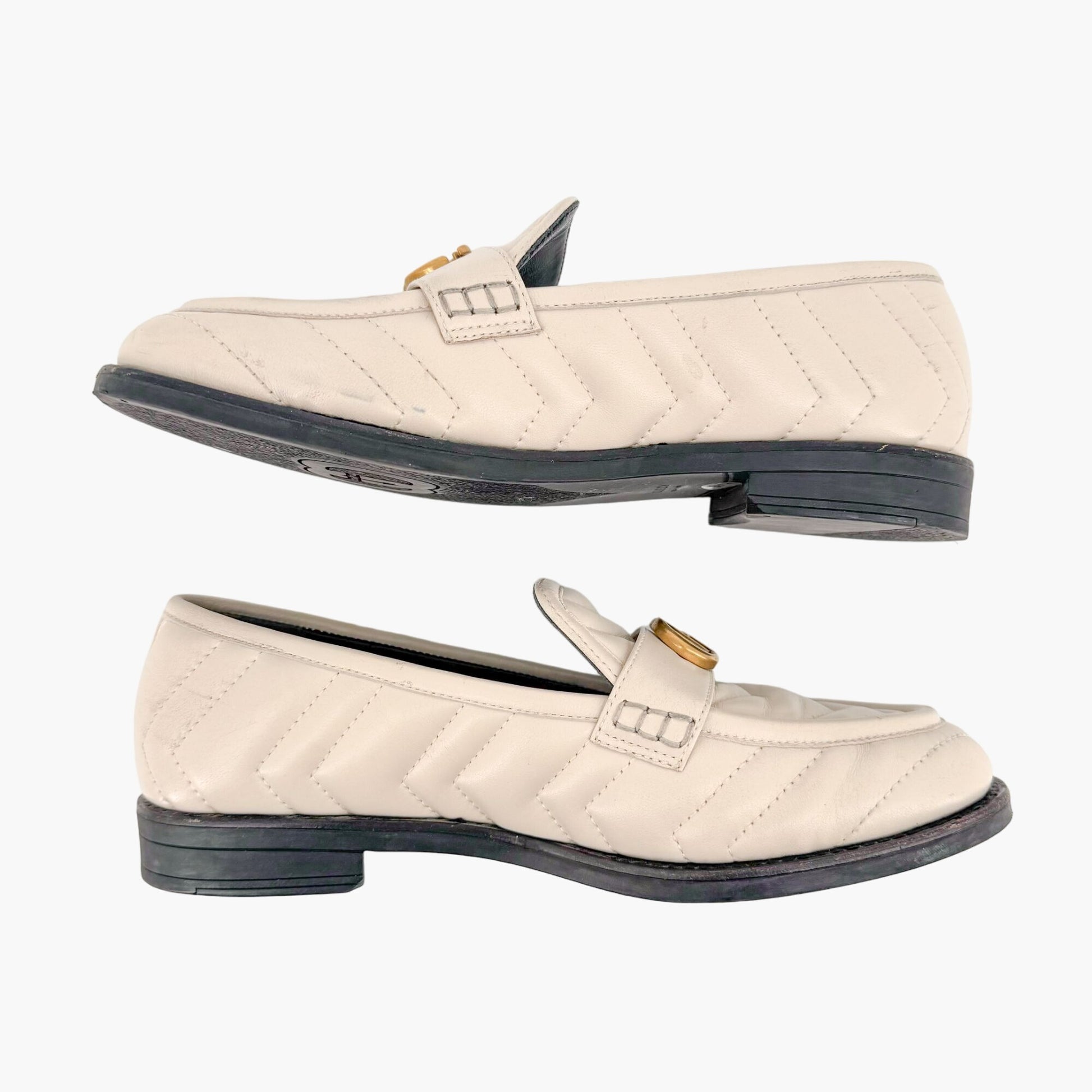 Gucci Marmont GG Matelasse Loafer EU 36.5 US 6.5 White Quilted Chevron Leather