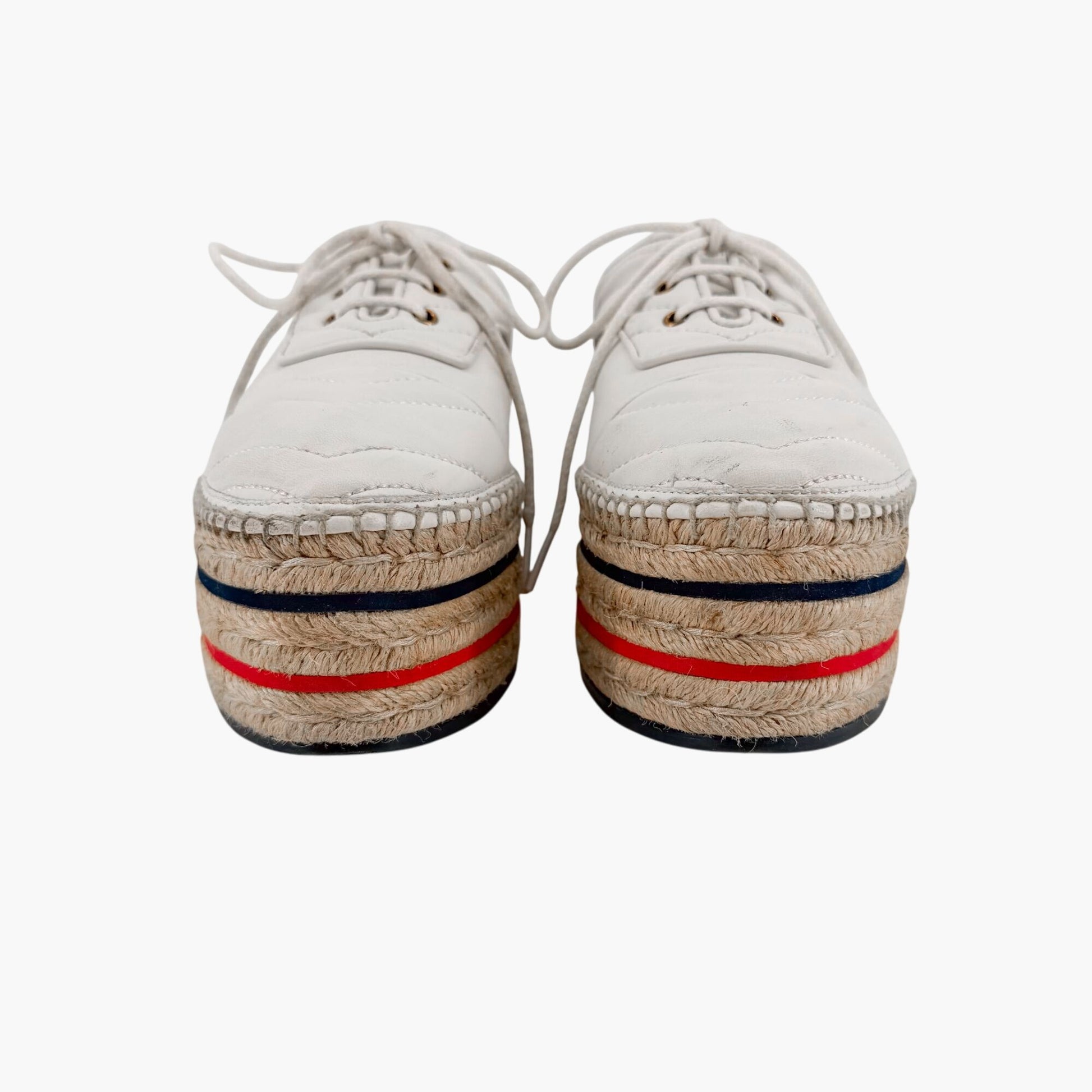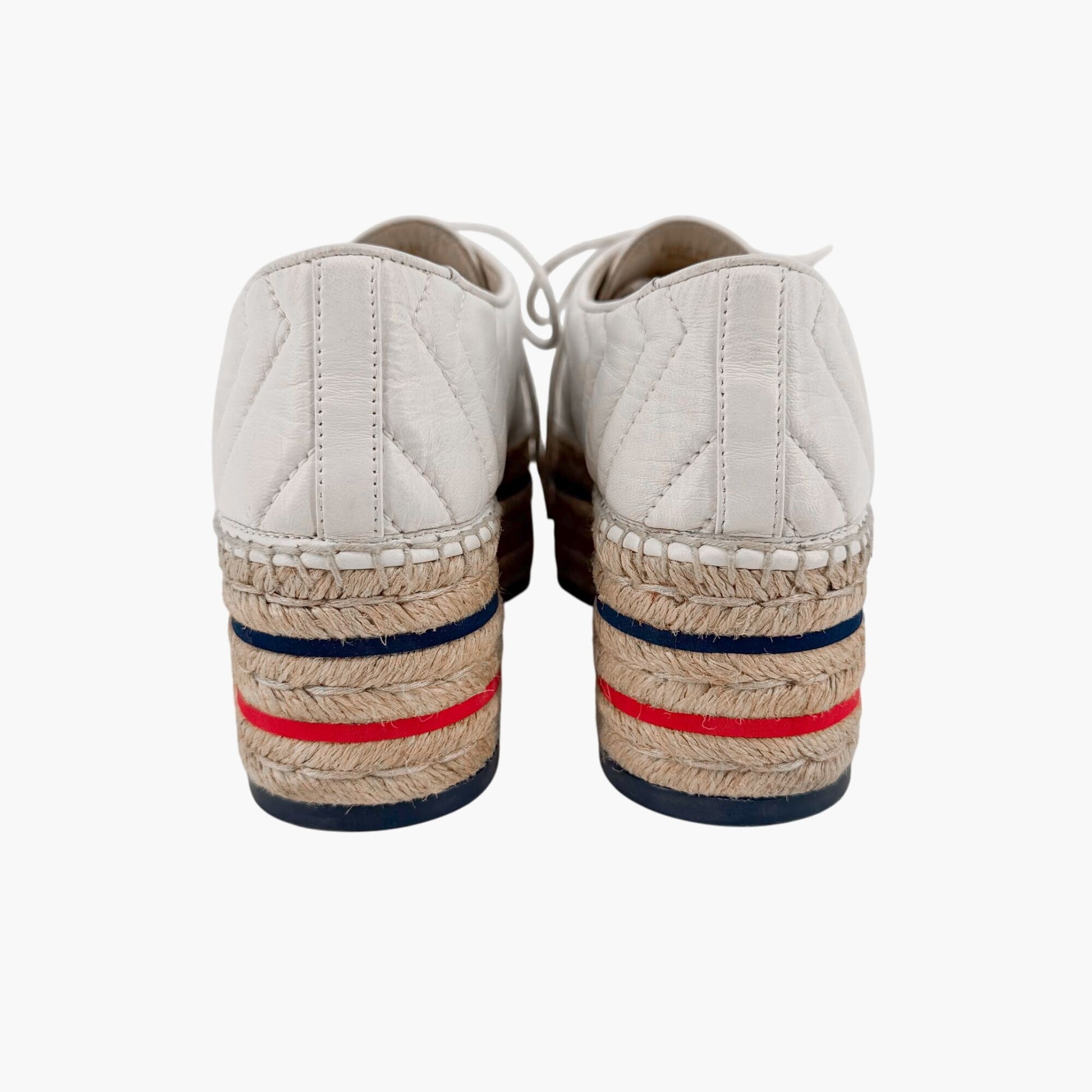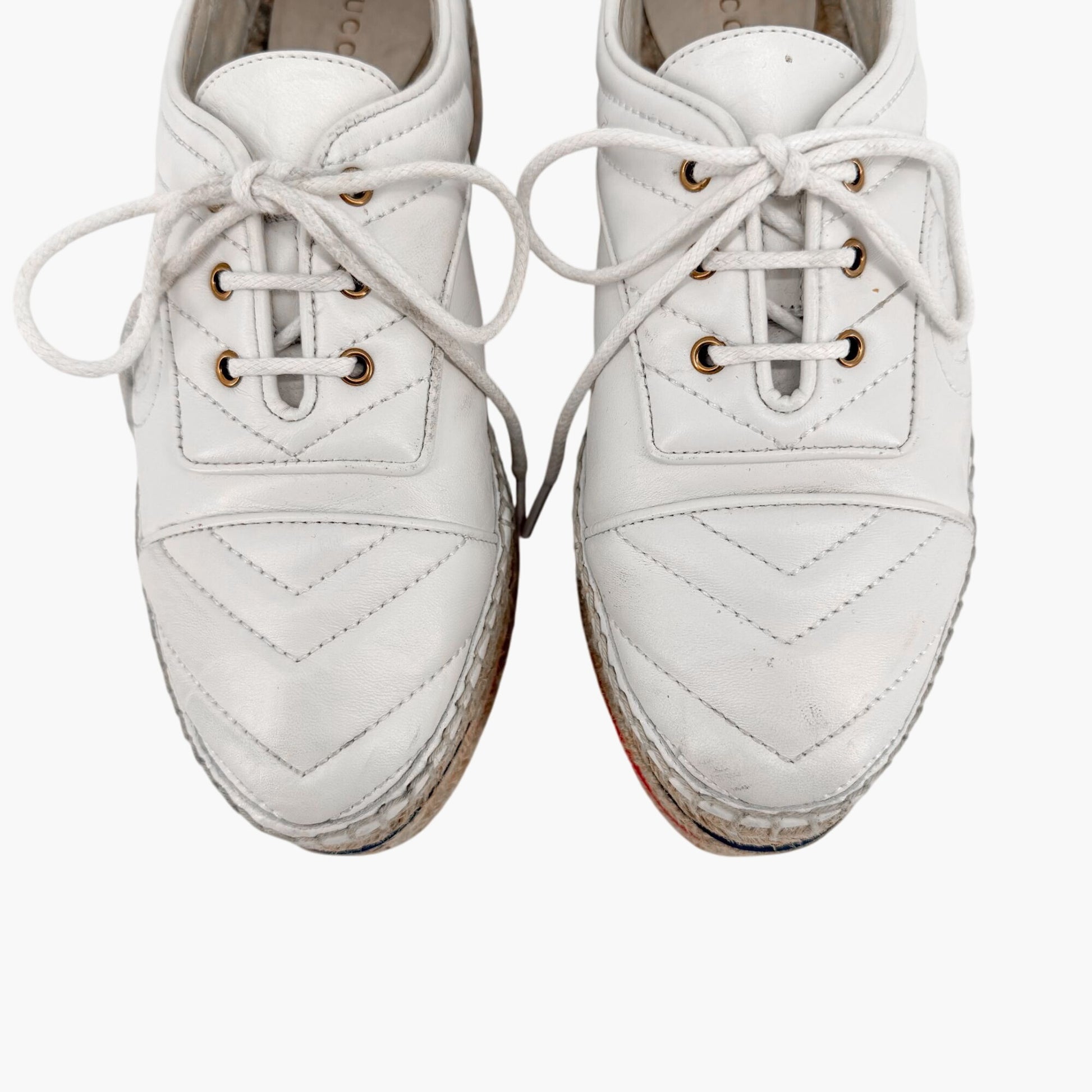 Gucci Pilar White Leather GG Platform Espadrilles Size 37