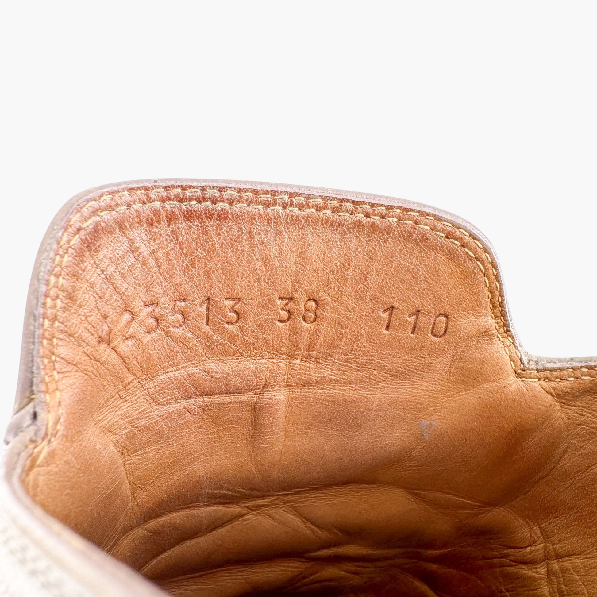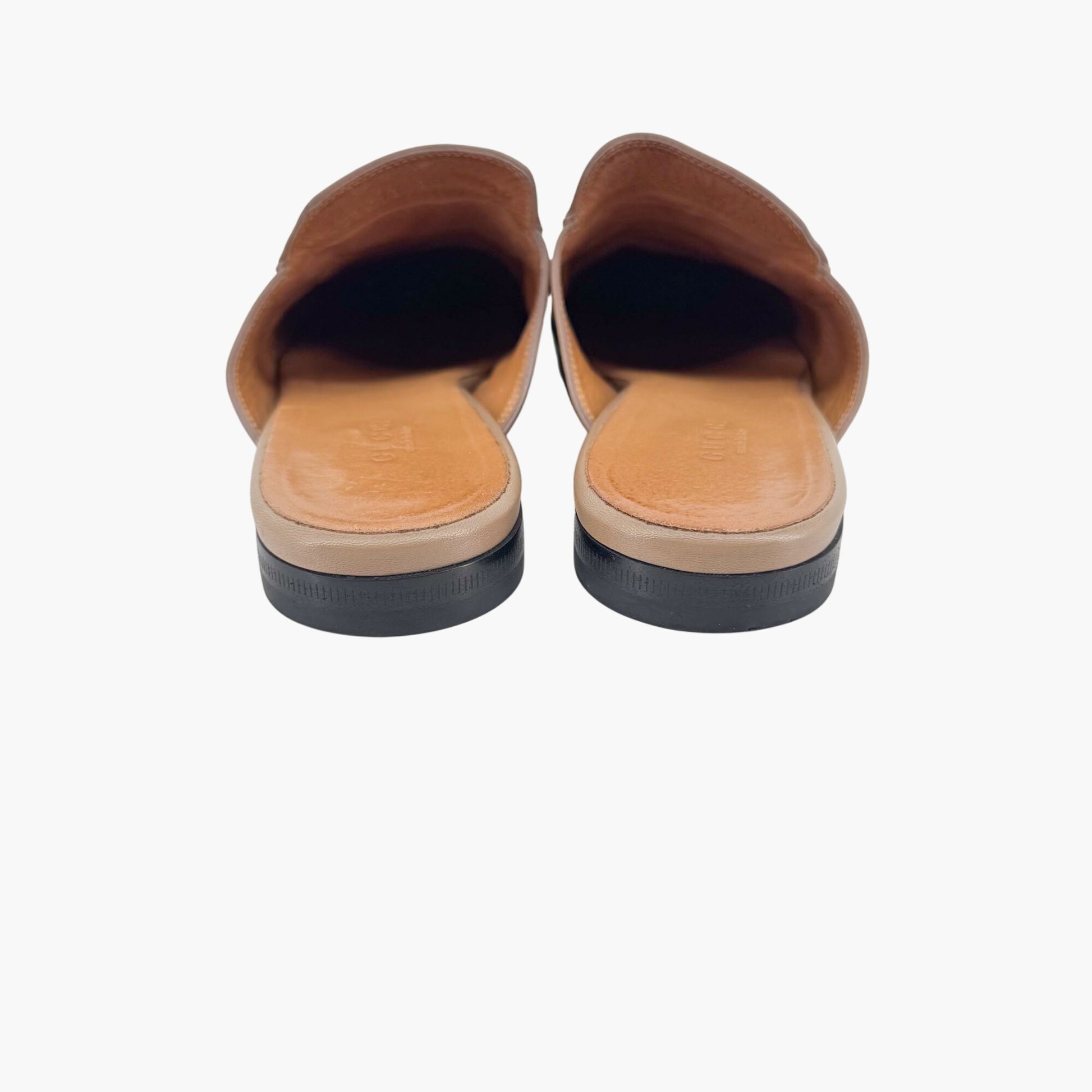 These Gucci Princetown mules feature beige leather uppers with a slip-on silhouette, rounded toe, and the brand’s iconic gold-tone Horsebit hardware. The loafer-meets-slipper design combines polished structure with casual ease, making them a go-to choice for transitional dressing and everyday wear.