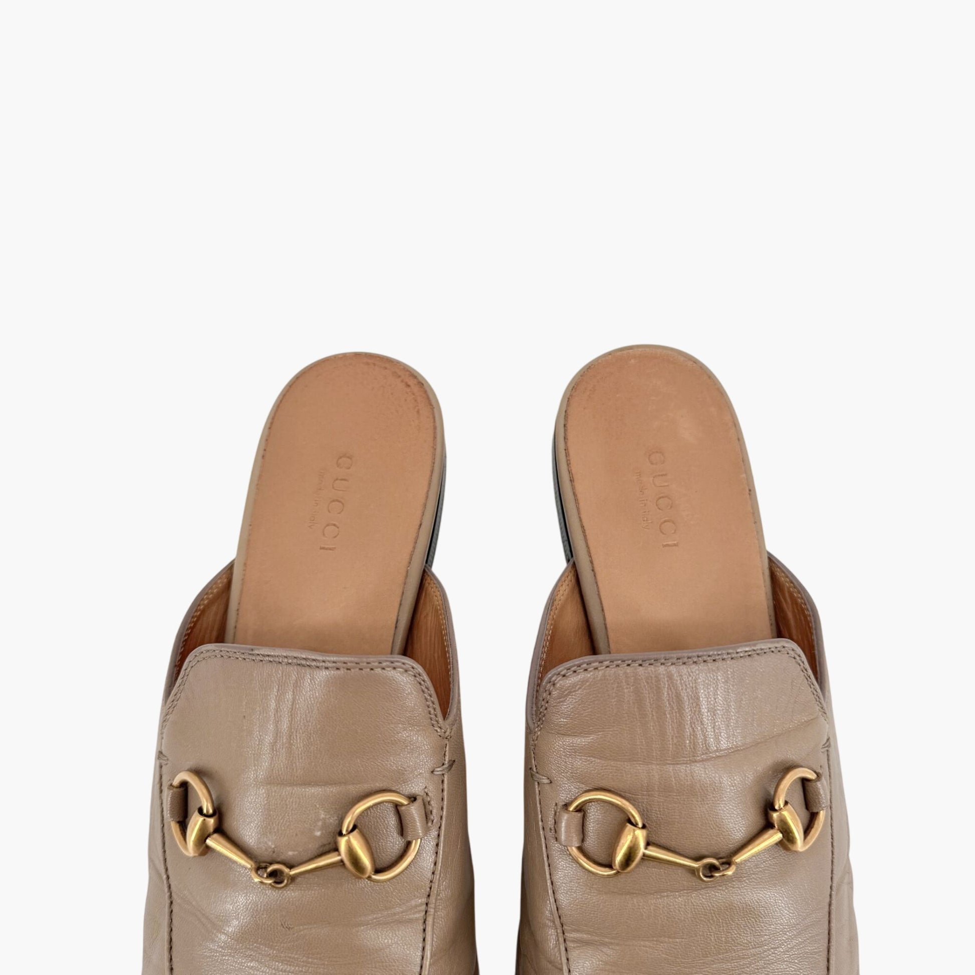 Gucci Princetown Horsebit Mules in Beige Leather – Size 38