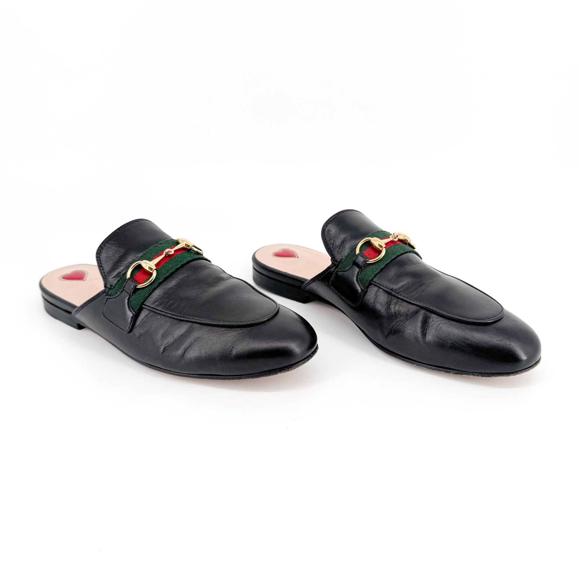 Gucci Princetown Web Stripe Horsebit Loafer Mule Size 36 US 6 Black Leather Flat Jordaan Brixton