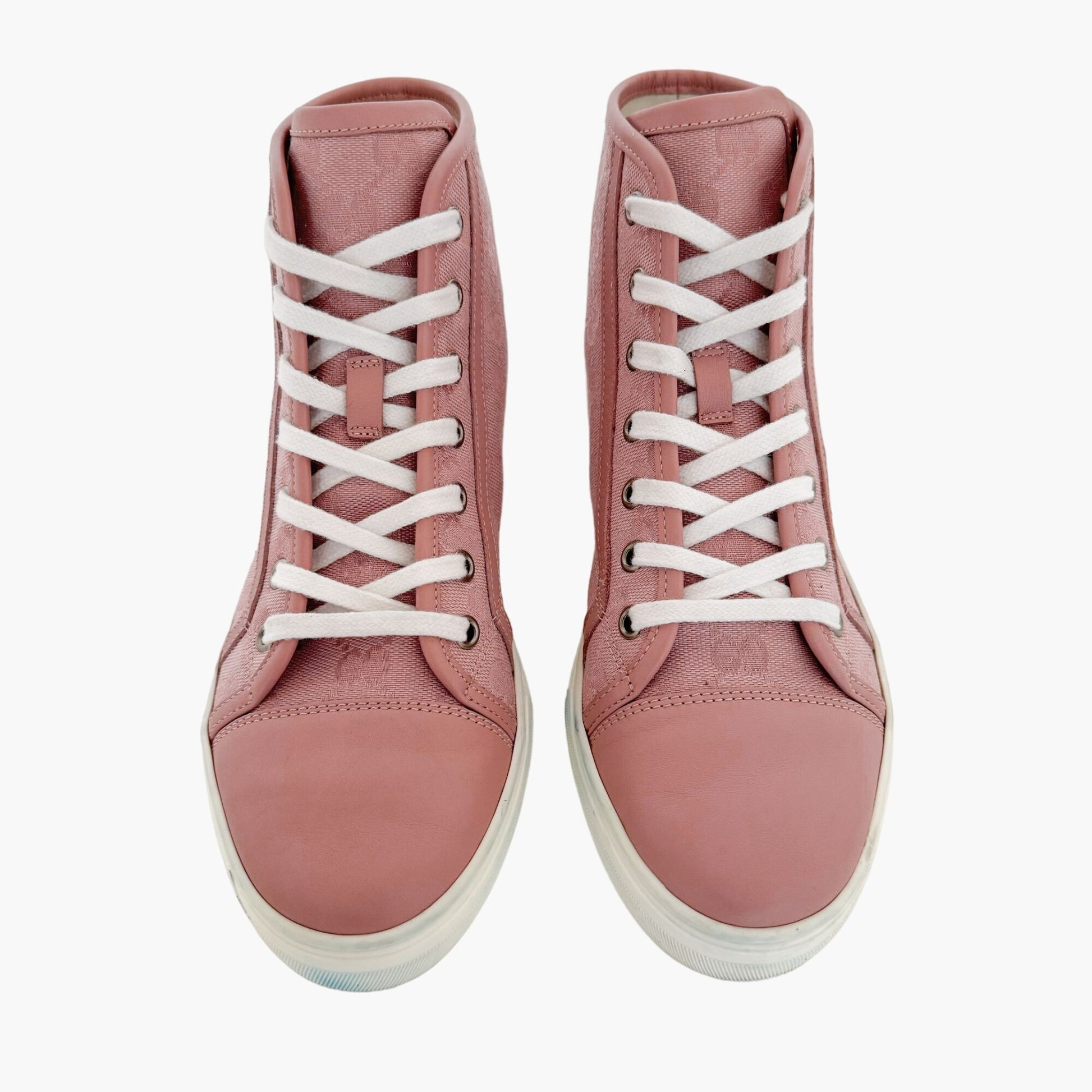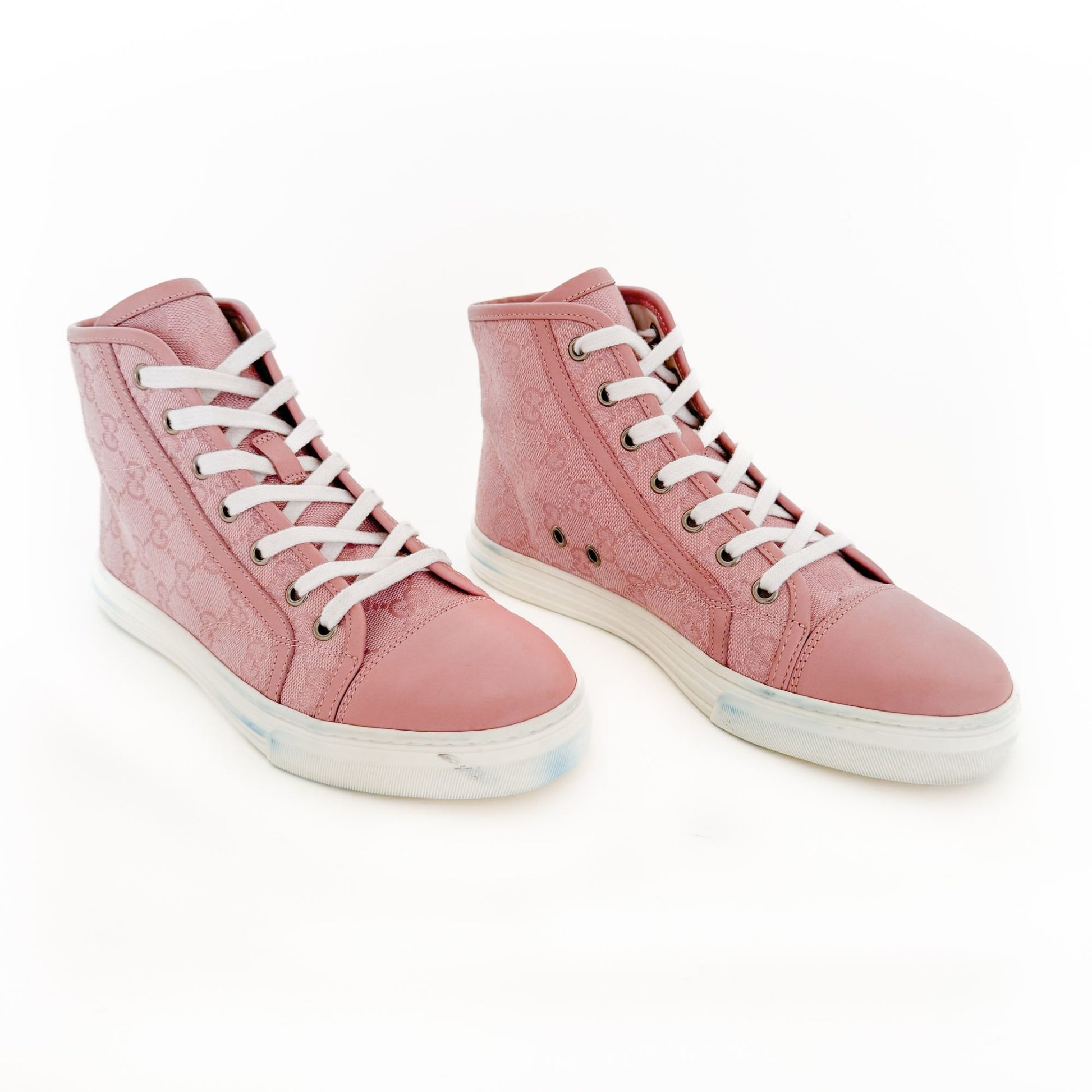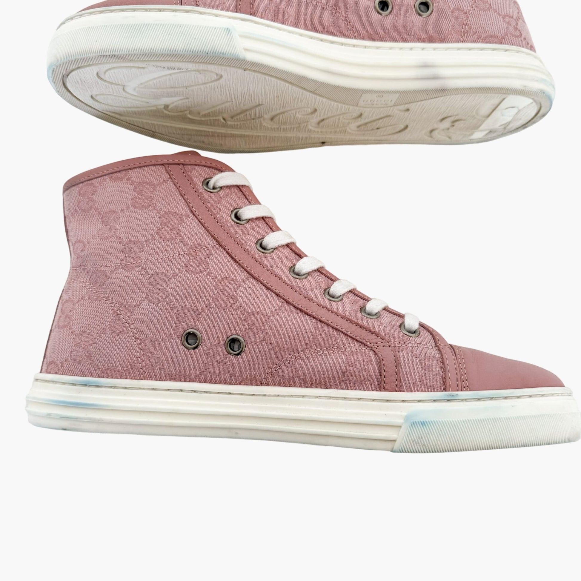 Gucci Rebel High Top GG Sneakers EU 37 US 7 Pink Monogram Canvas Lace Up Cap Toe