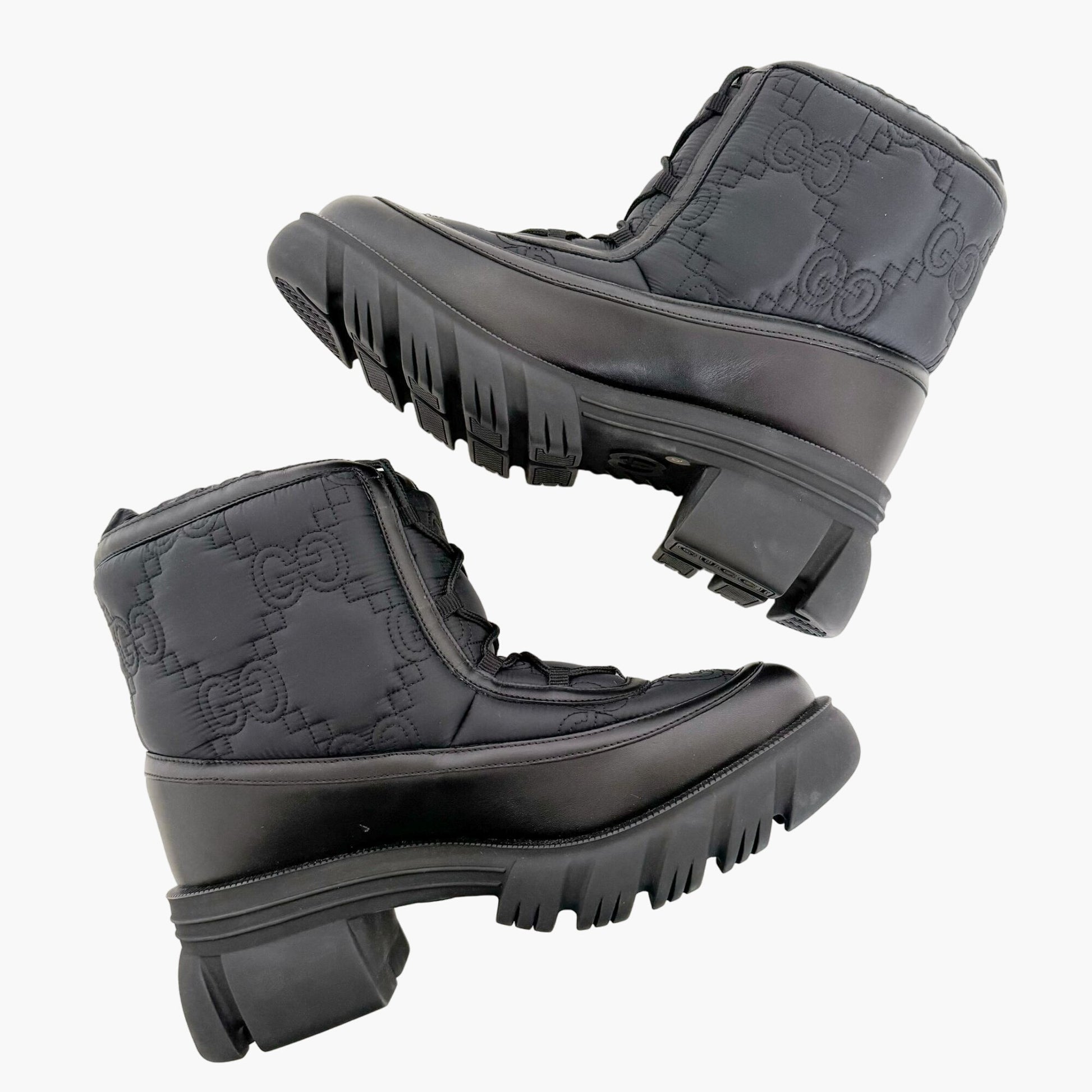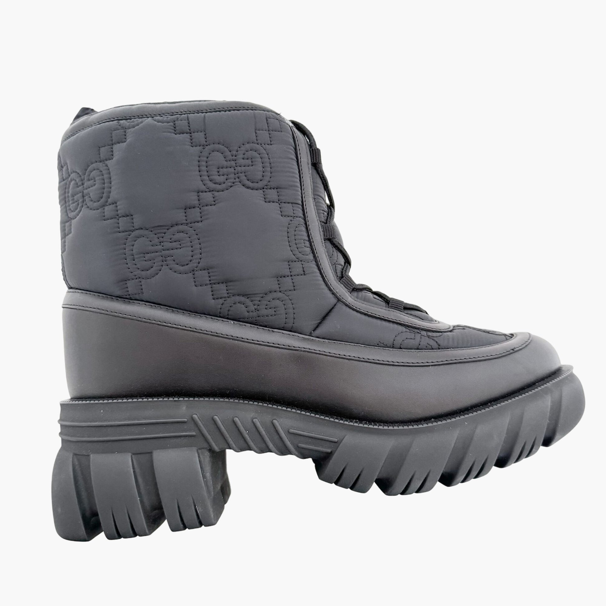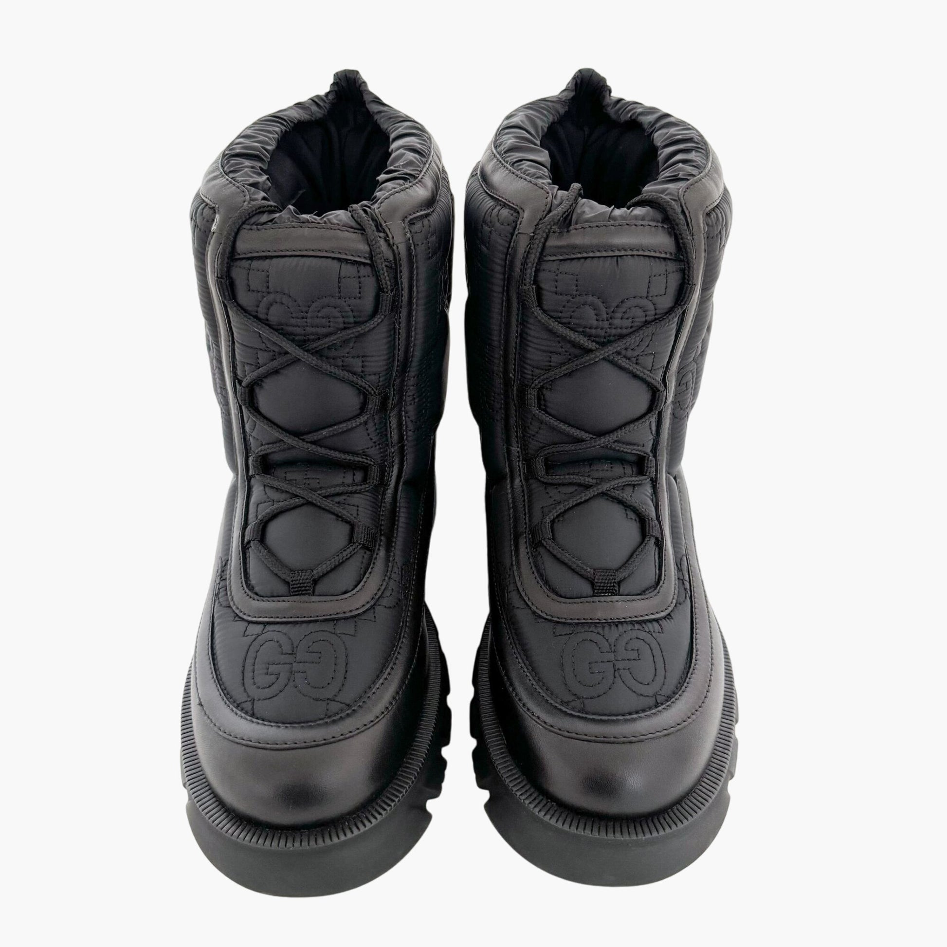 Gucci Romance GG Quilted Snow Boot EU 42 US 12 Black Nylon Leather Puffer Combat
