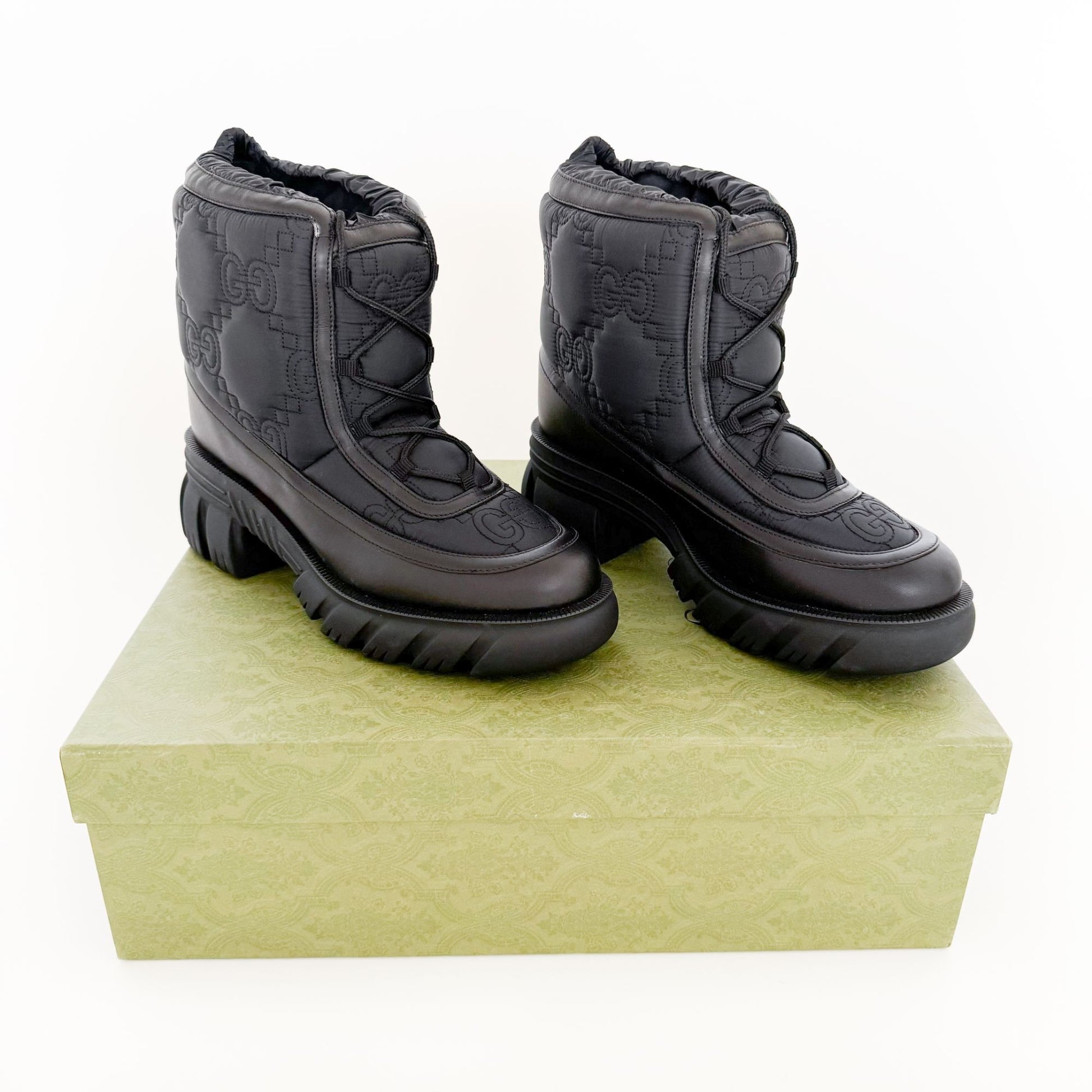 Gucci Romance GG Quilted Snow Boots in Black Nylon & Leather Size 42
