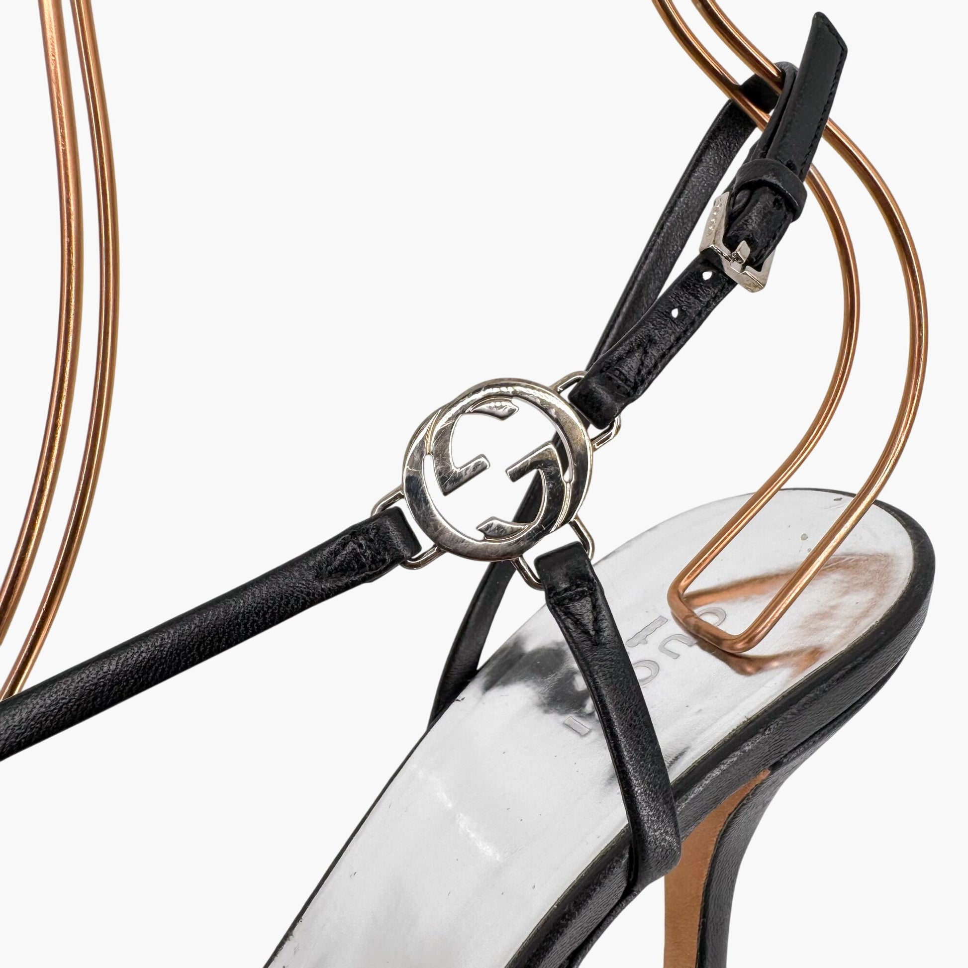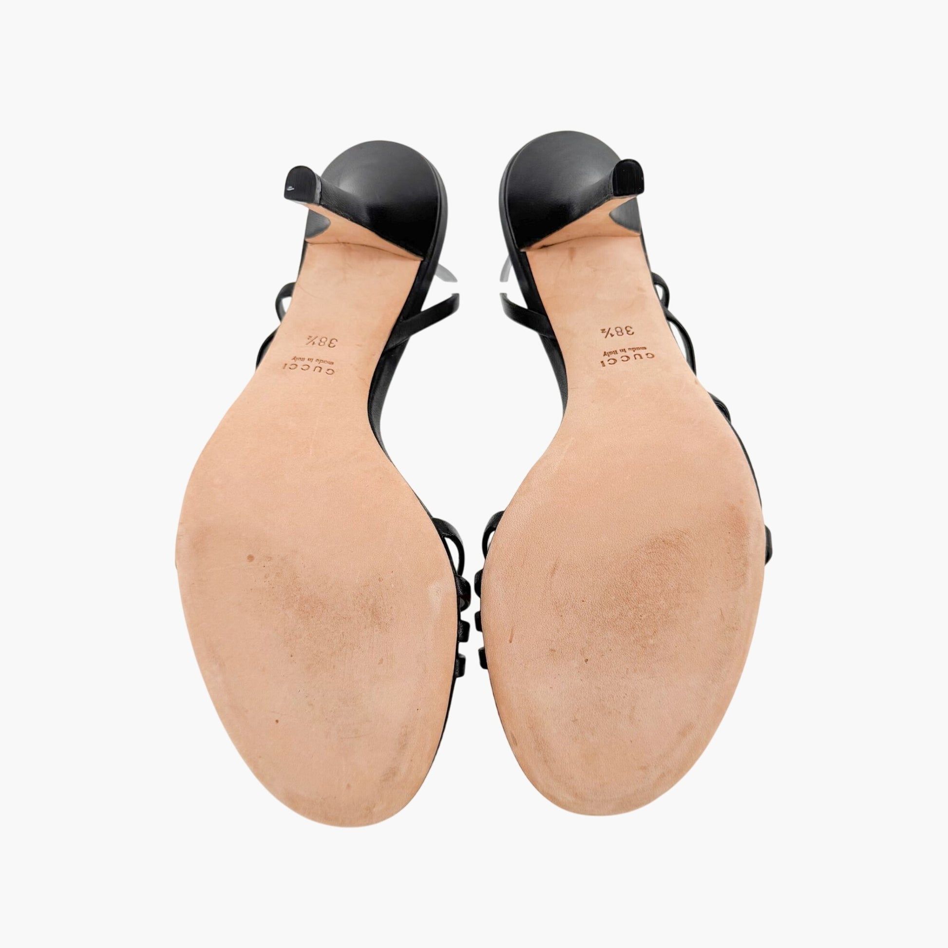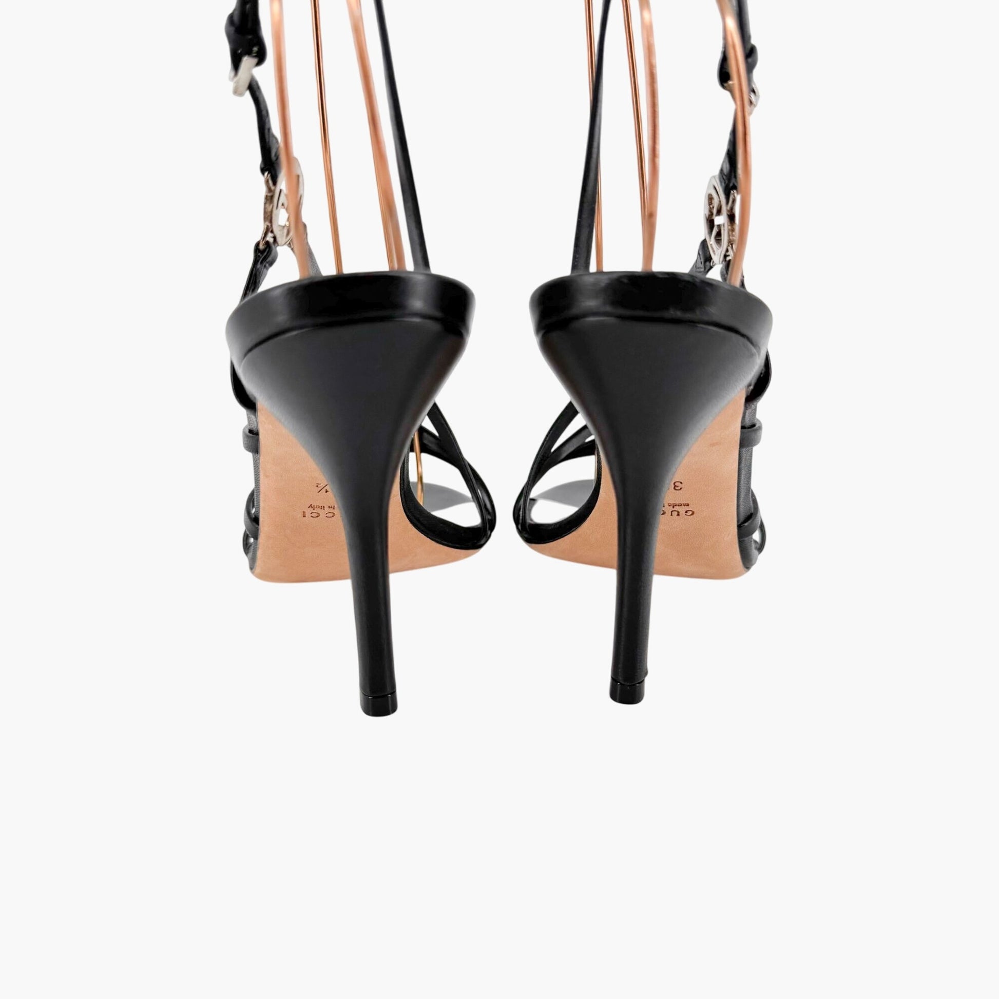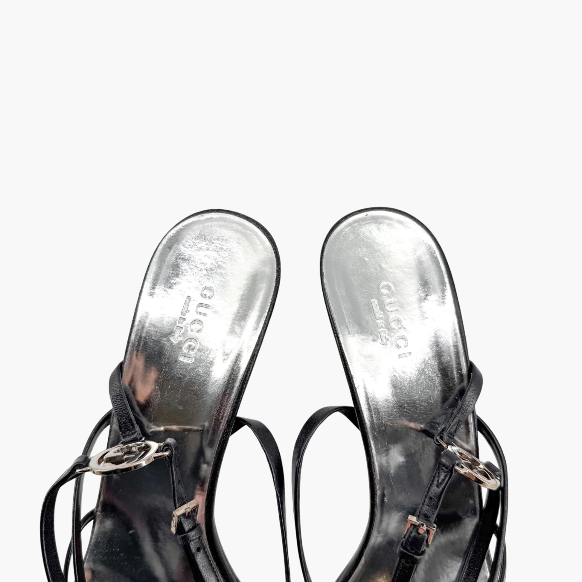 Gucci Strappy Interlocking GG Sandals Size 38.5 US 8.5 Black Leather High Heel