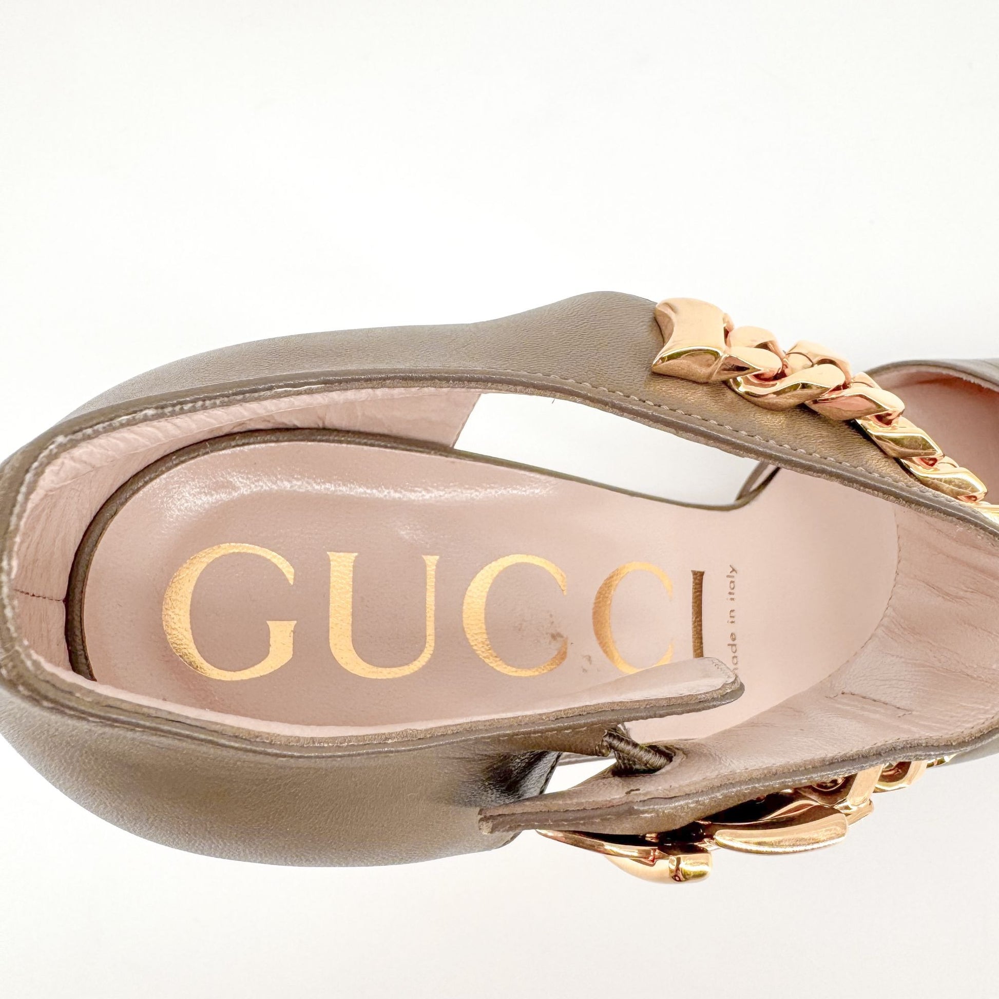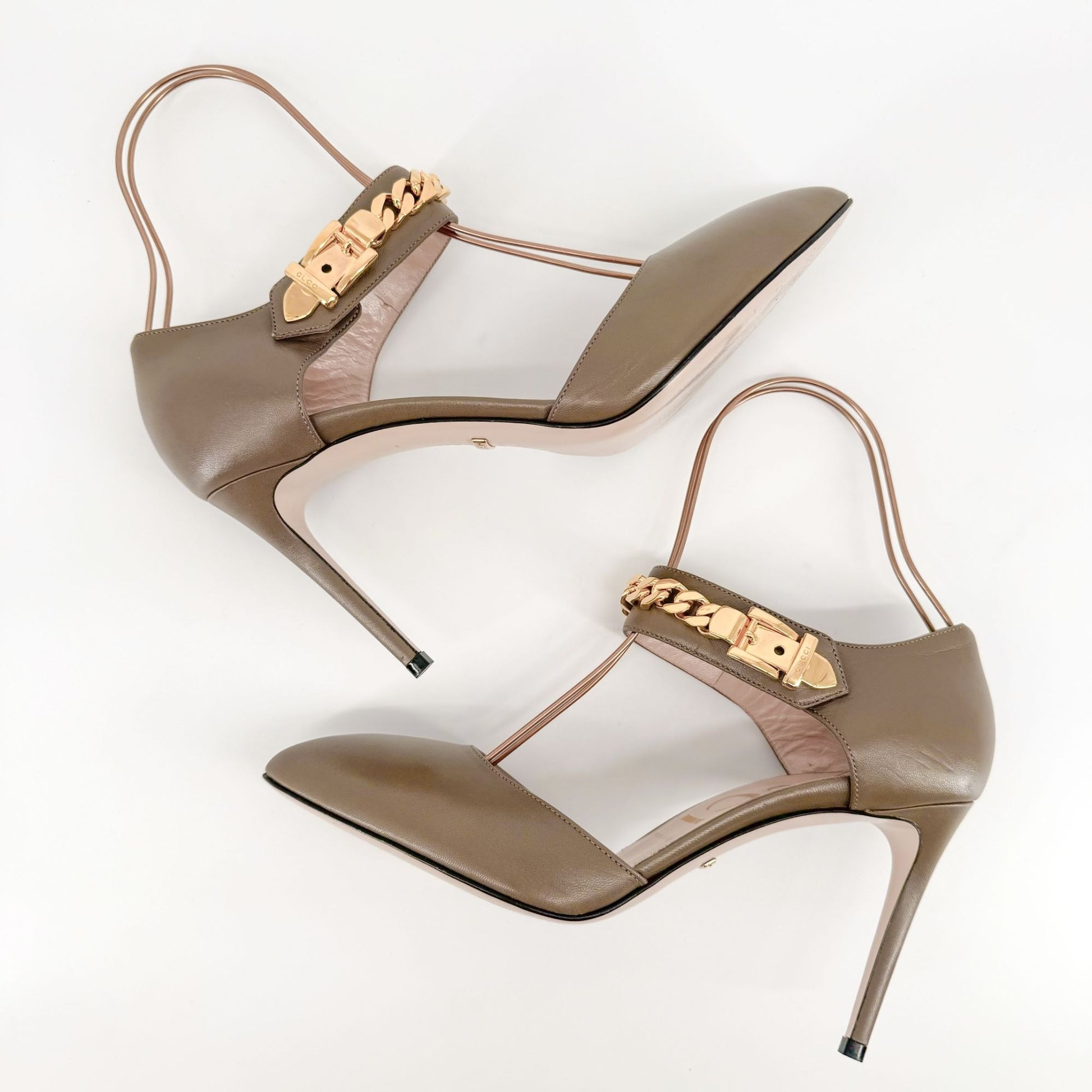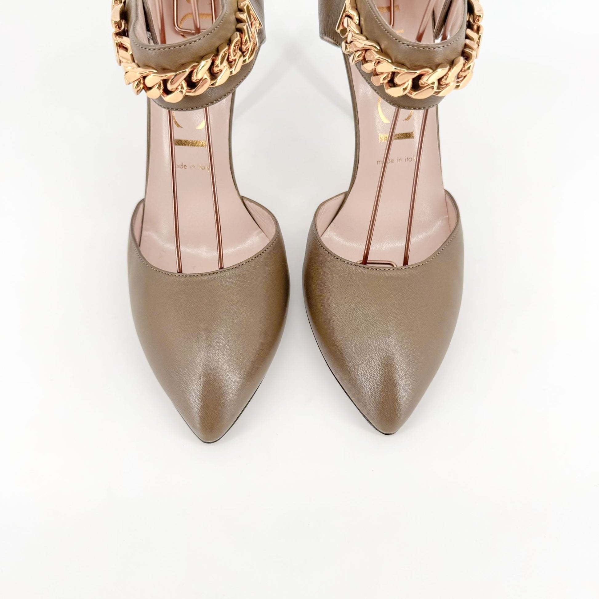 Gucci Sylvie Chain d'Orsay Pumps in Taupe Leather Size 40