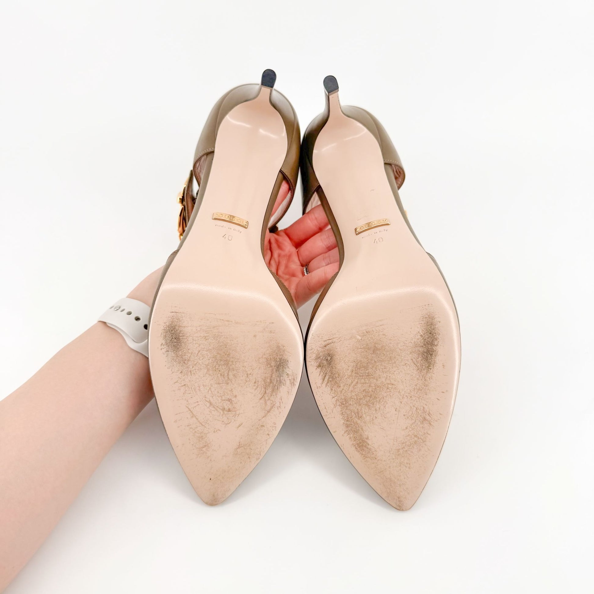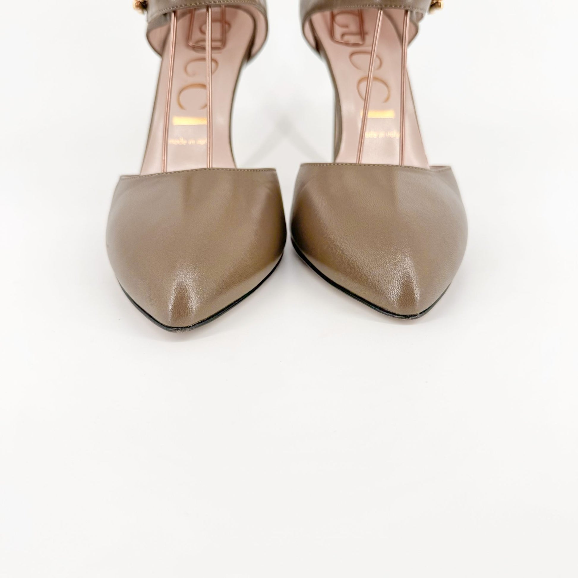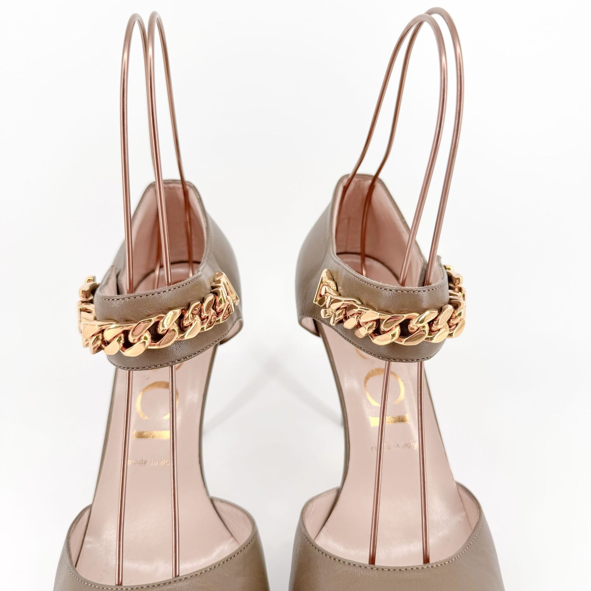 Gucci Sylvie Chain d'Orsay Pumps in Taupe Leather Size 40