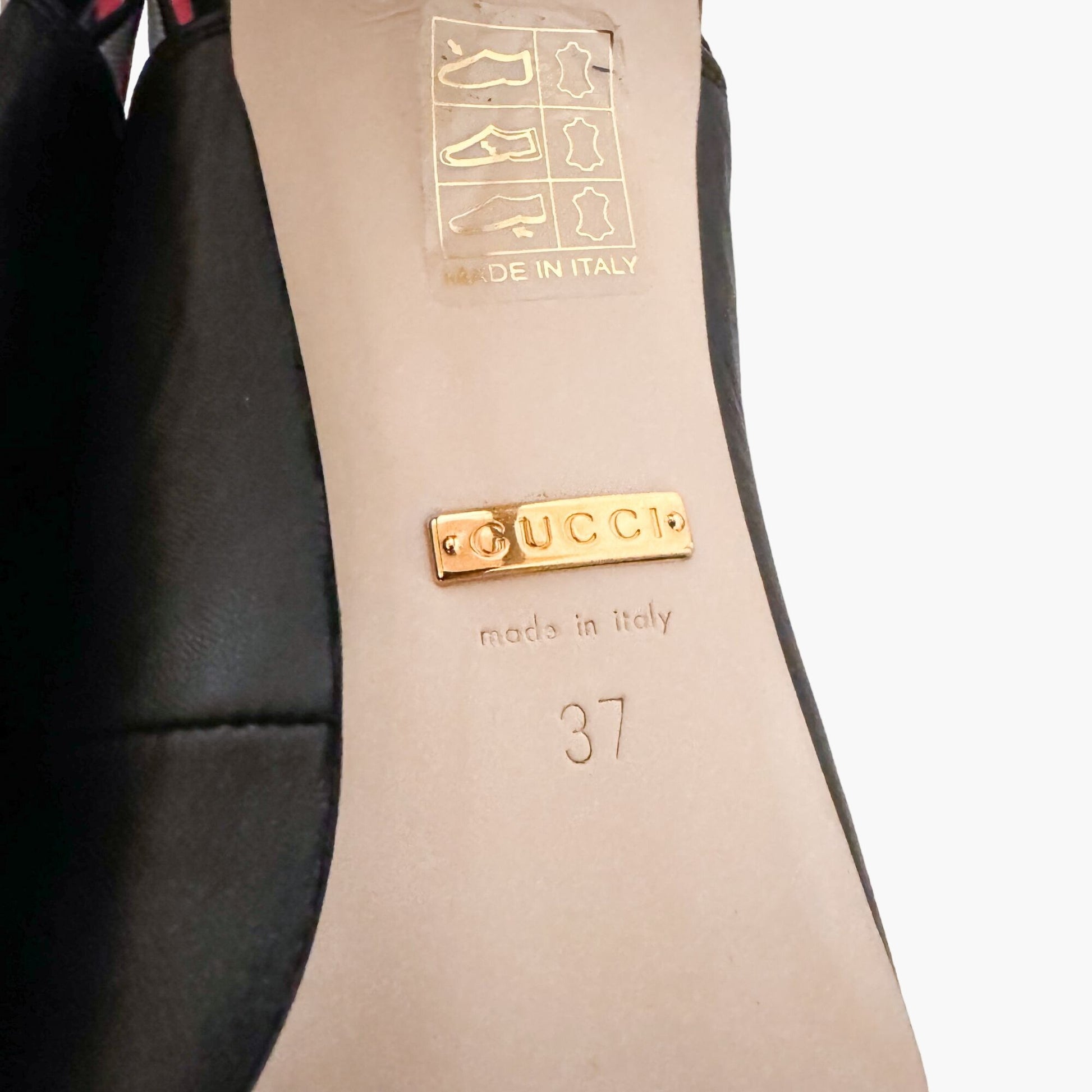 Gucci Sylvie Web Stripe Slingback Pumps in Black Size 37