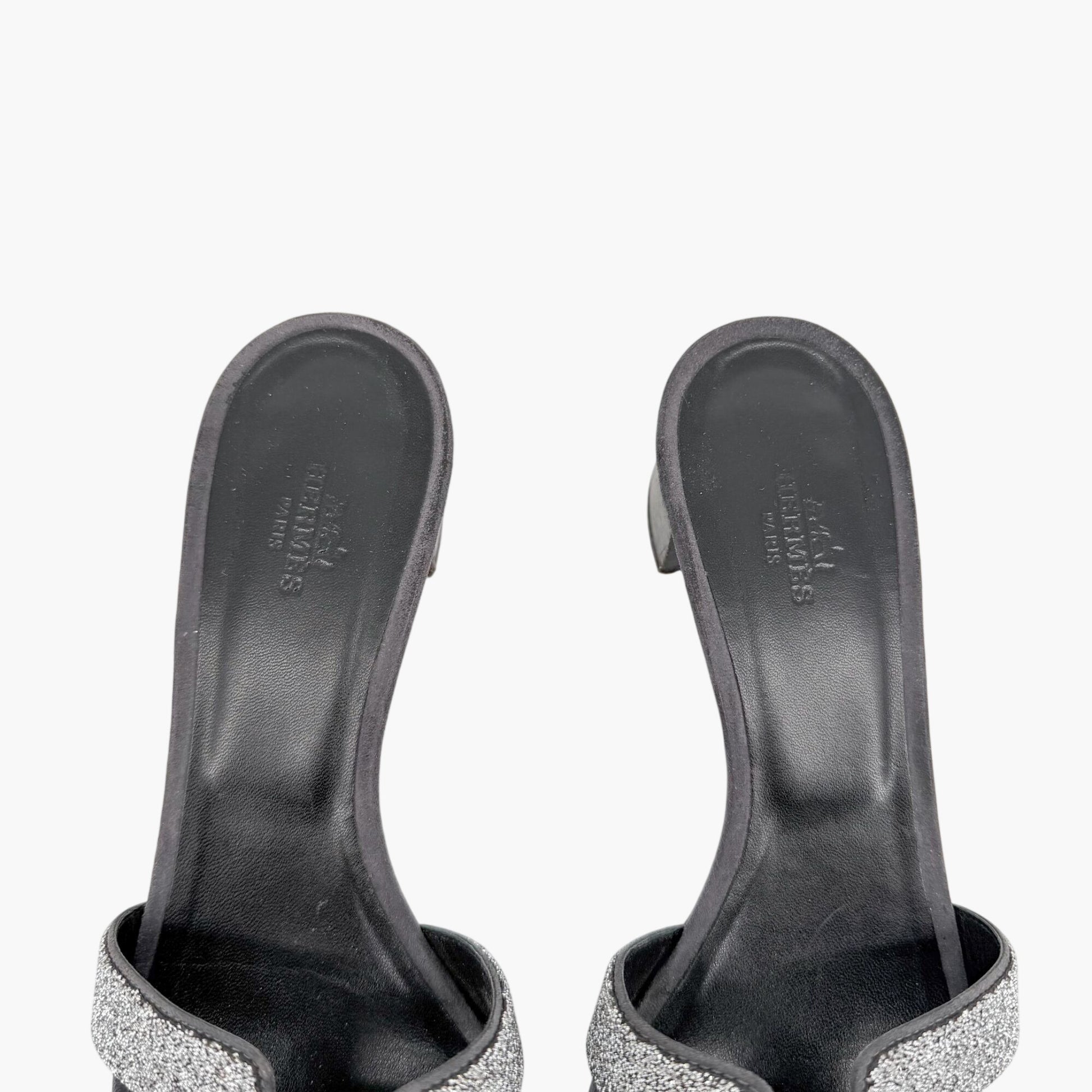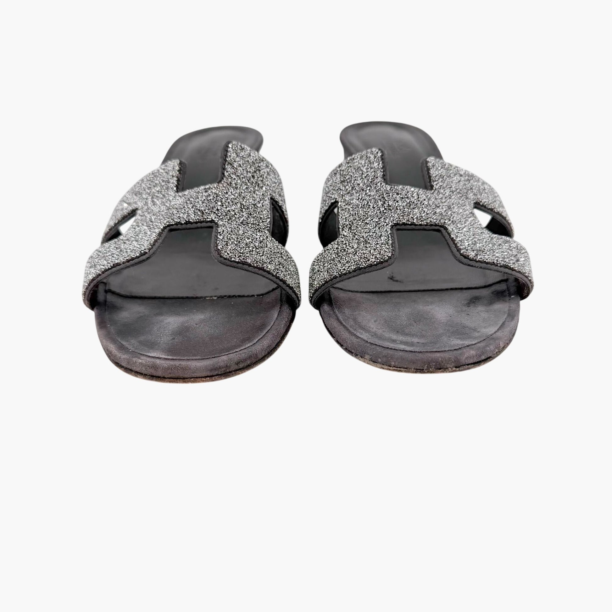 Hermès Oasis Crystal H Slide Sandals Black Silver Size 38