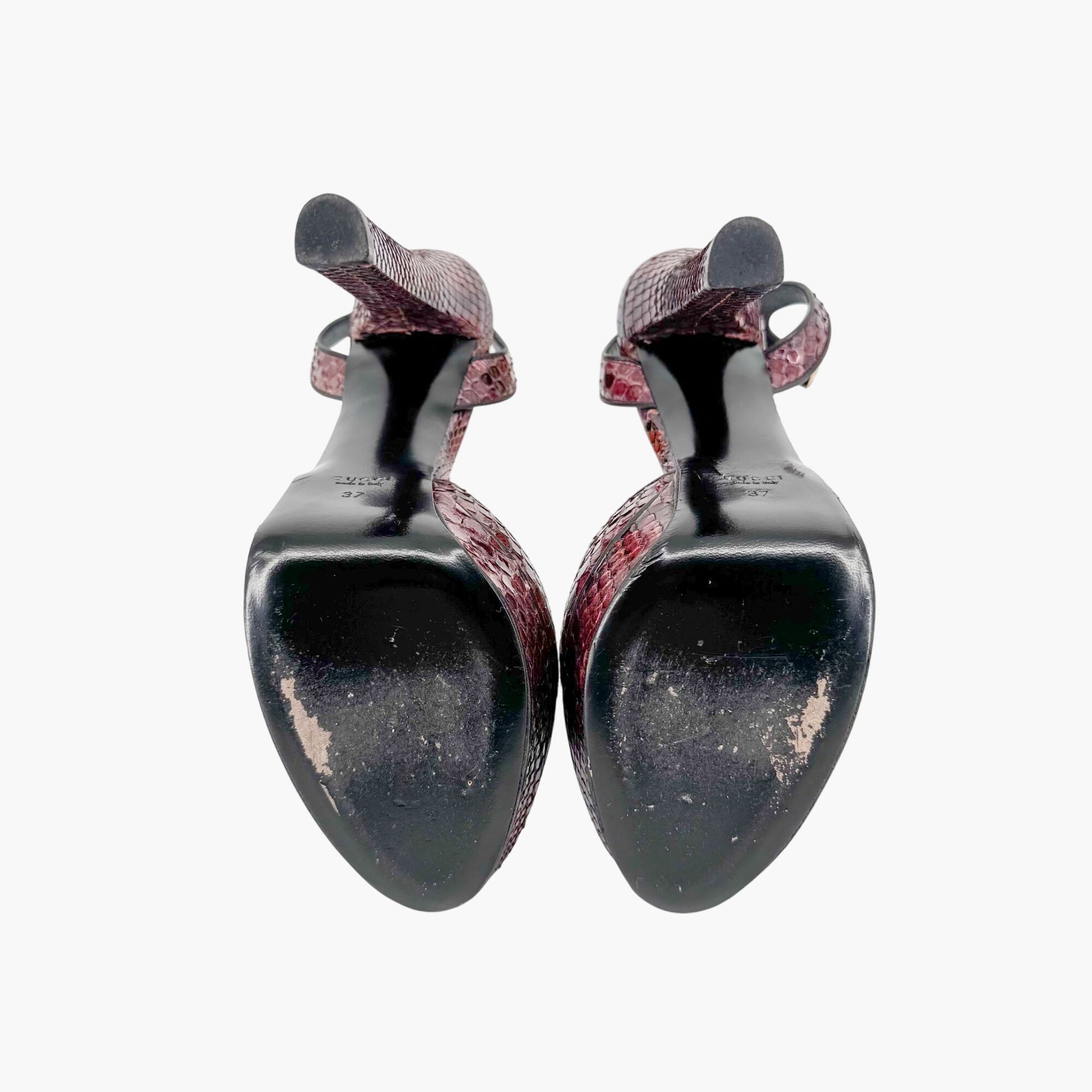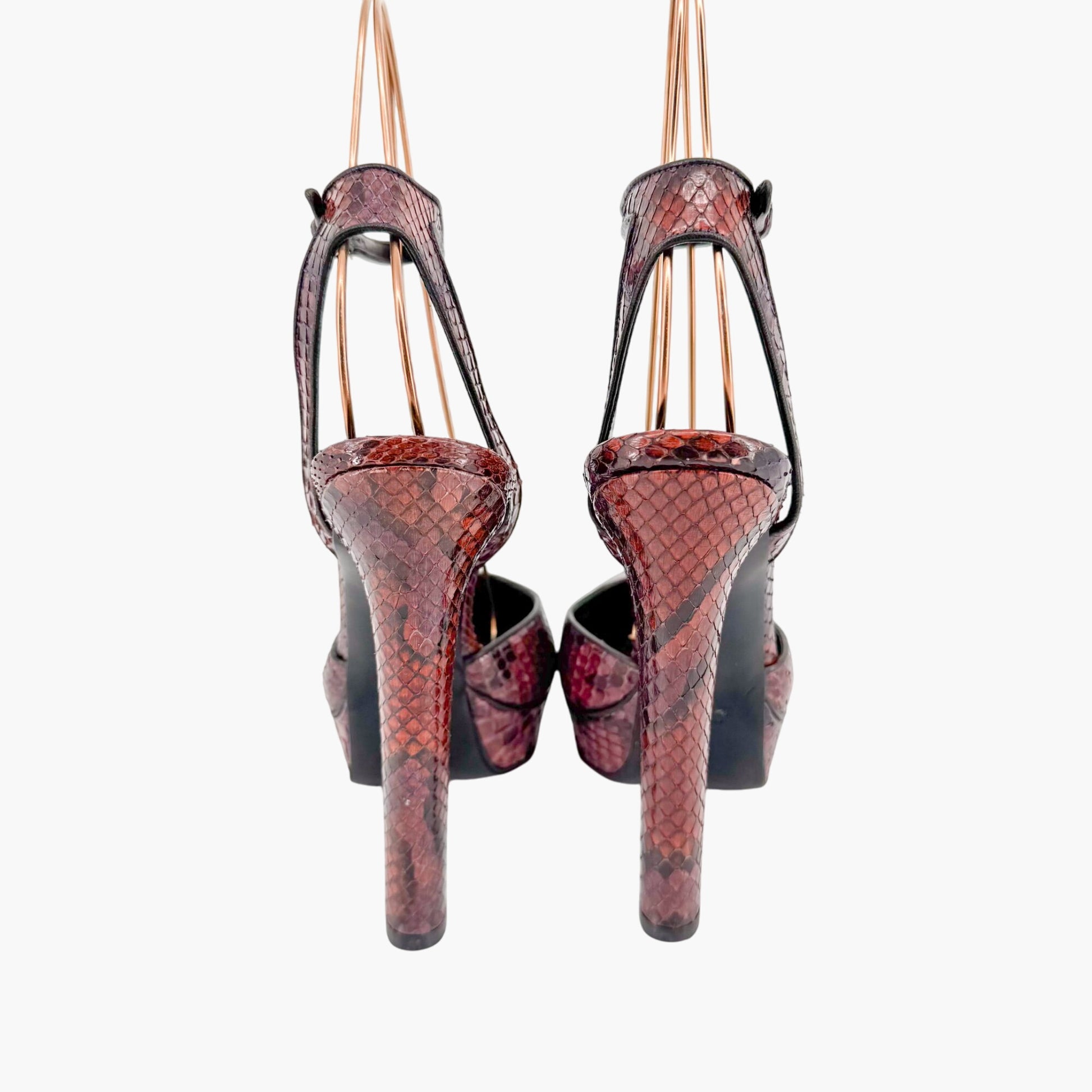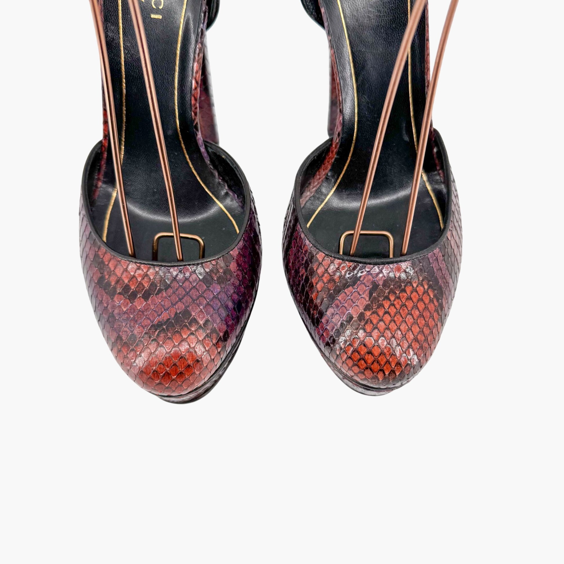 Gucci Huston Platform Pump Size 37 US 7 Red Burgundy Python Snake Mary Jane Heel