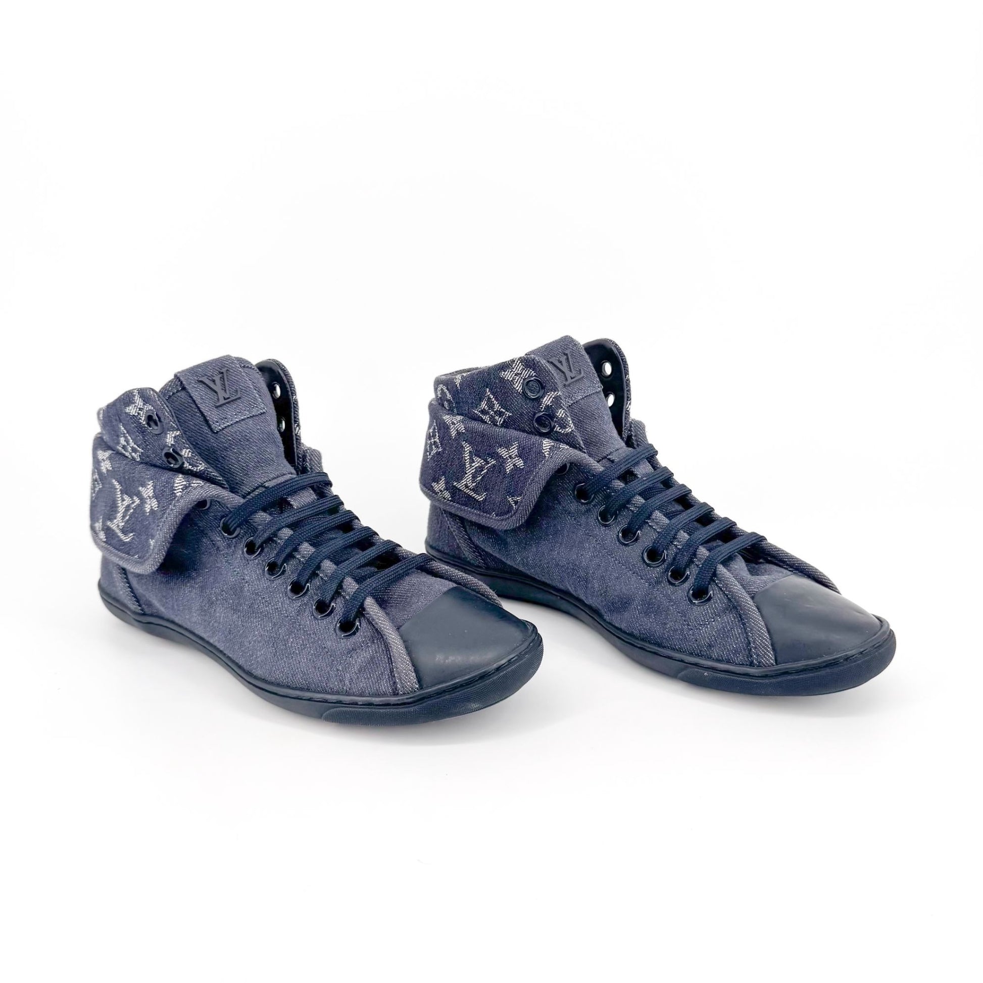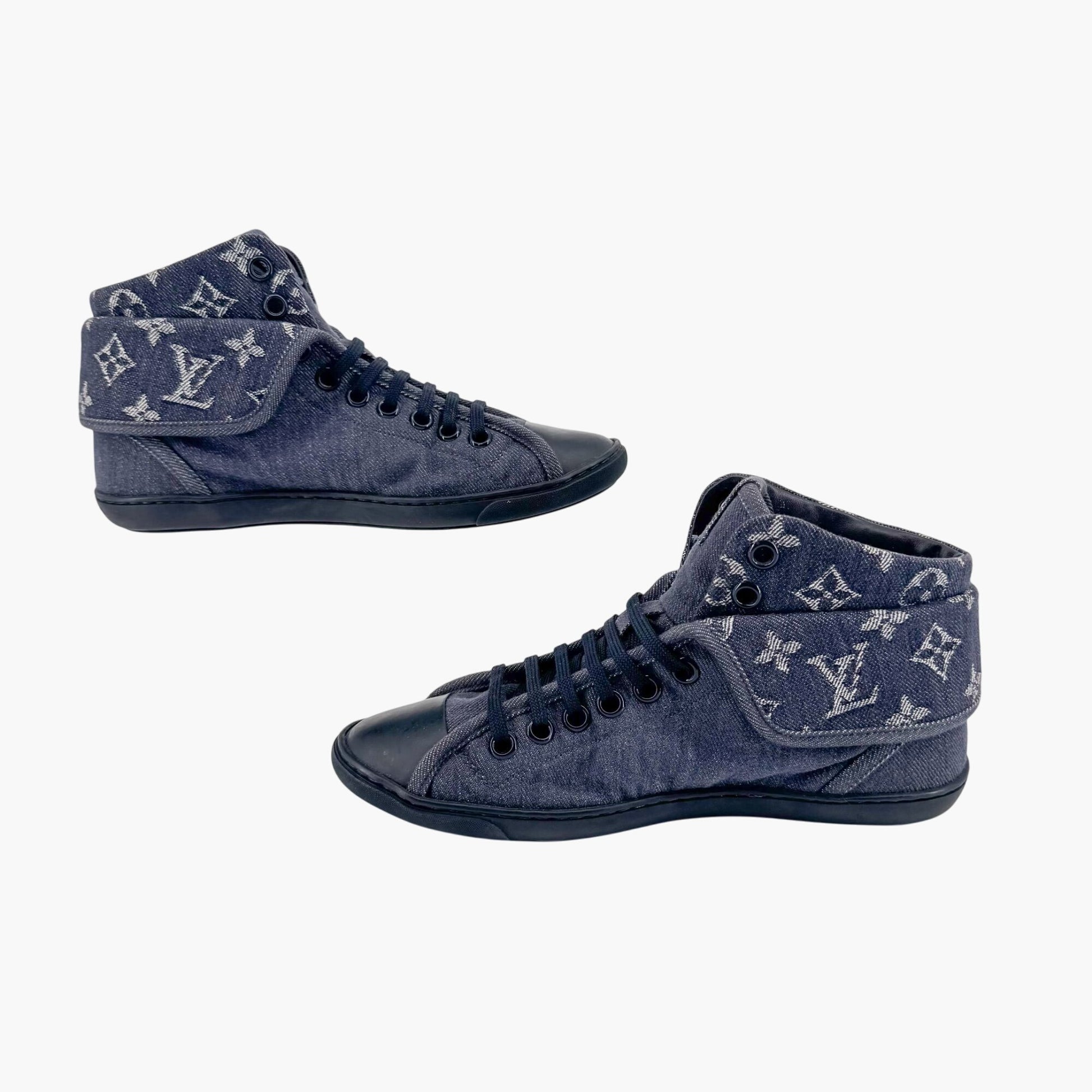 Louis Vuitton Brea Mid-Top Sneakers in Navy Monogram Denim – Size 37