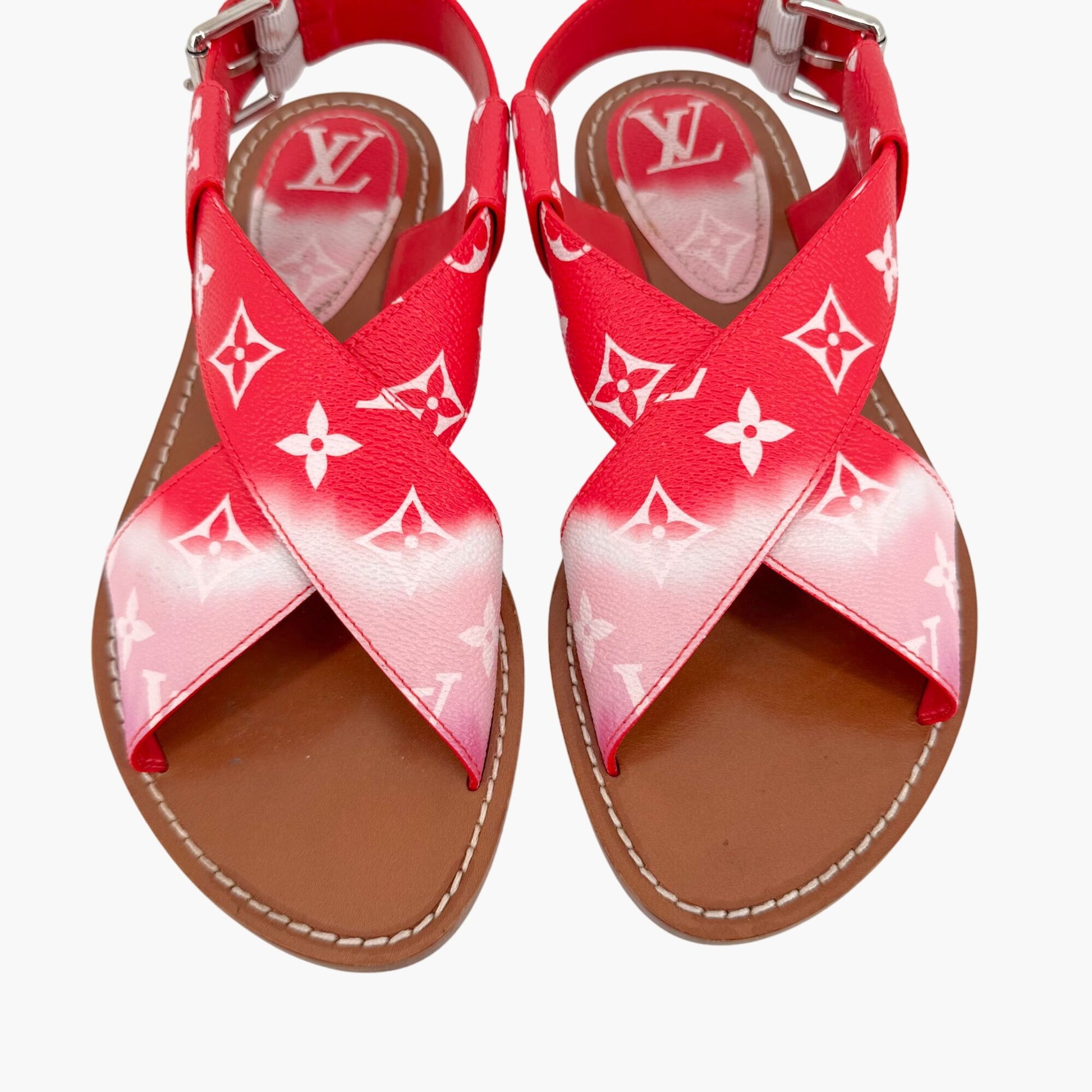 Louis Vuitton Palma Flat Criss-Cross Sandals in Pink & Red LV Tie Dye Canvas Size 37.5