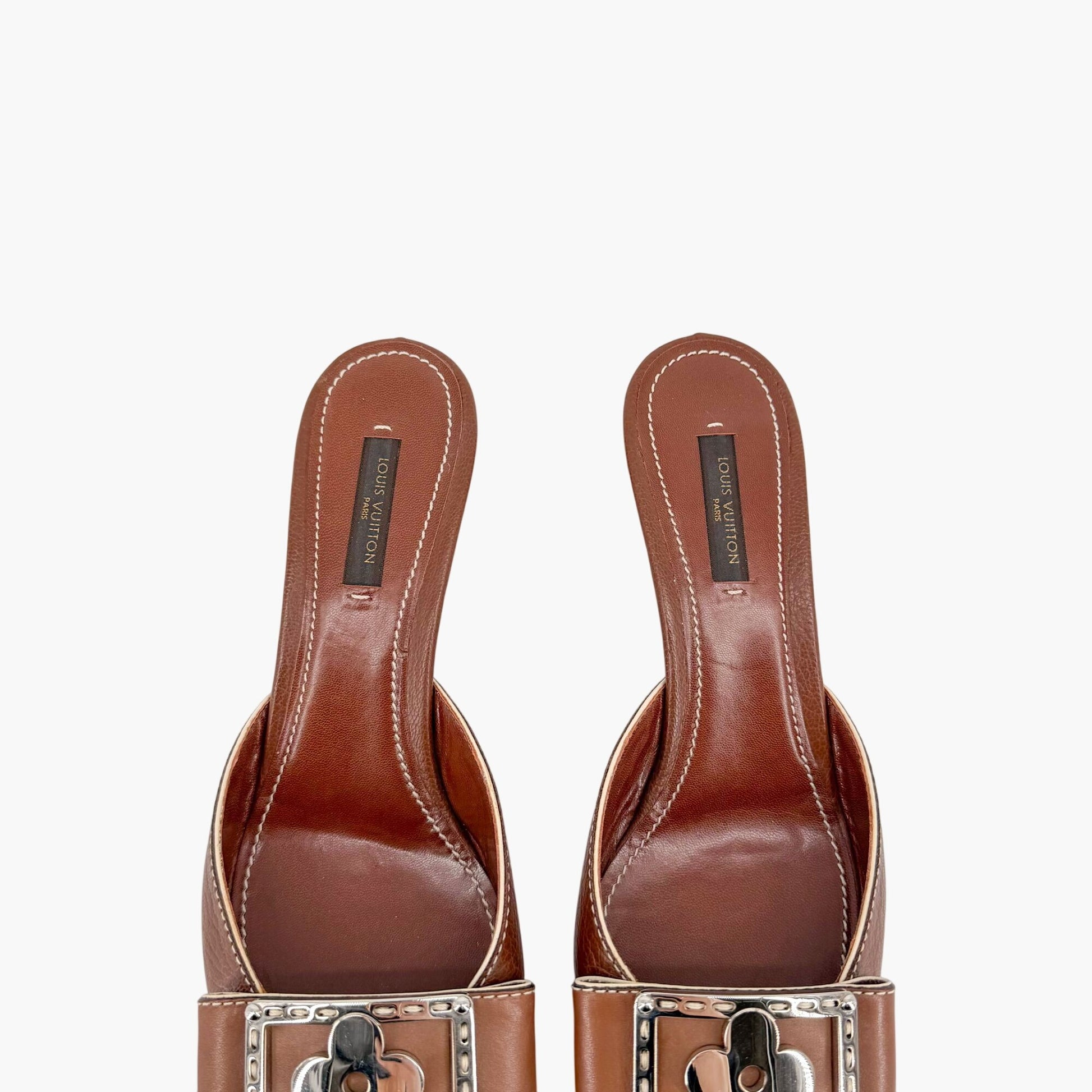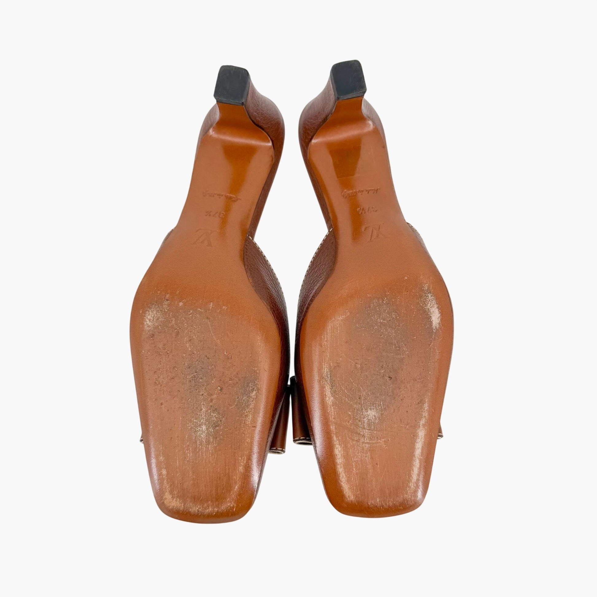 Louis Vuitton Vintage Flower Logo Mule Heels Brown Size 37.5