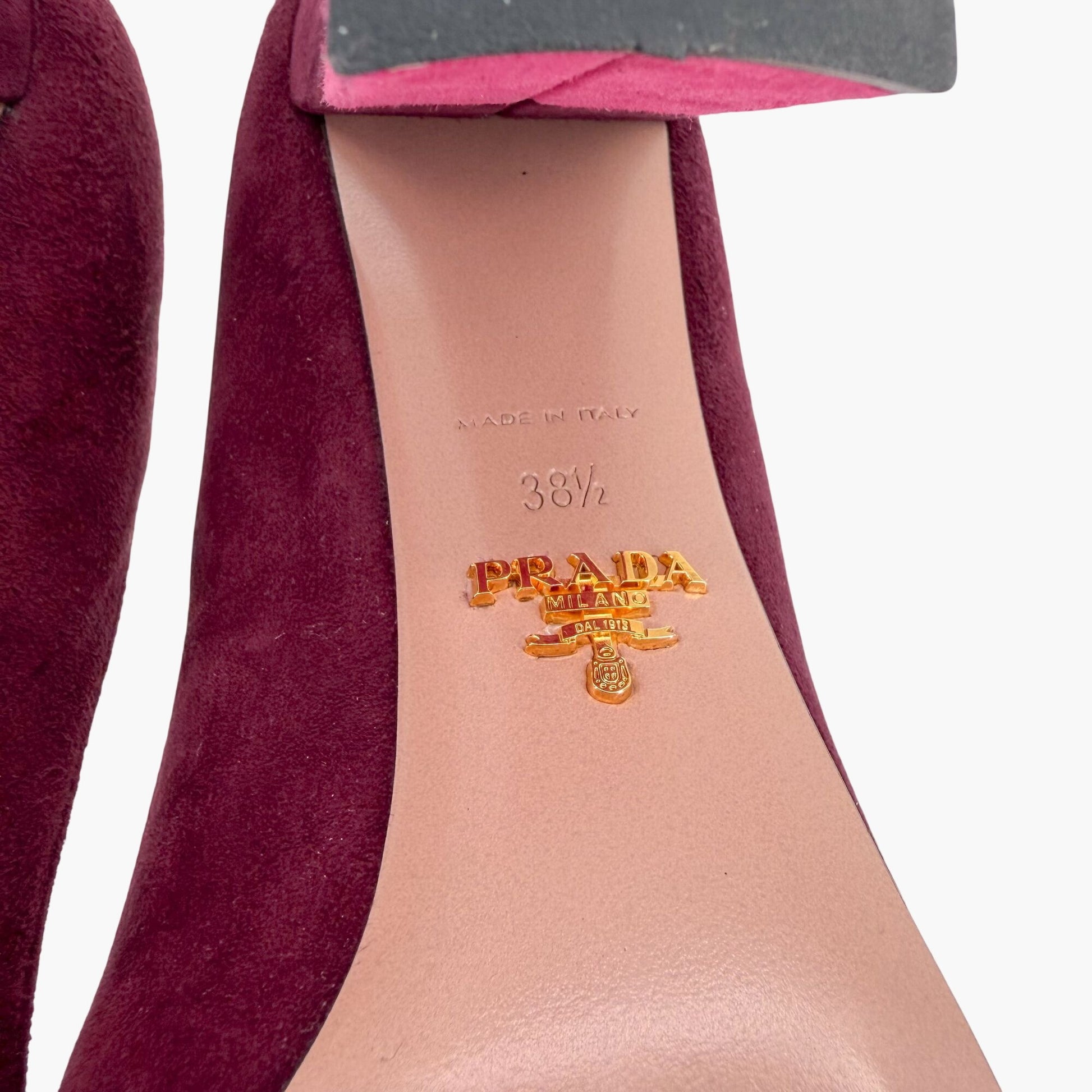 Prada Two Tone Block Heel Pumps Maroon Magenta Size 38.5