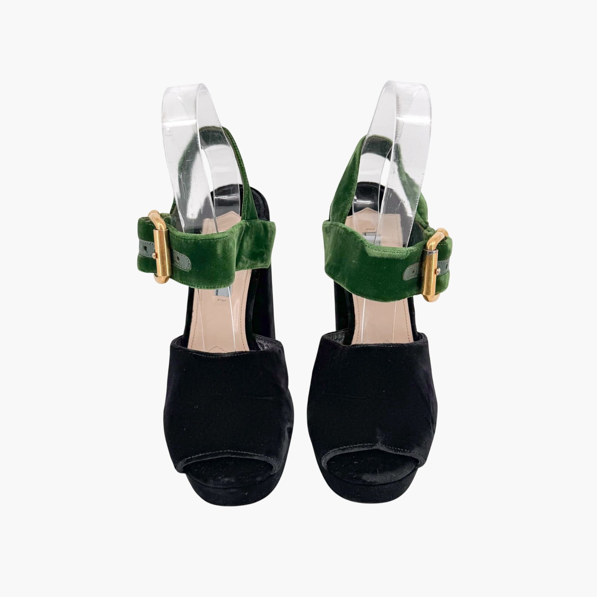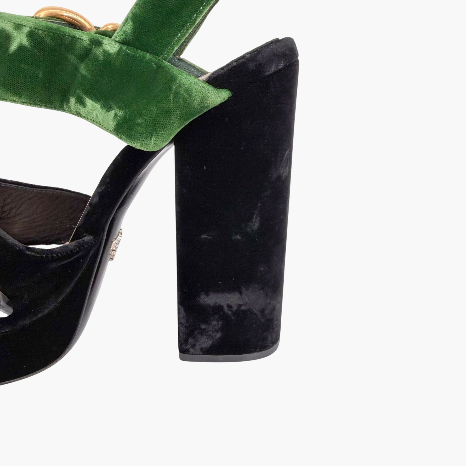 Prada Two-Tone Platform Sandals Black Green Velvet Size 38