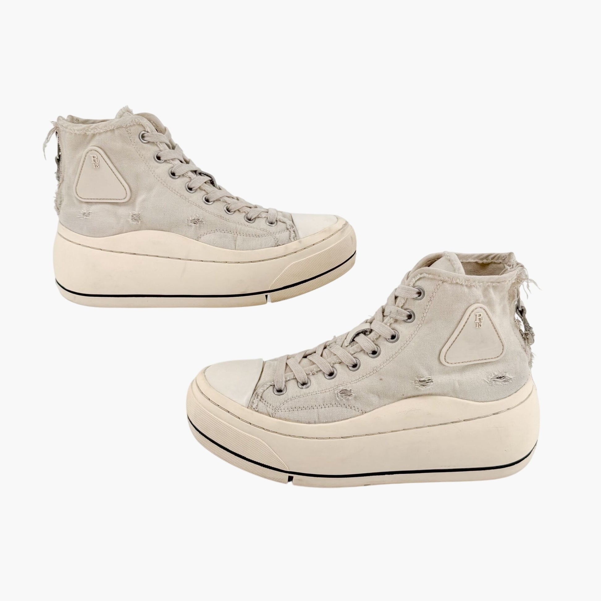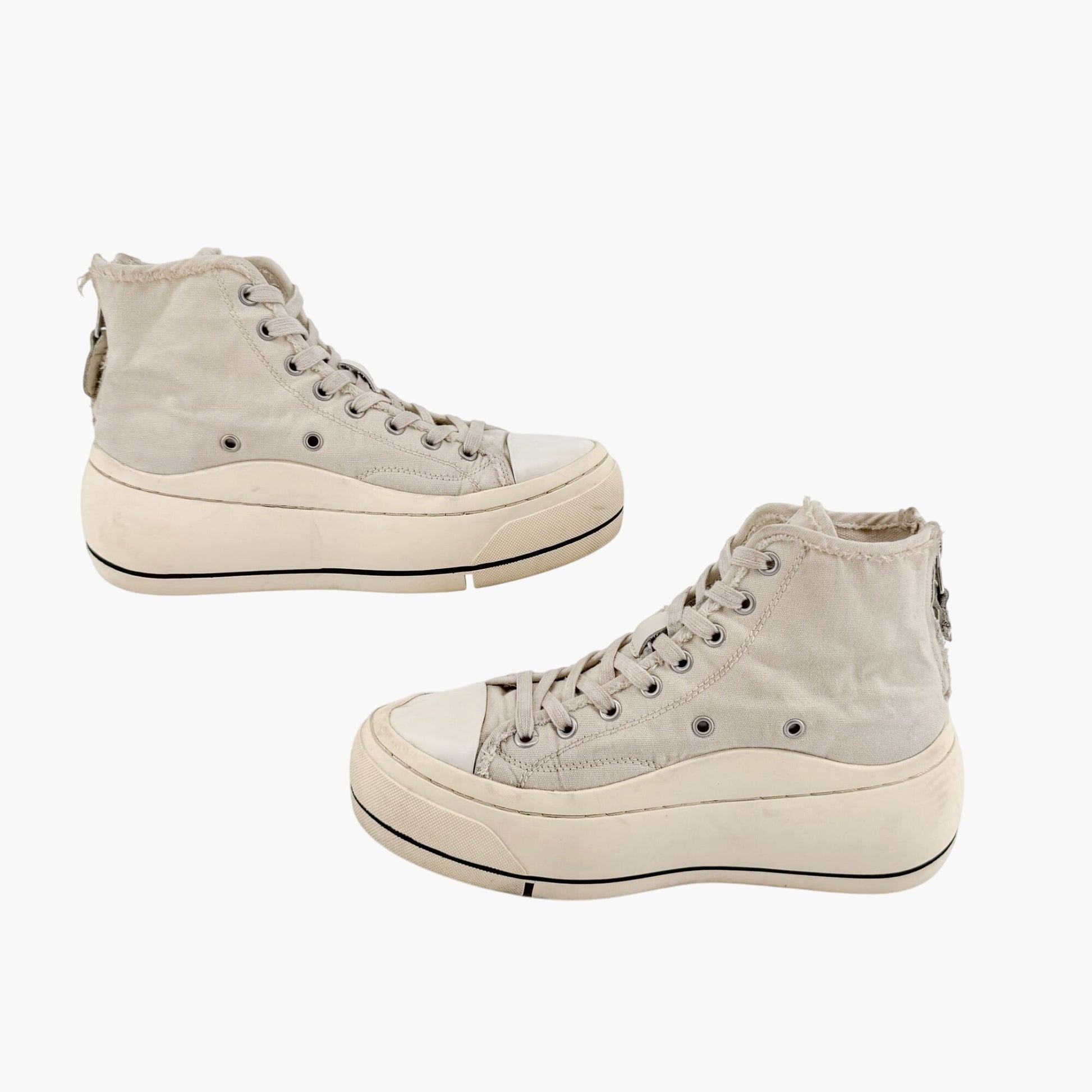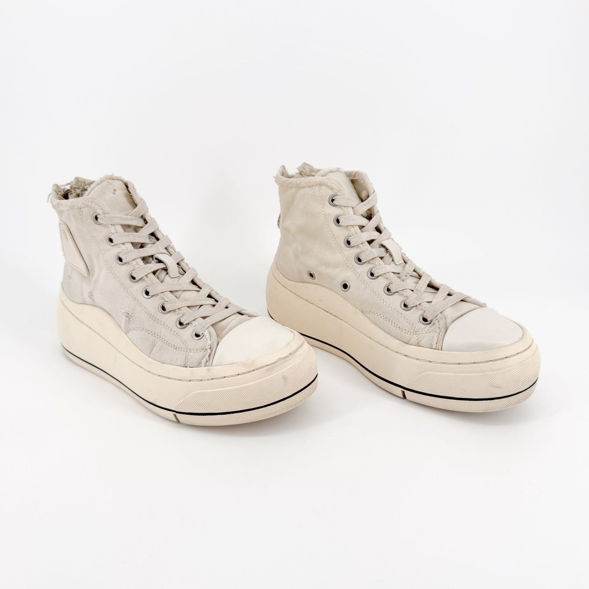 R13 Kurt High Top Platform Sneakers Size 8 Women's Beige Distressed Canvas