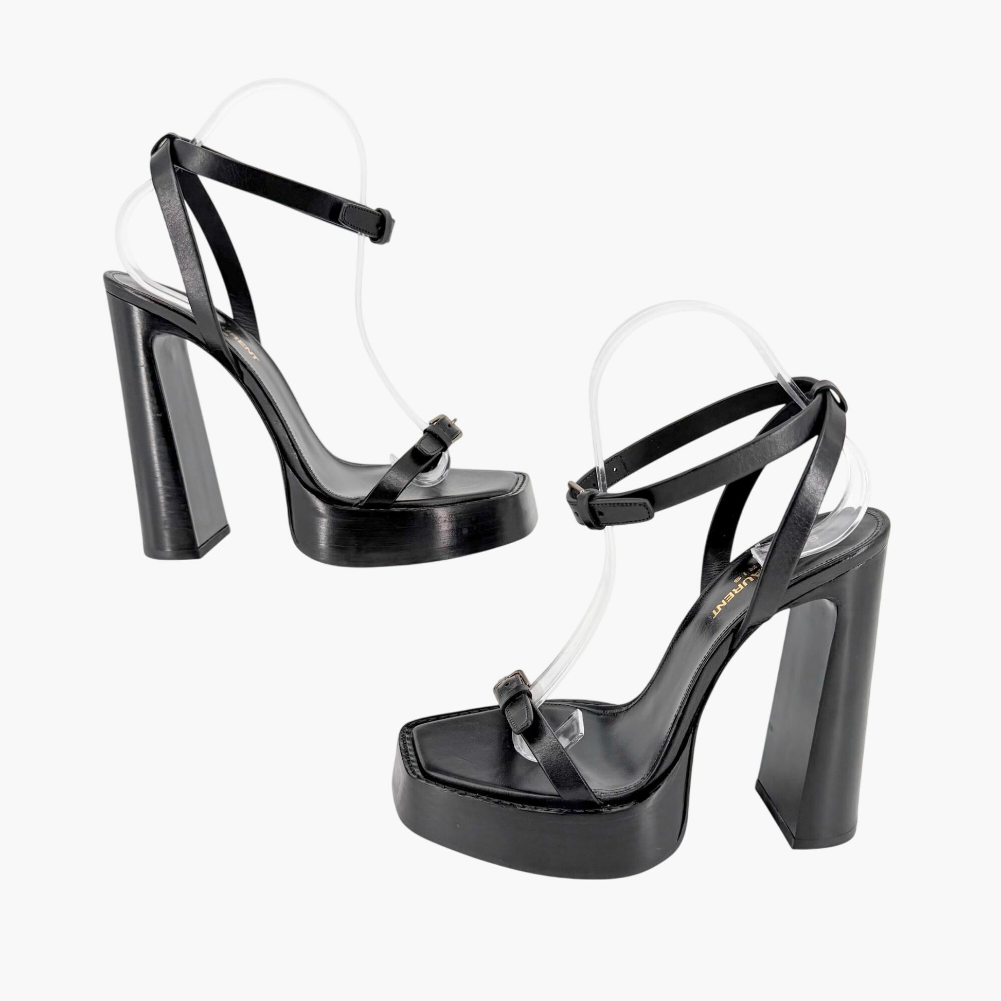 Saint Laurent Platz Platform Sandals Black Leather Size 39