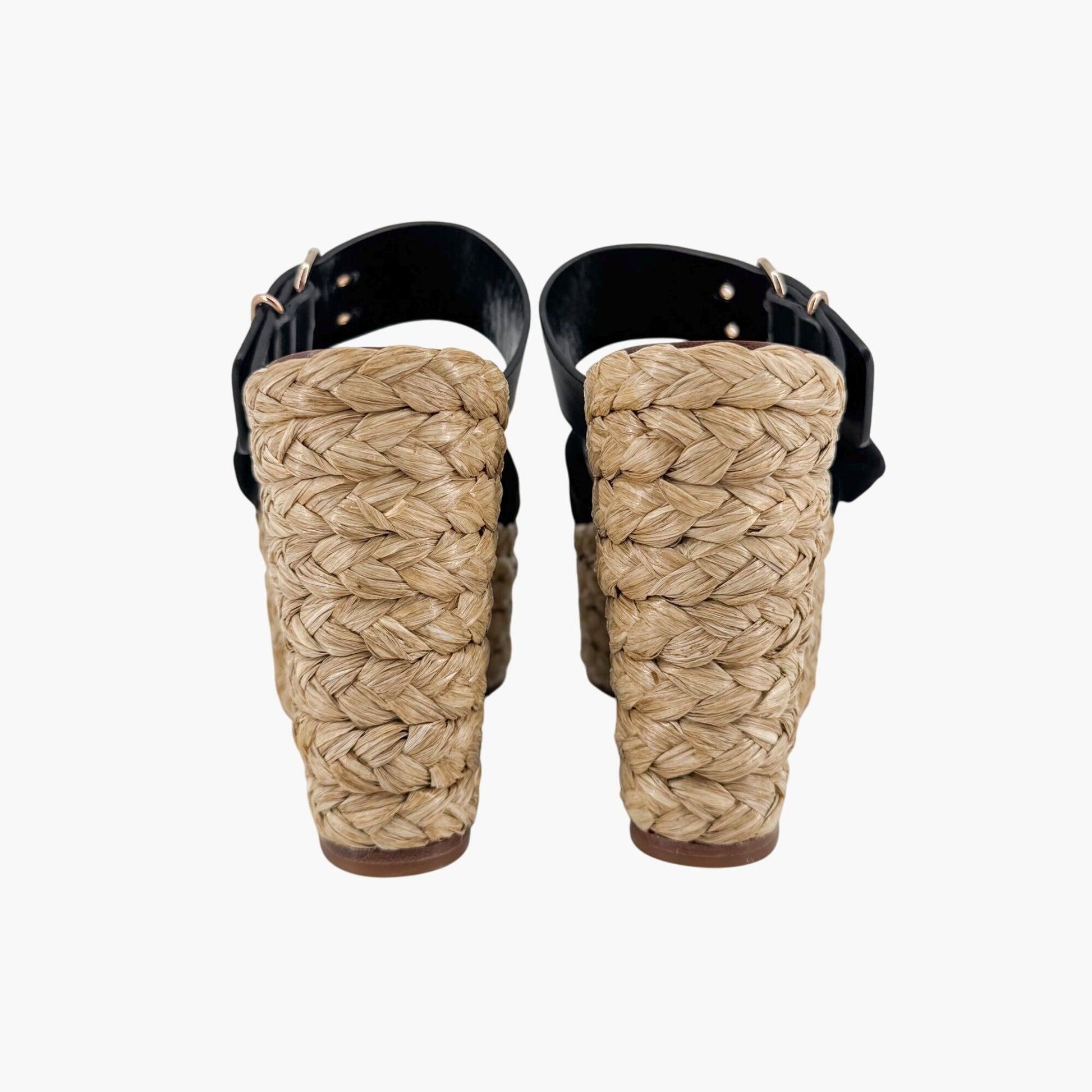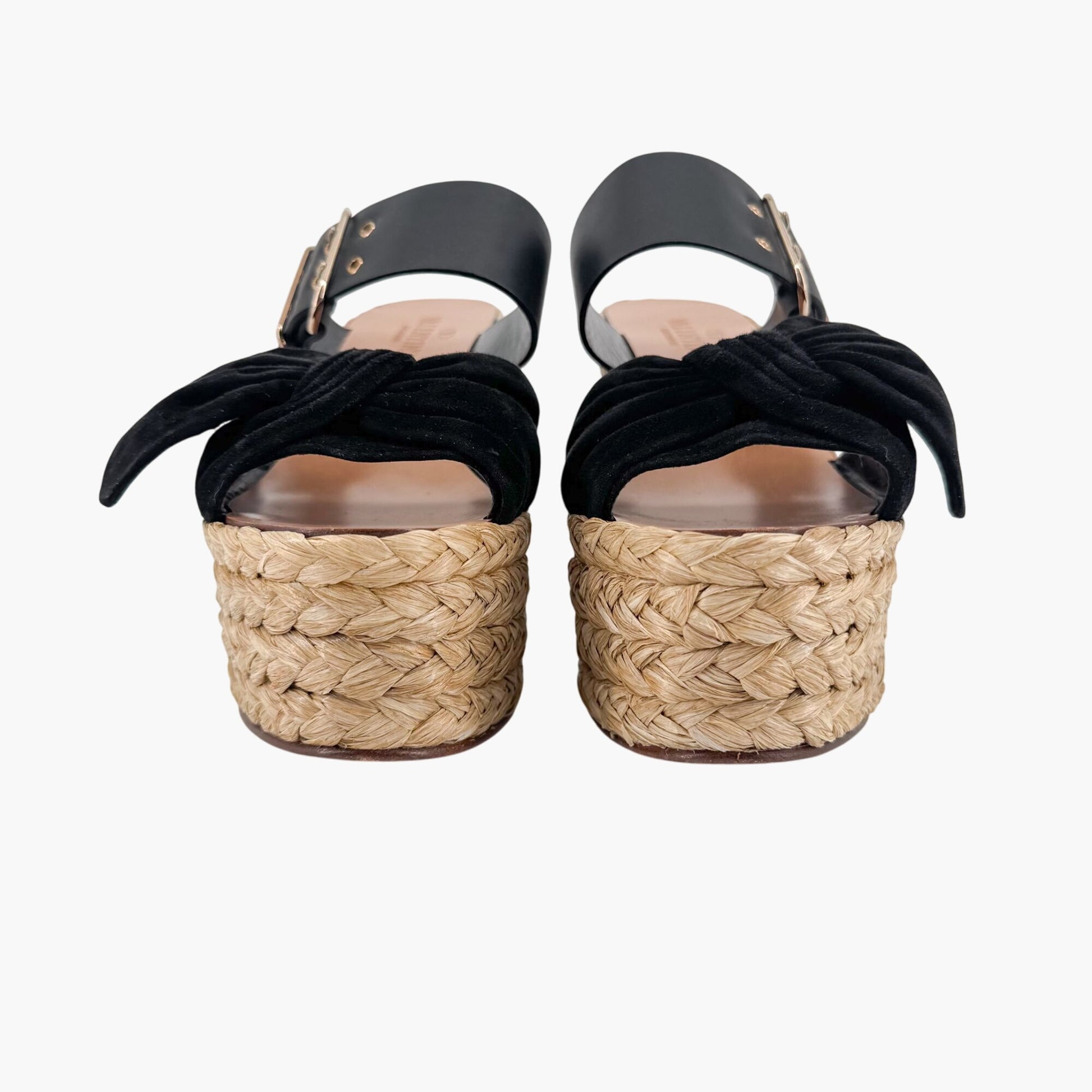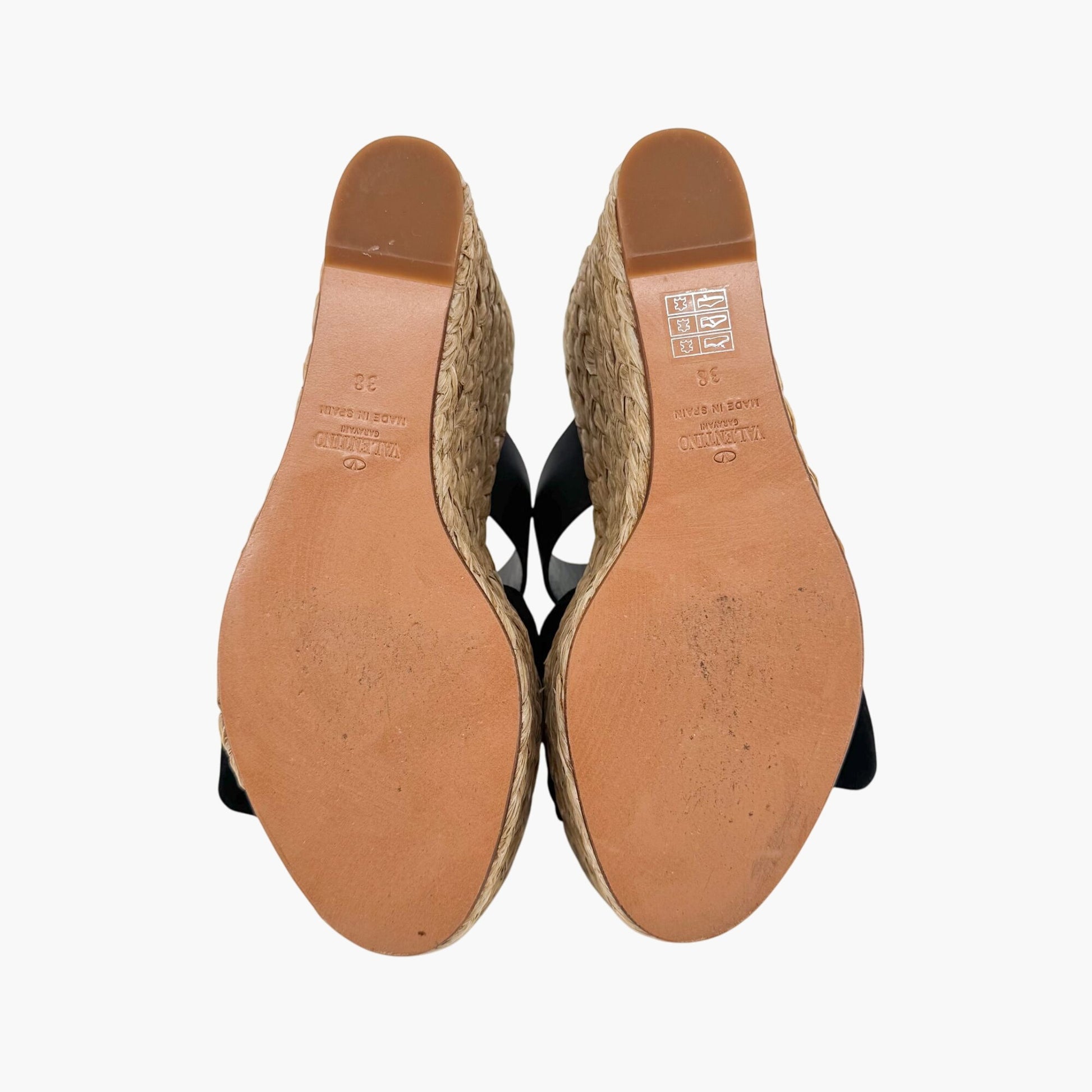 Valentino Garavani Black Suede Espadrille Wedge Sandals Size 38