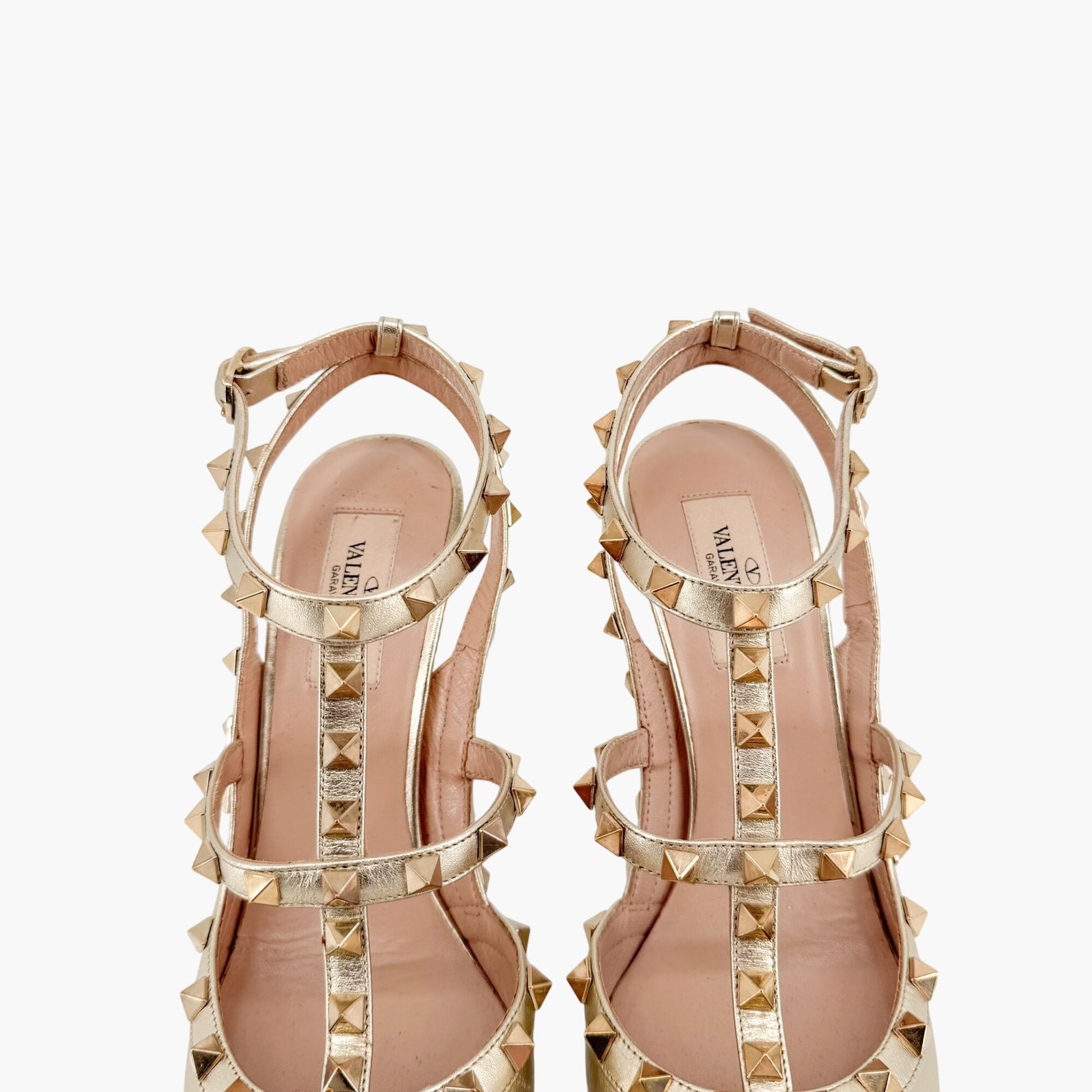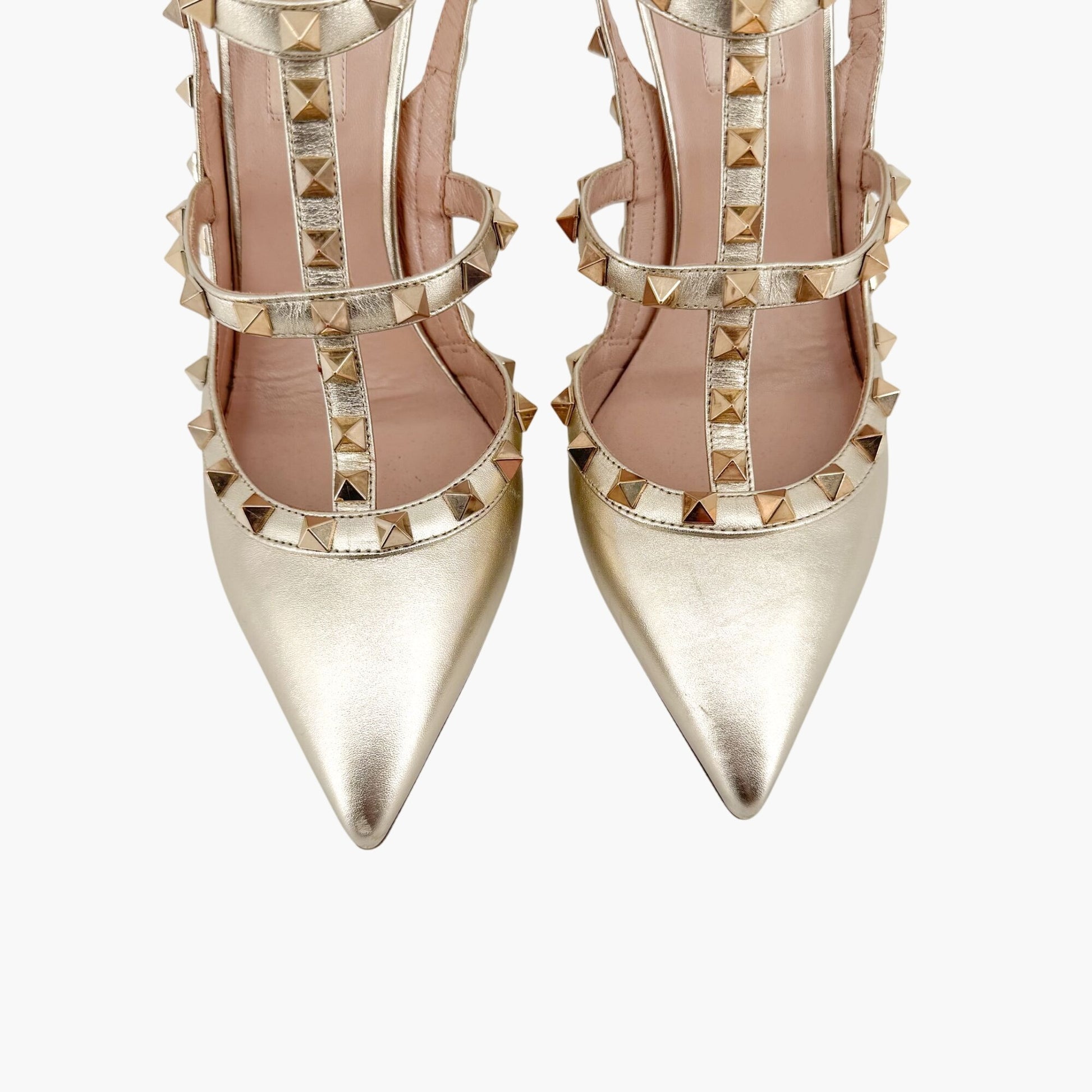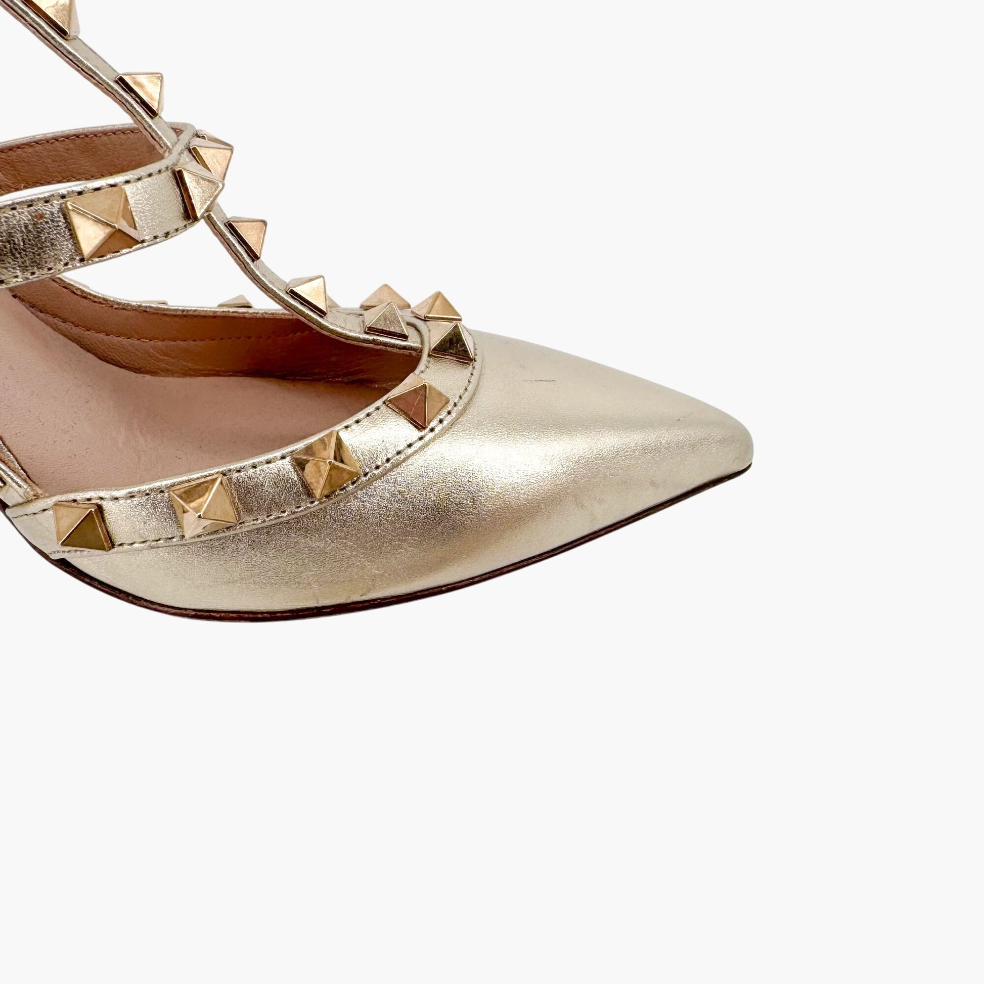 Valentino Garavani Rockstud Caged Pumps in Metallic Gold Leather Size 39.5