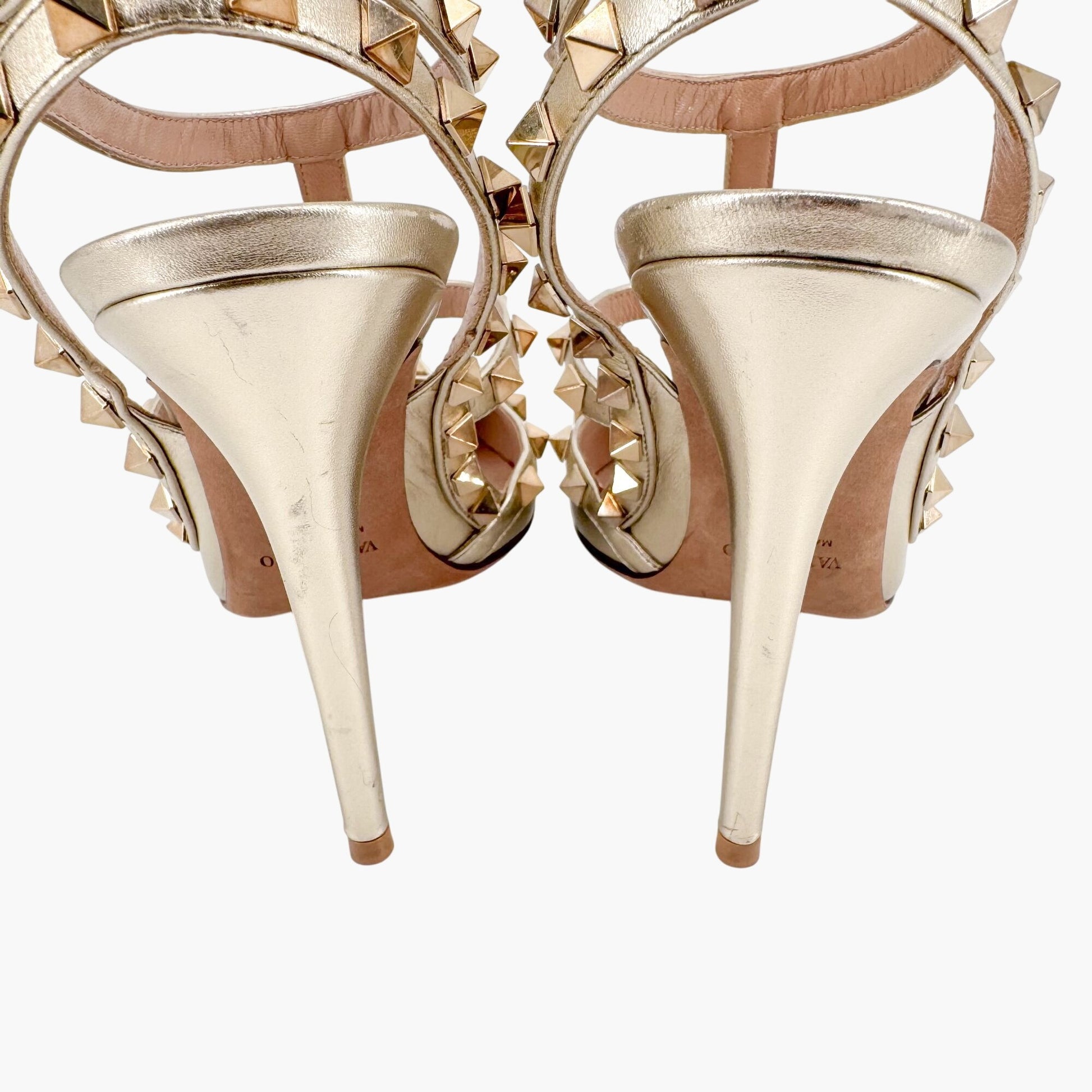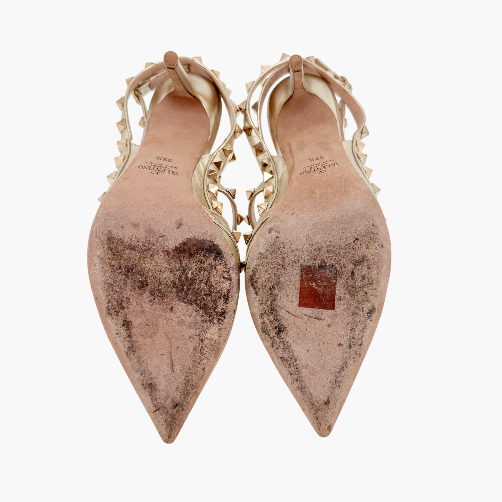 Valentino Garavani Rockstud Caged Pumps EU 39.5 US 9.5 Metallic Gold High Heels