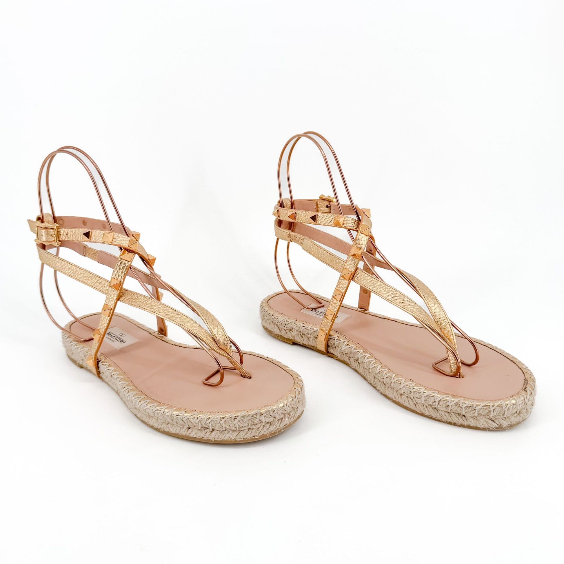 Valentino Garavani Rockstud Espadrille Thong Sandals Size 38 US 8 Gold Flat
