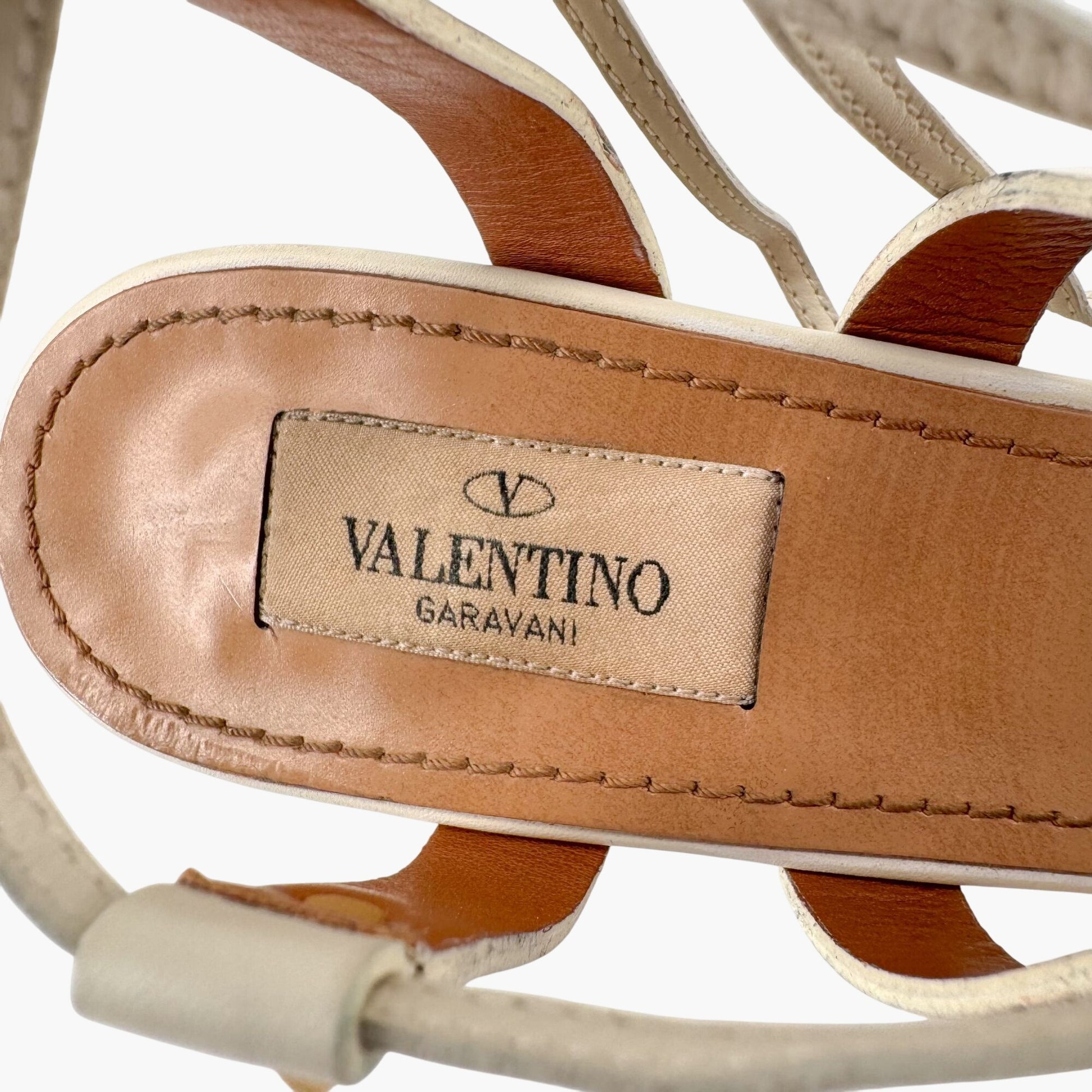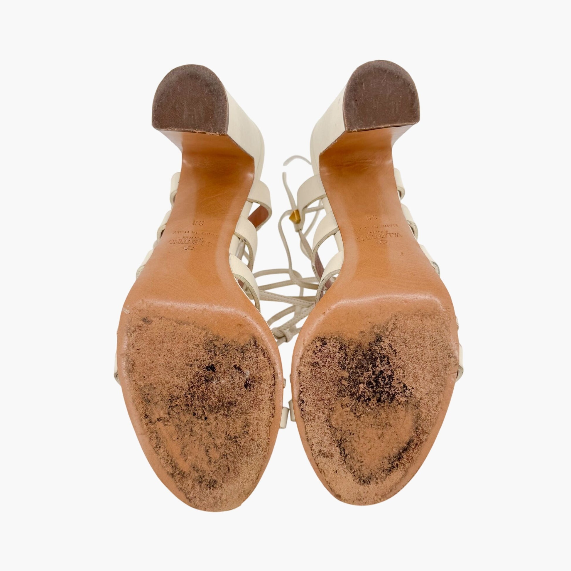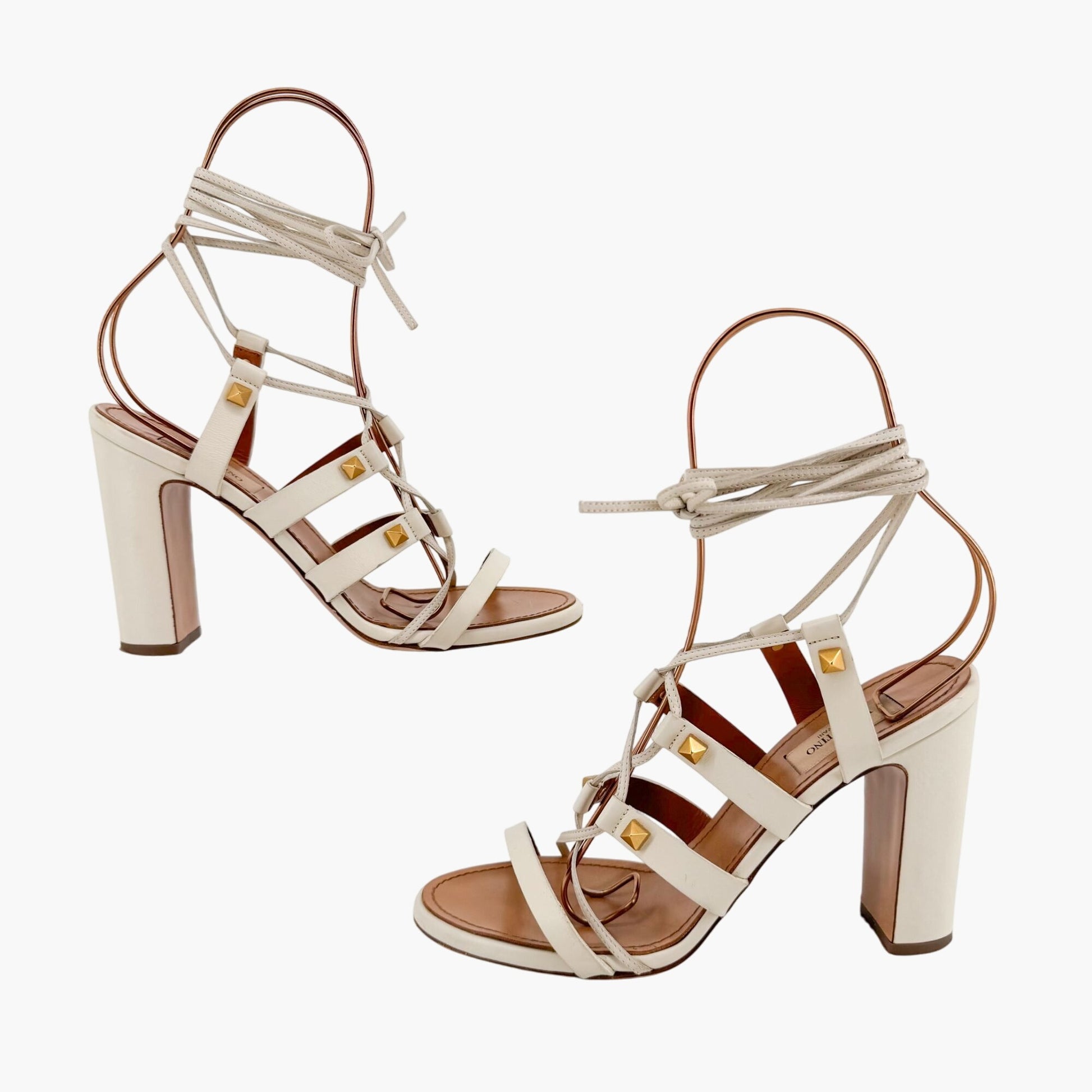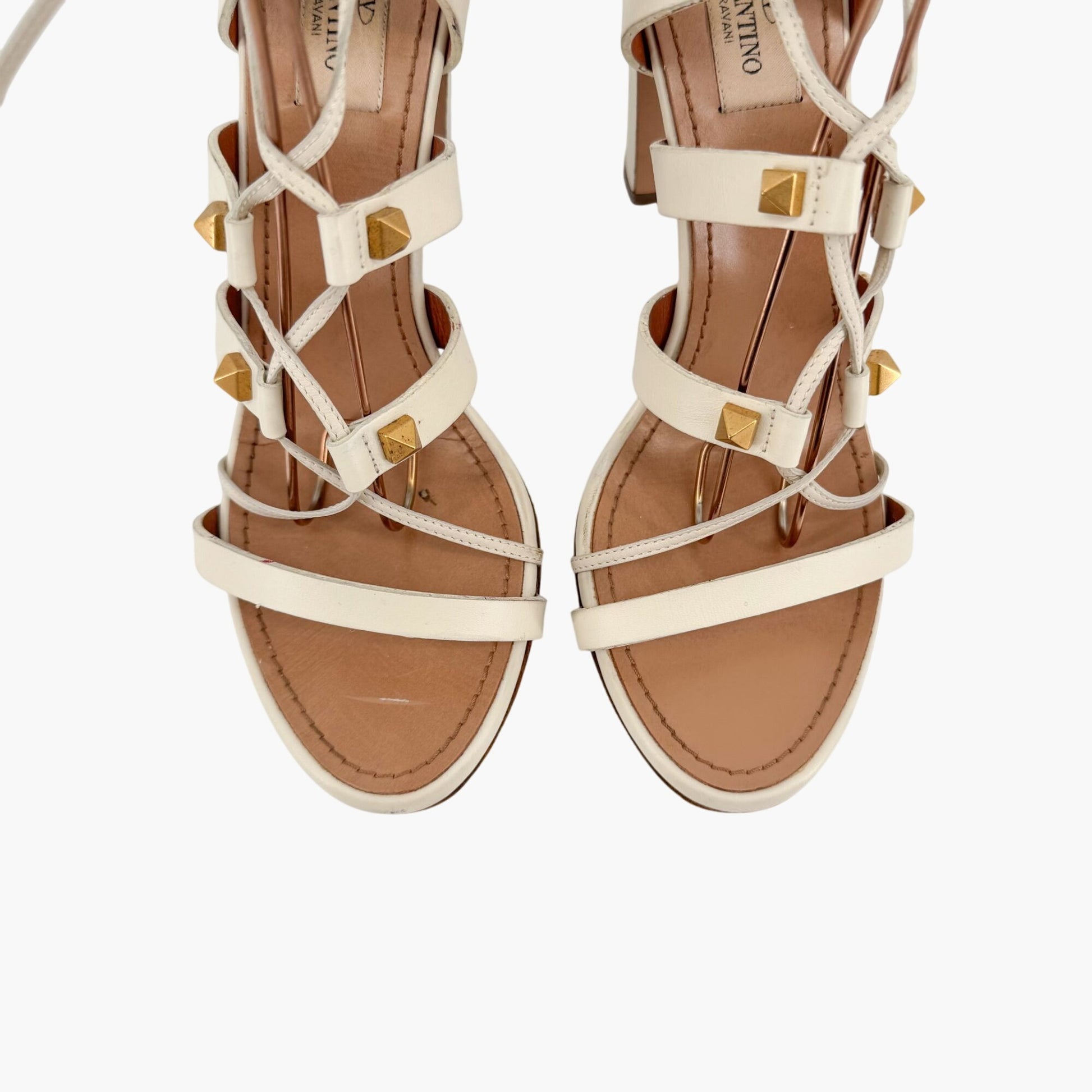 Valentino Garavani Rockstud Lace-Up Gladiator Sandals in Ivory Leather – Size 38