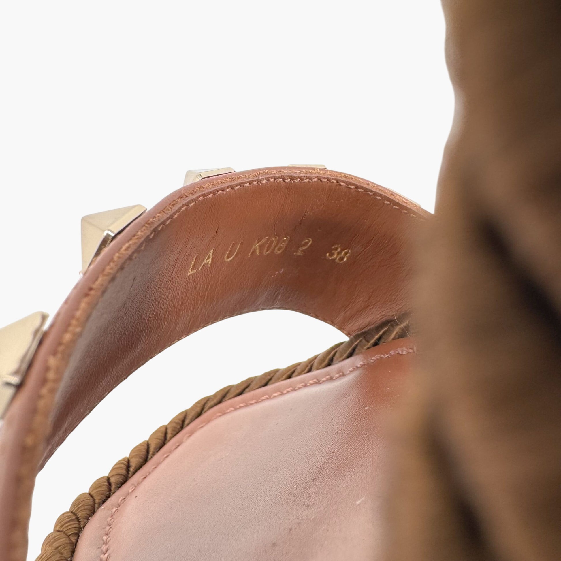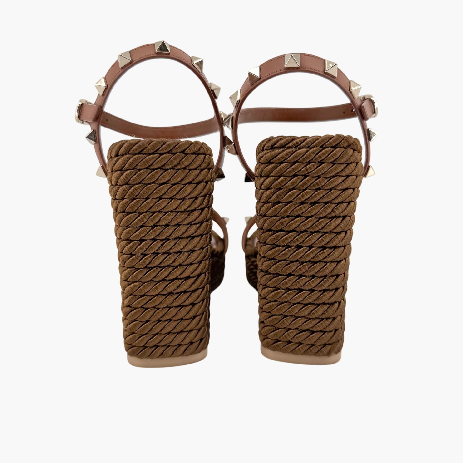 Valentino Garavani Rockstud Torchon Espadrille Wedge Sandals in Brown Leather – Size 38