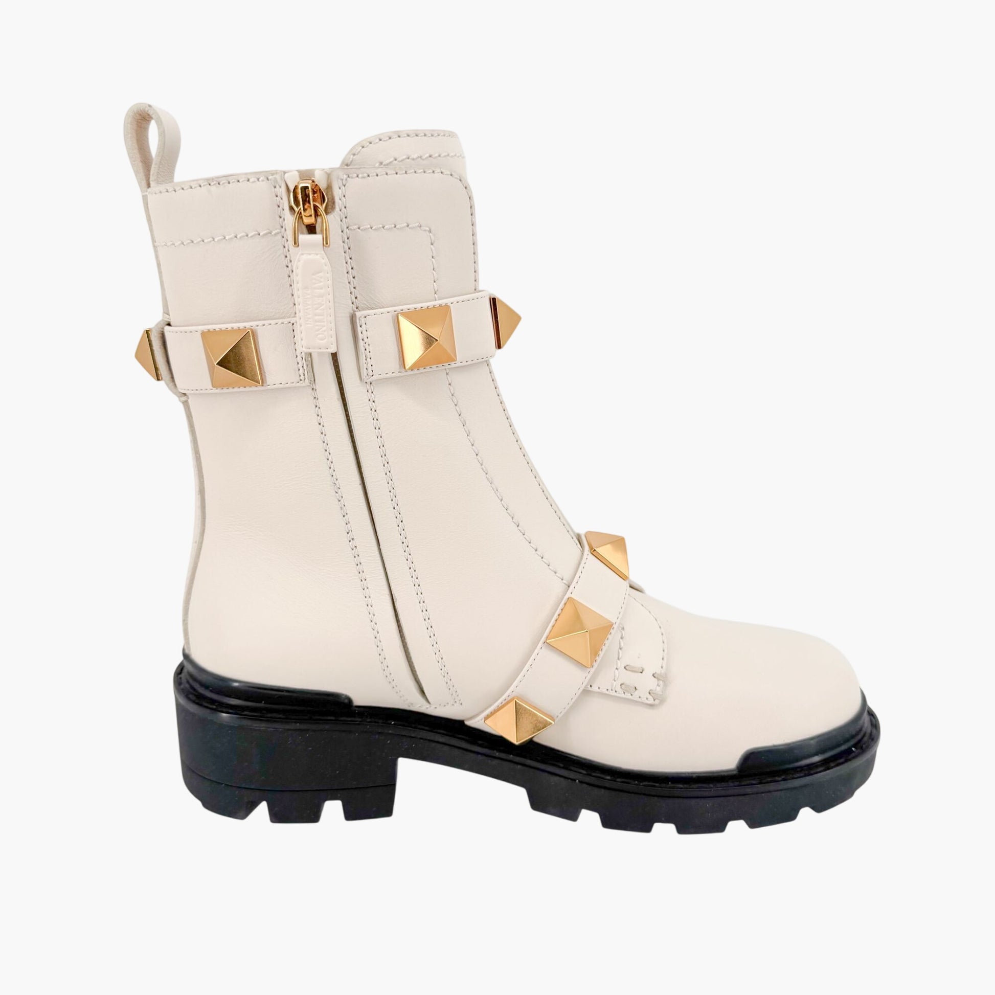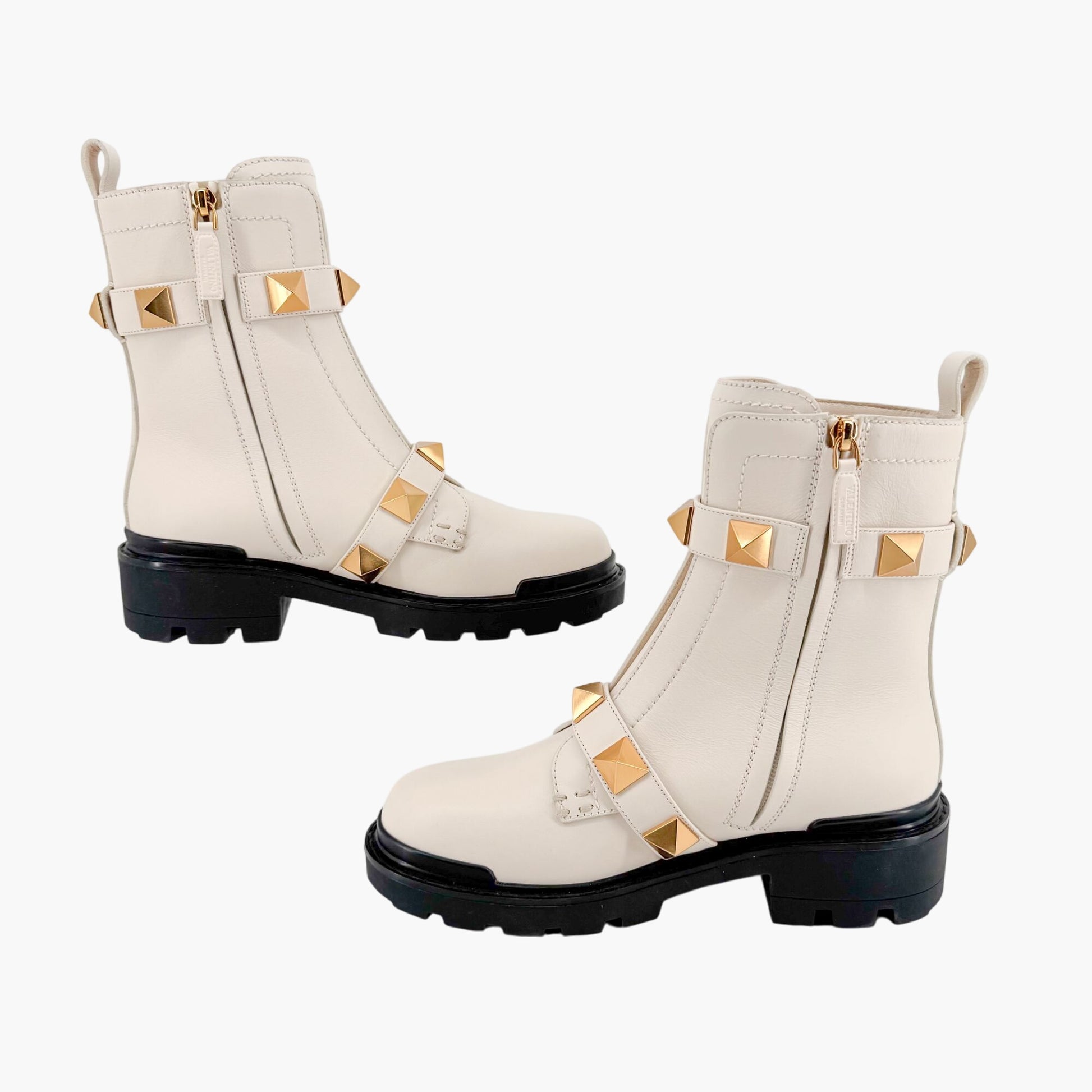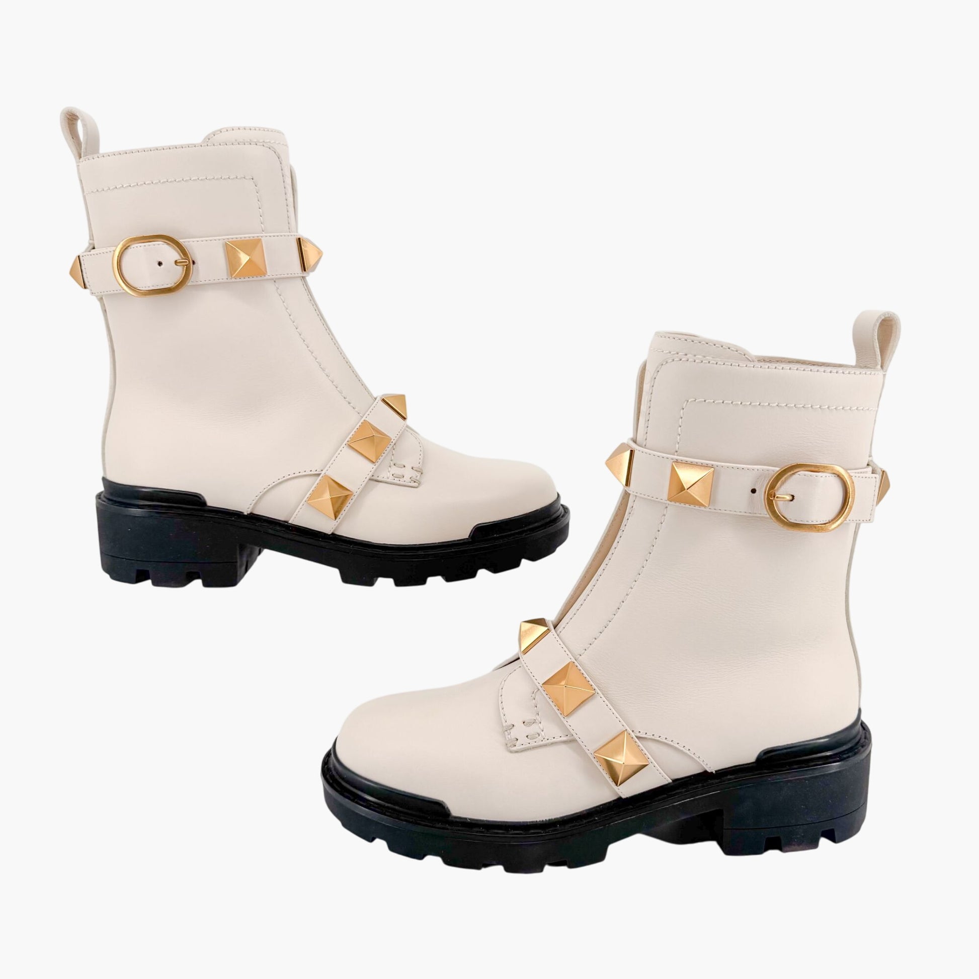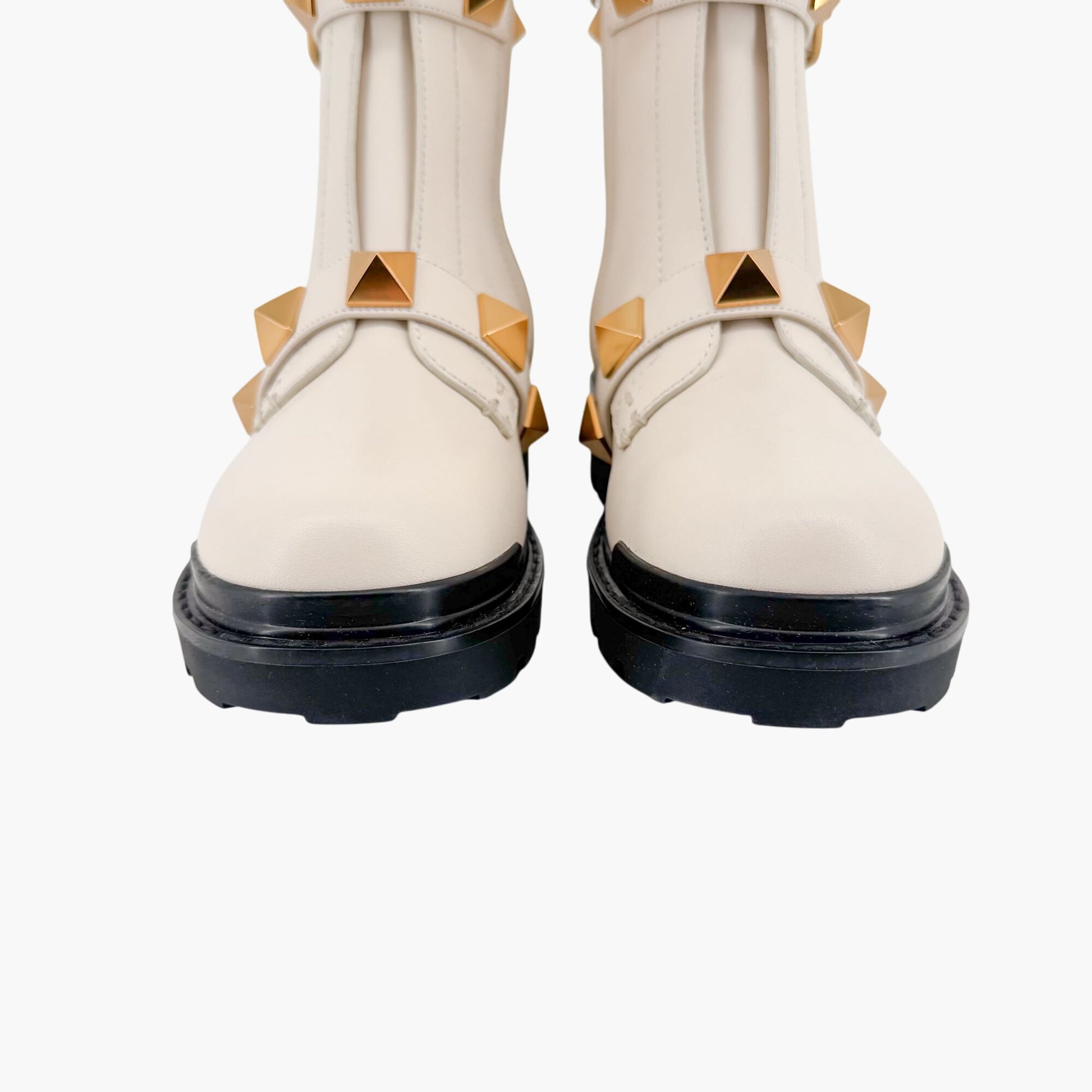 Valentino Garavani Roman Stud Combat Boots in White Leather Size 37
