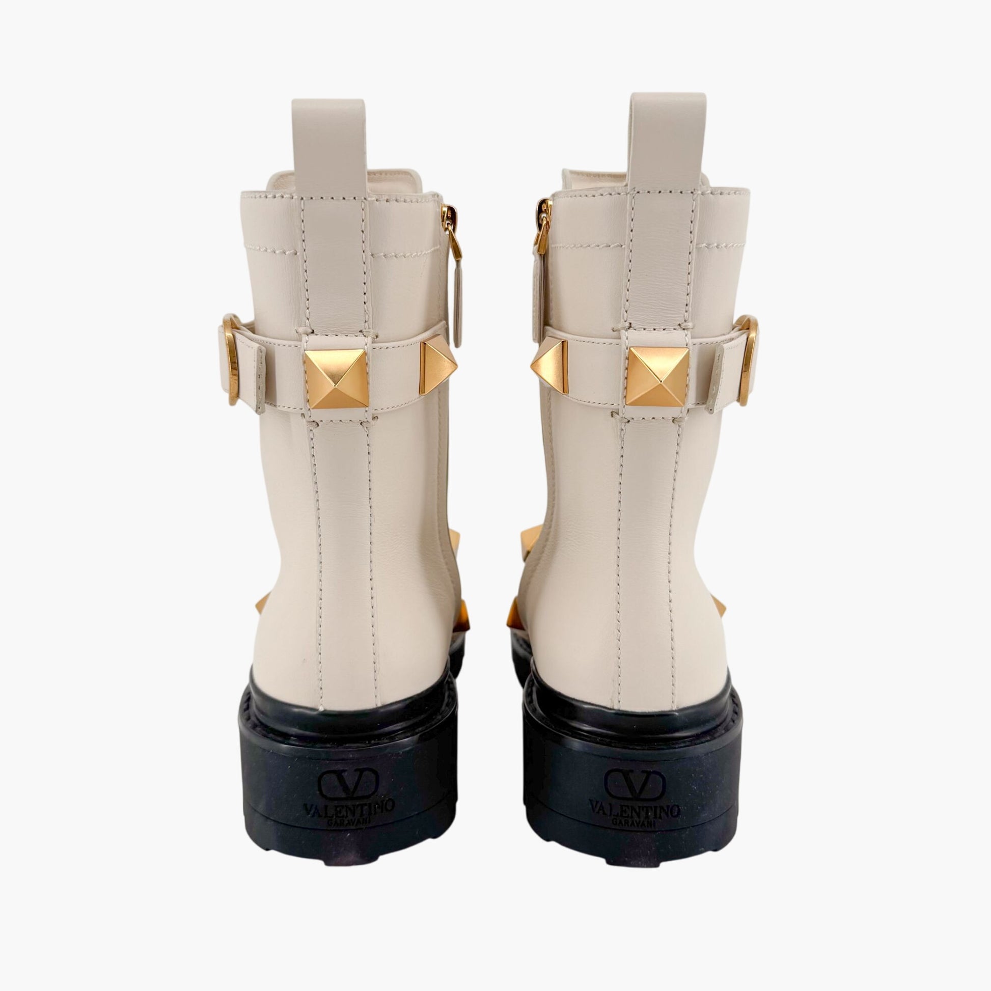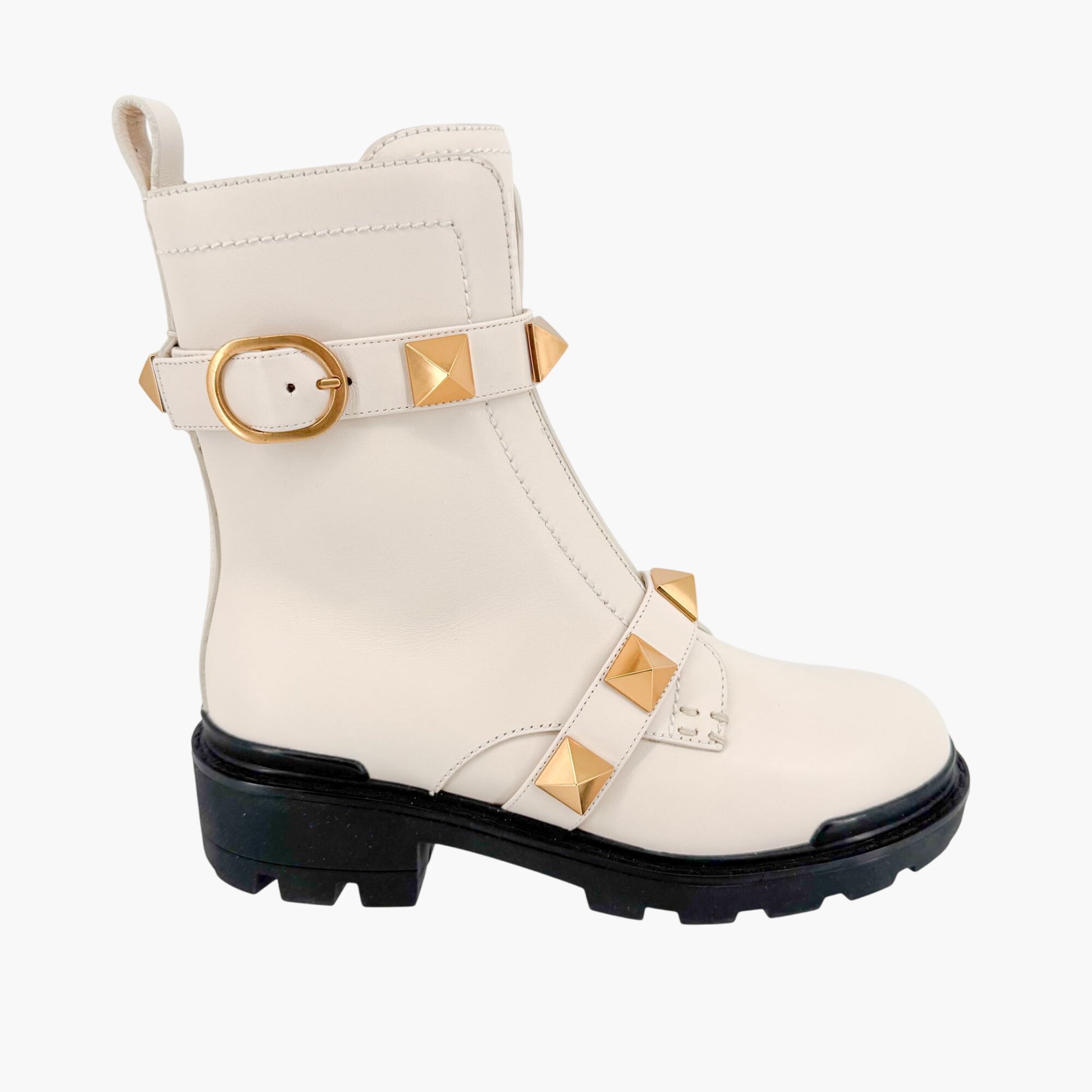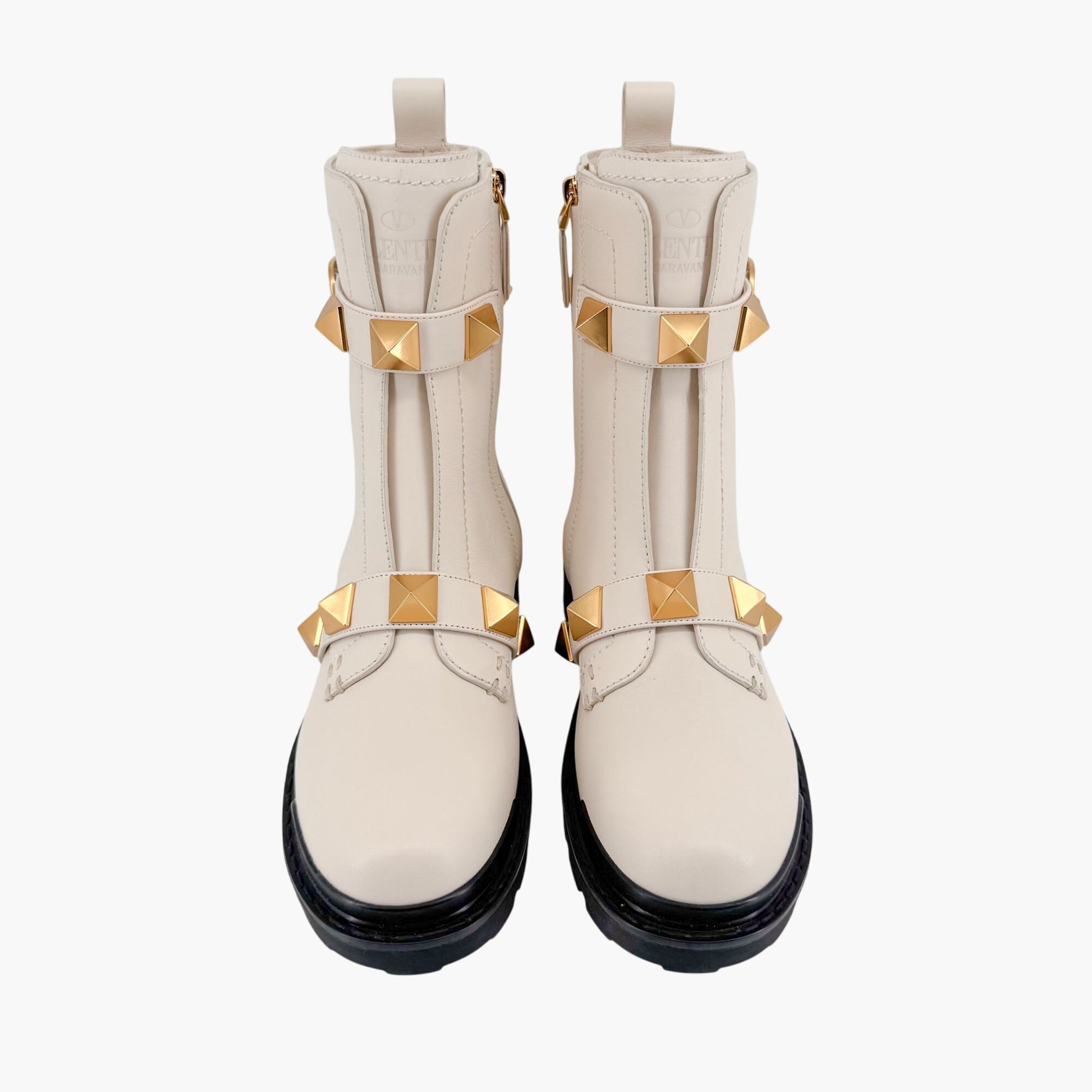 Valentino Garavani Roman Stud Combat Boots in White Leather Size 37