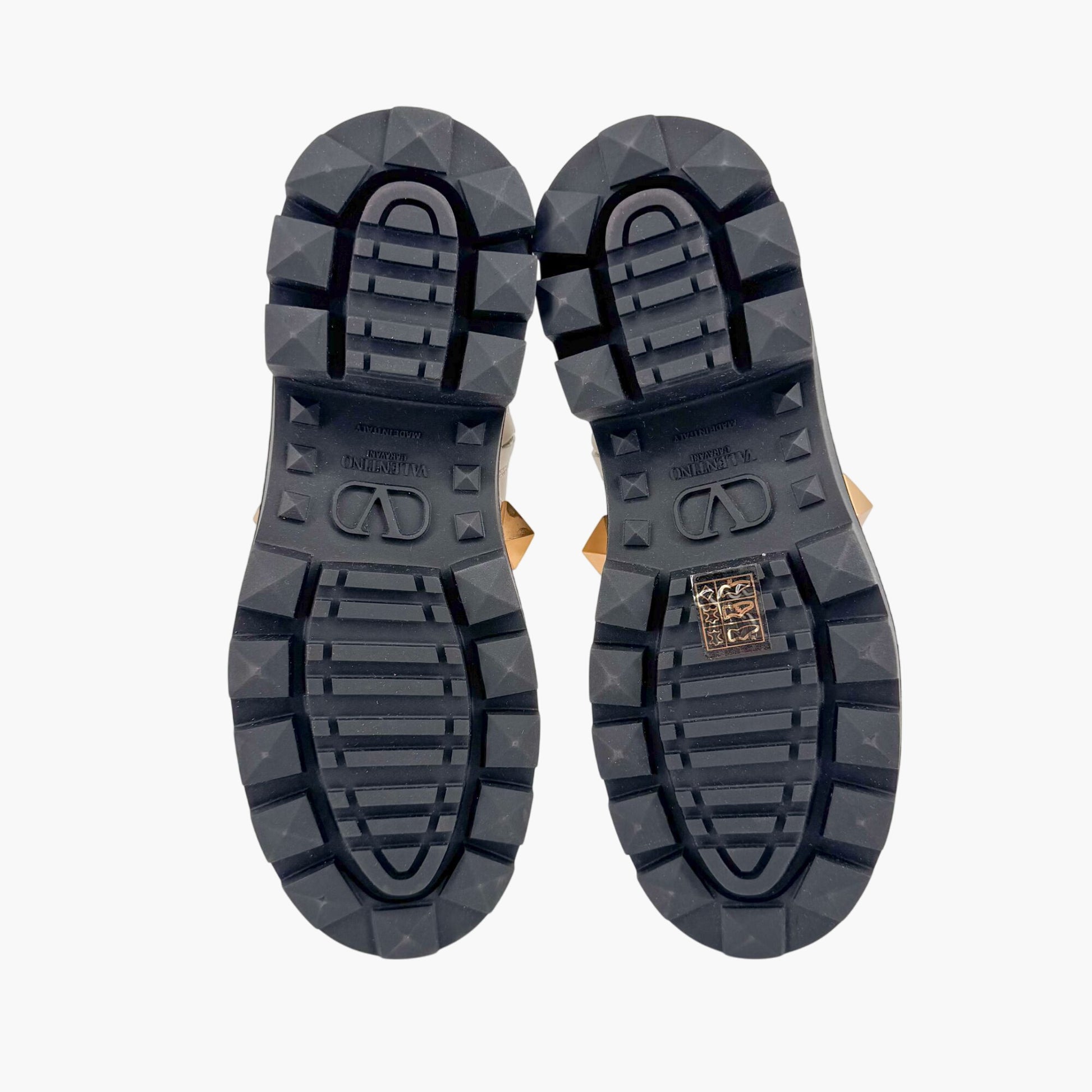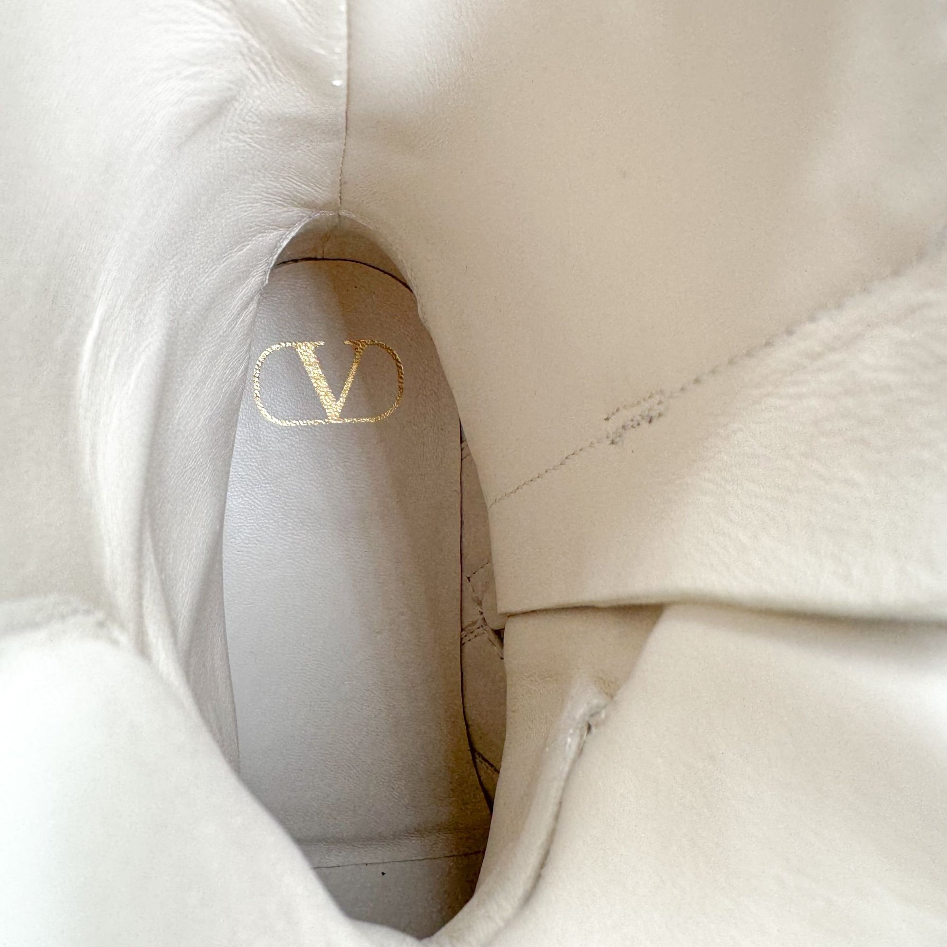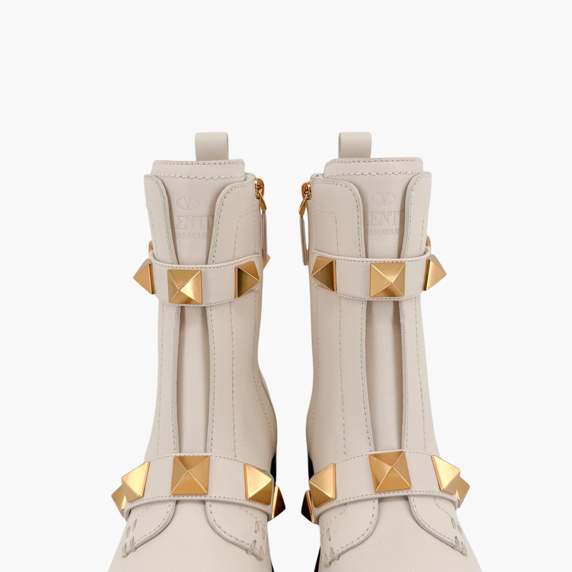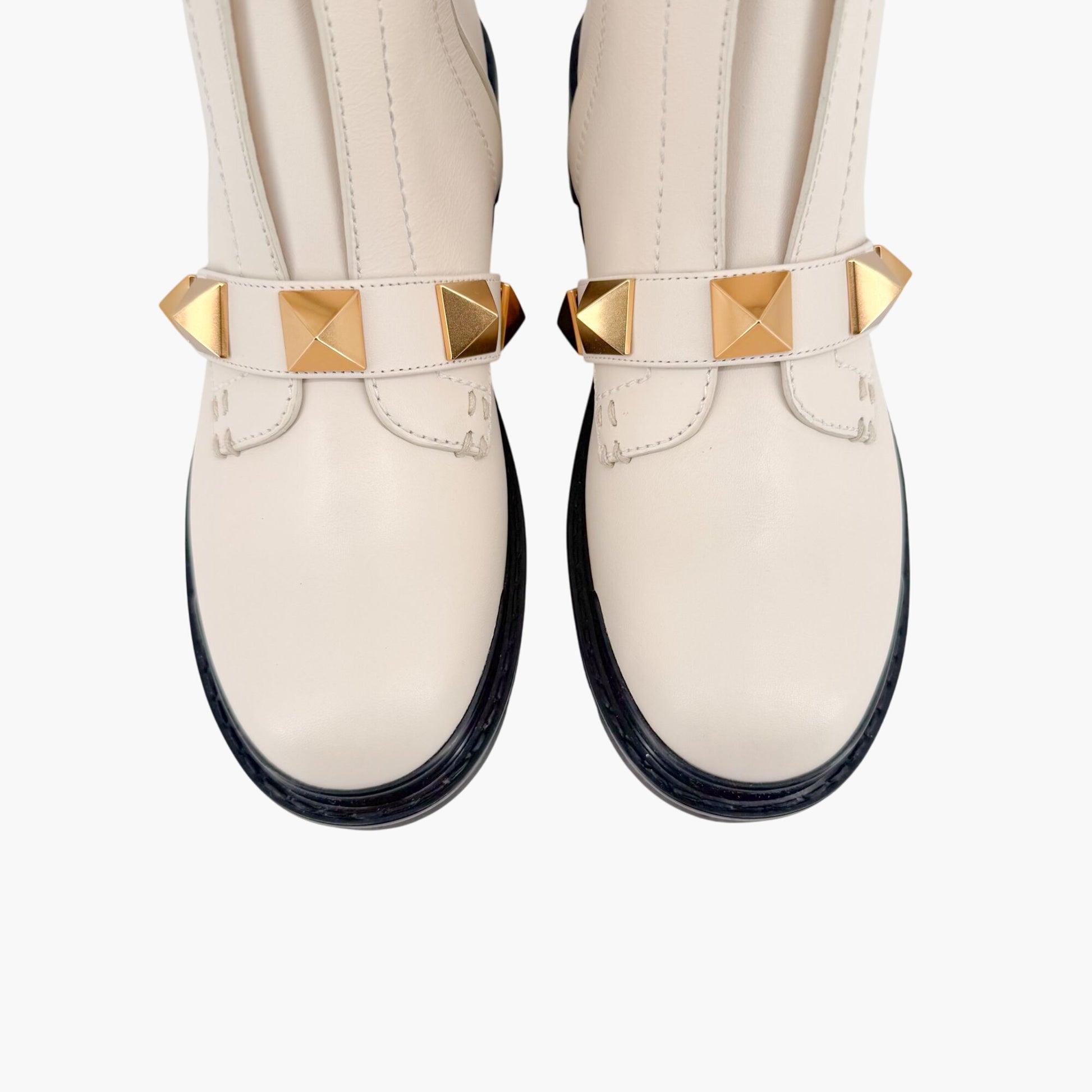 Valentino Garavani Roman Stud Combat Boots in White Leather Size 37
