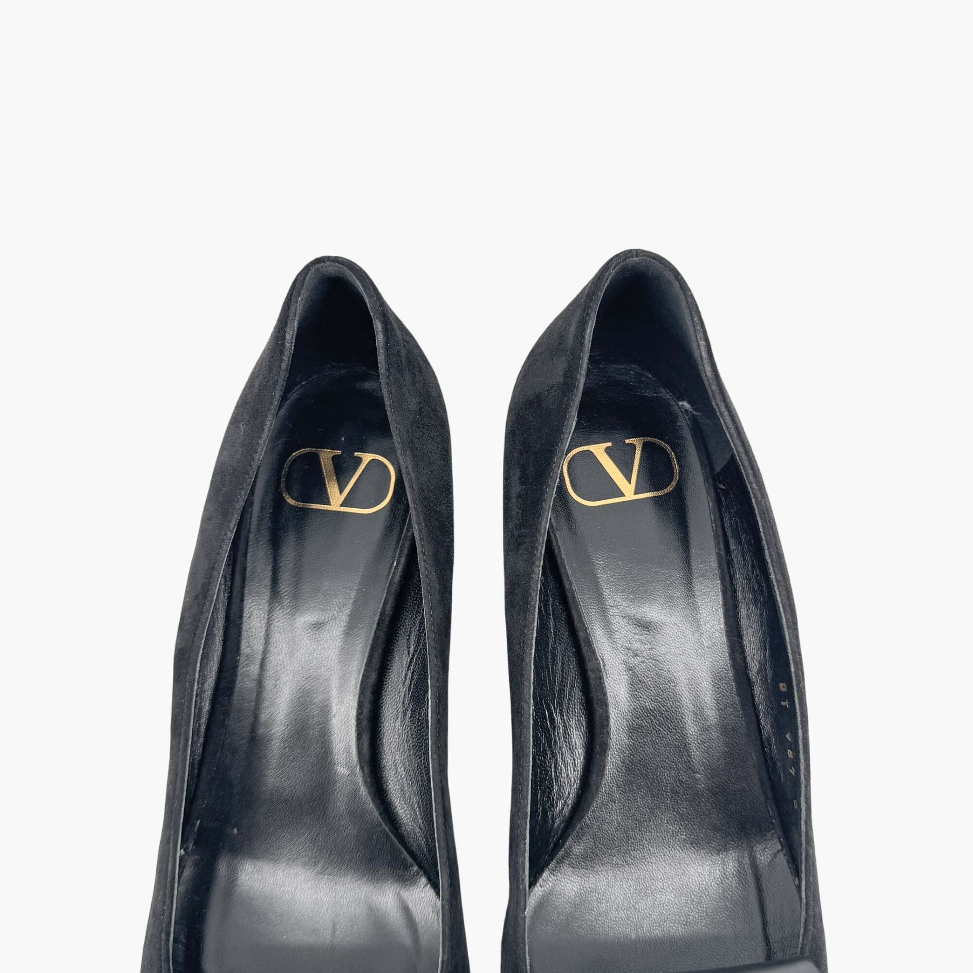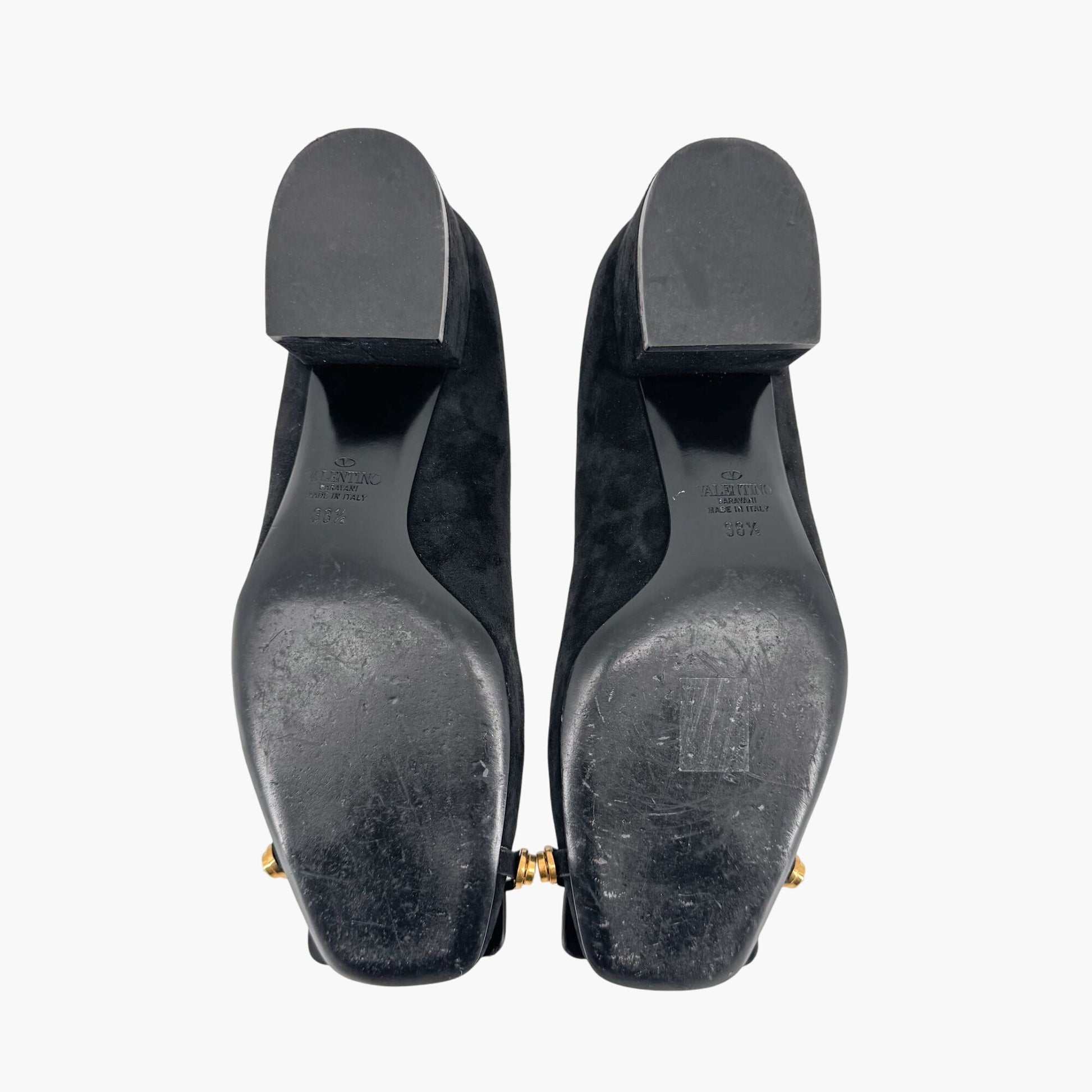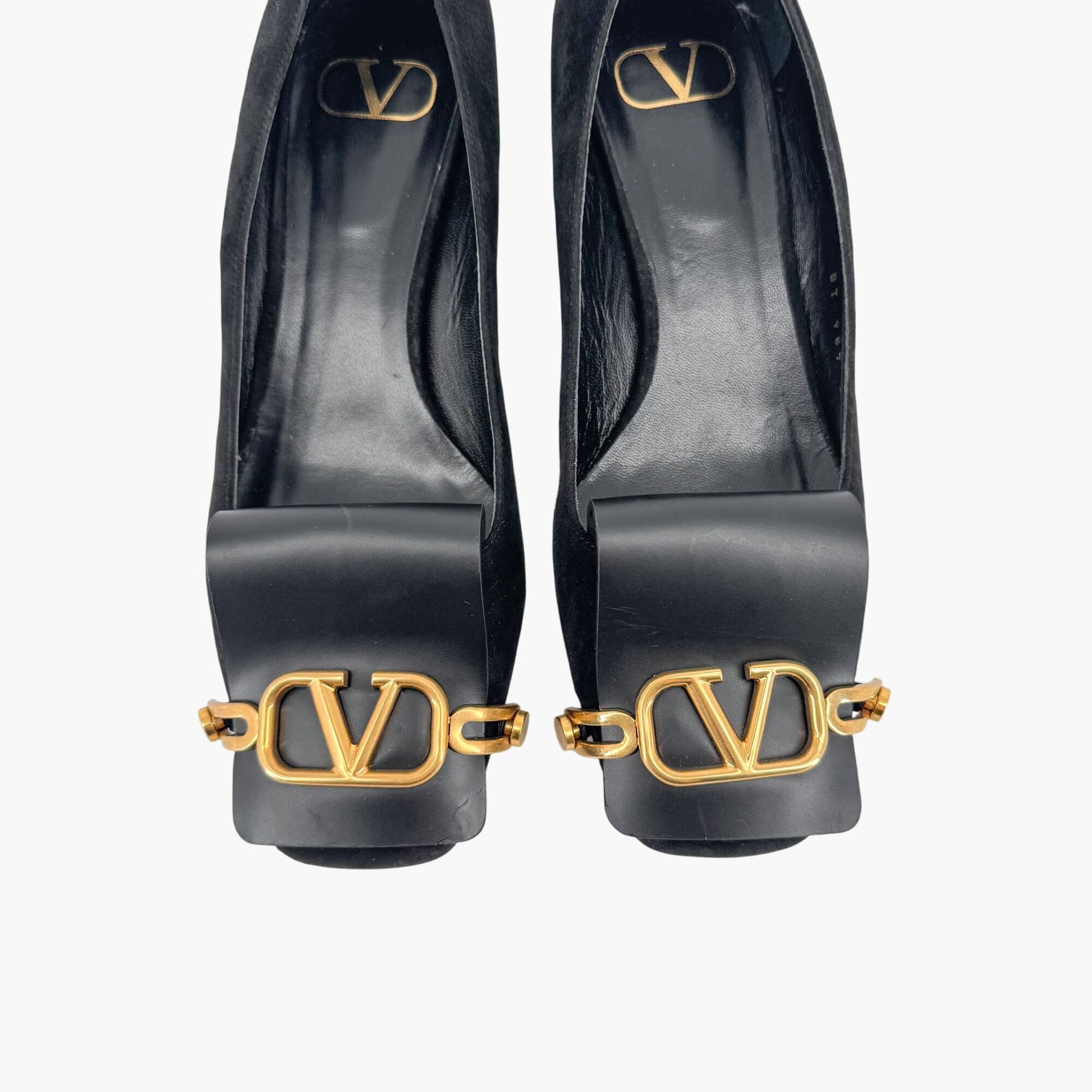 Valentino Garavani VLogo Block Heel Pumps Black Suede – Size 38.5
