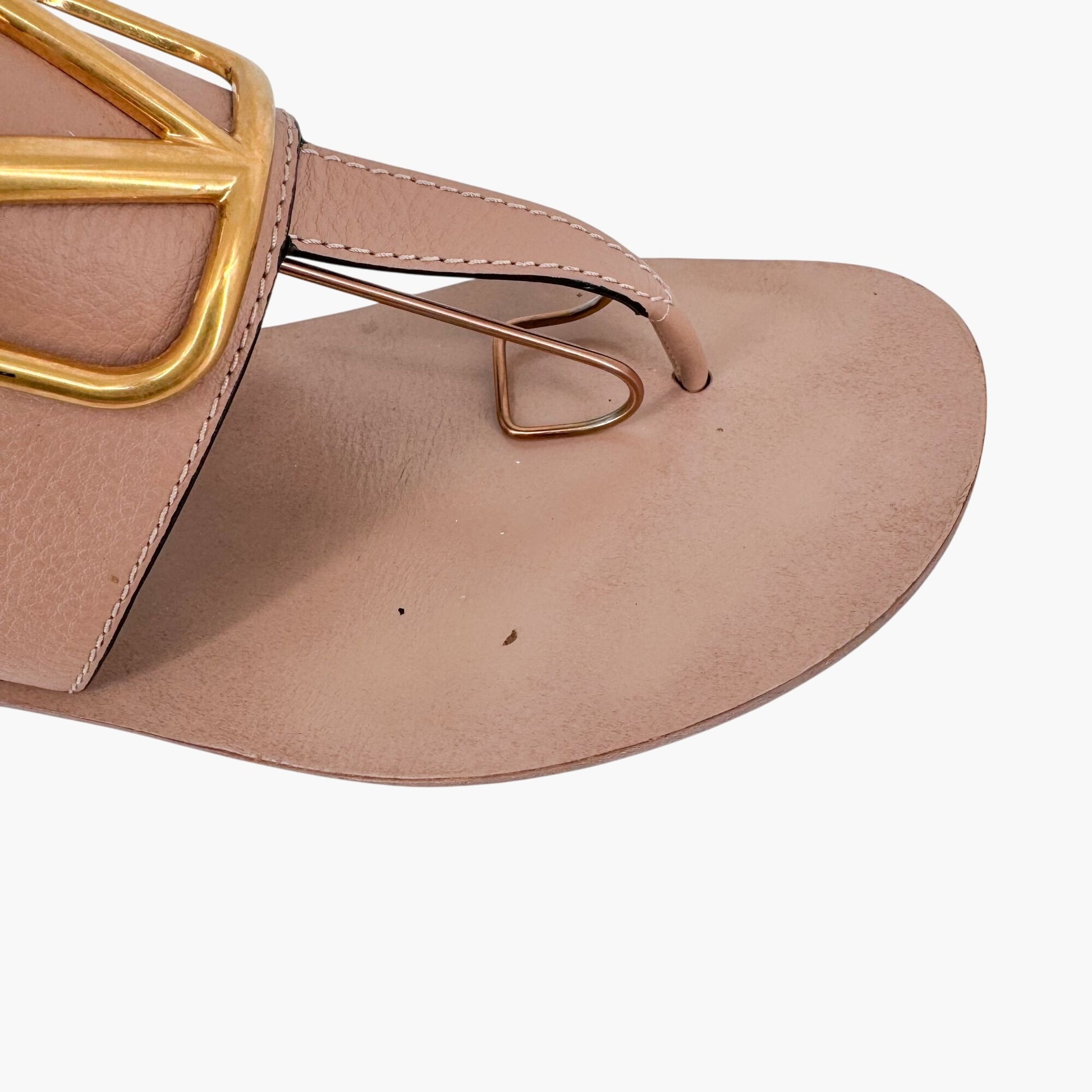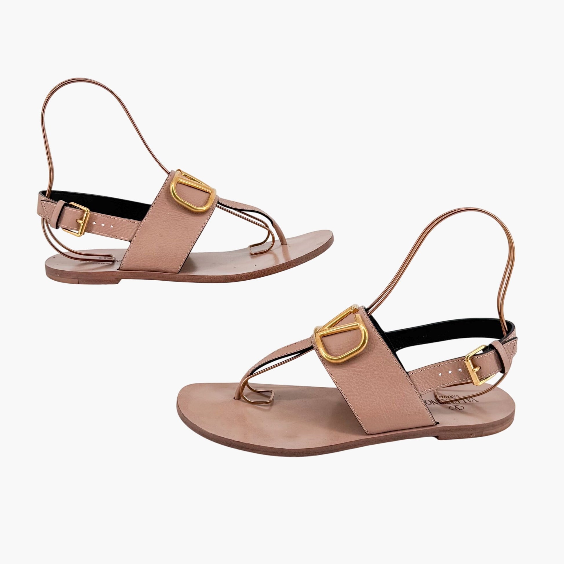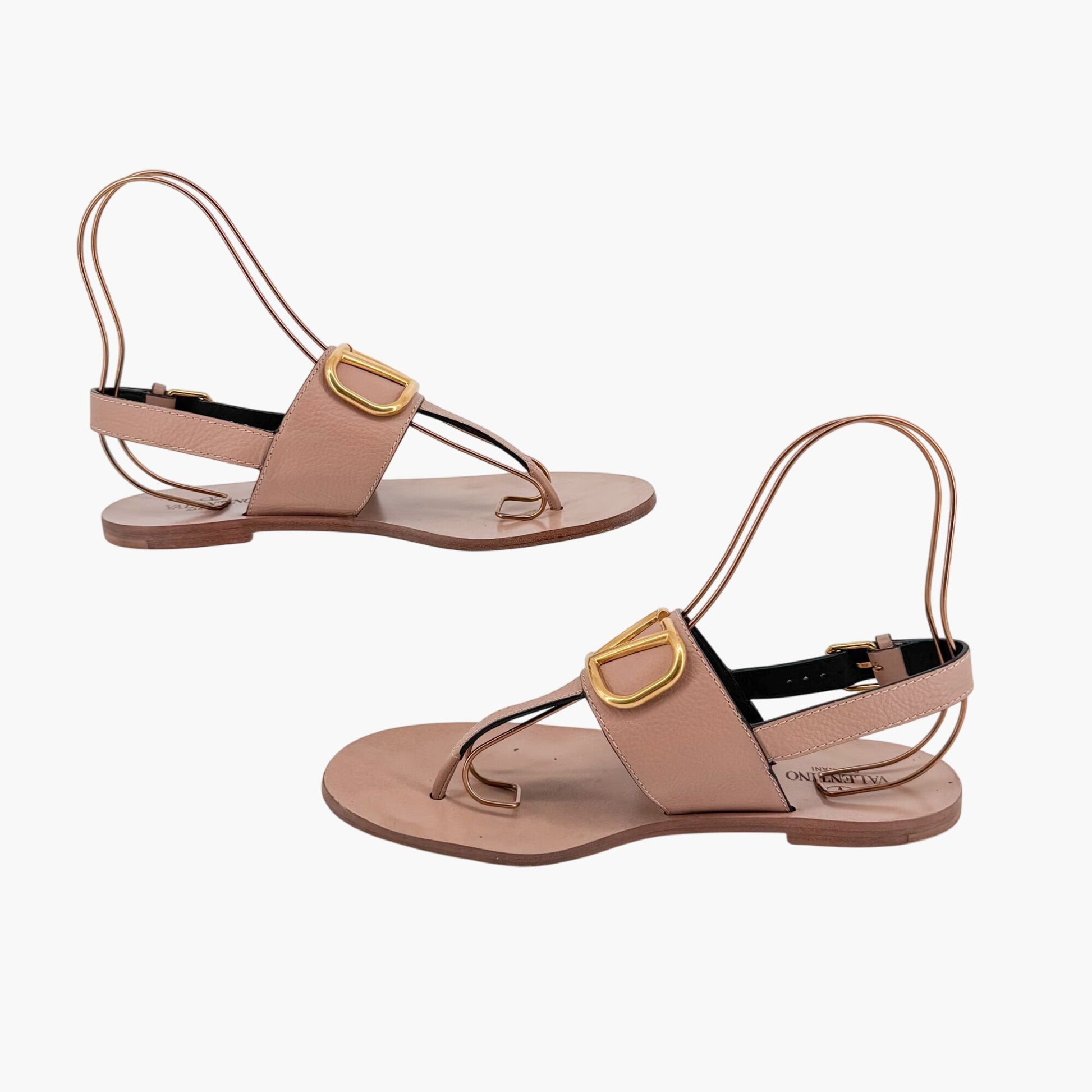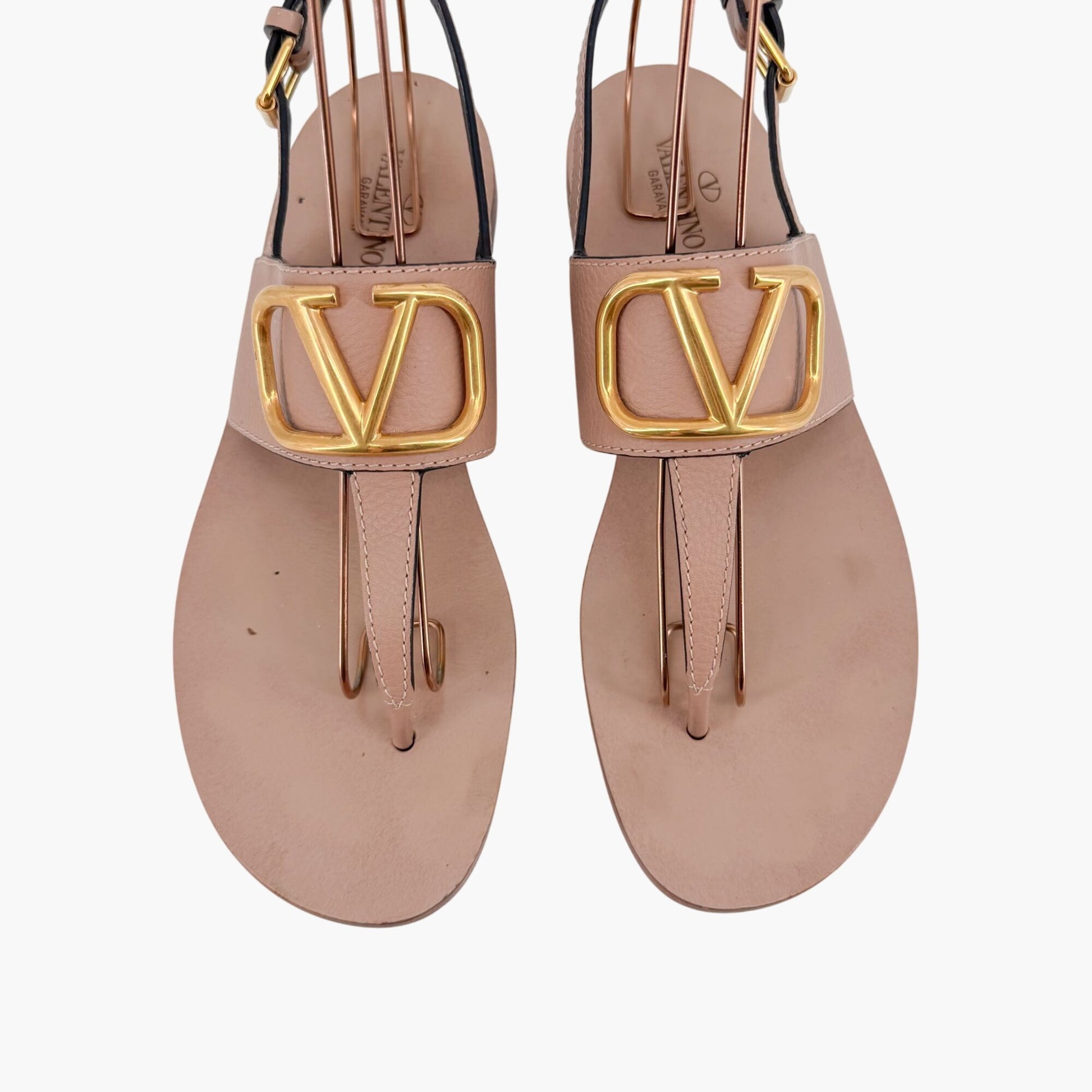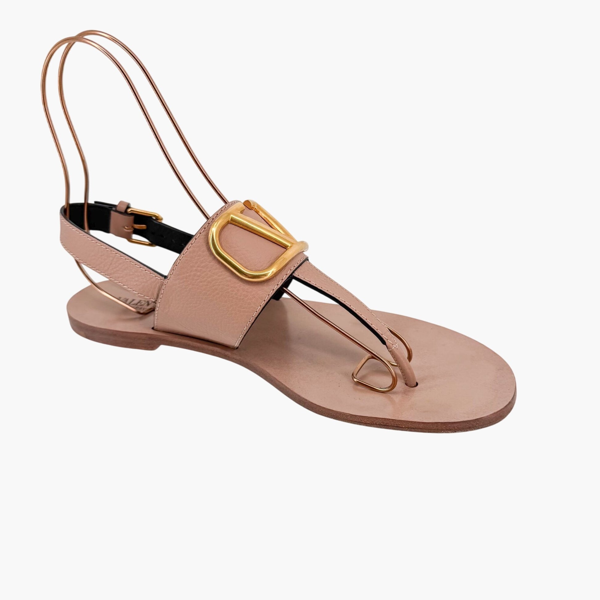 Valentino Garavani Vlogo T-Strap Flat Sandals in Beige Leather – Size 40.5