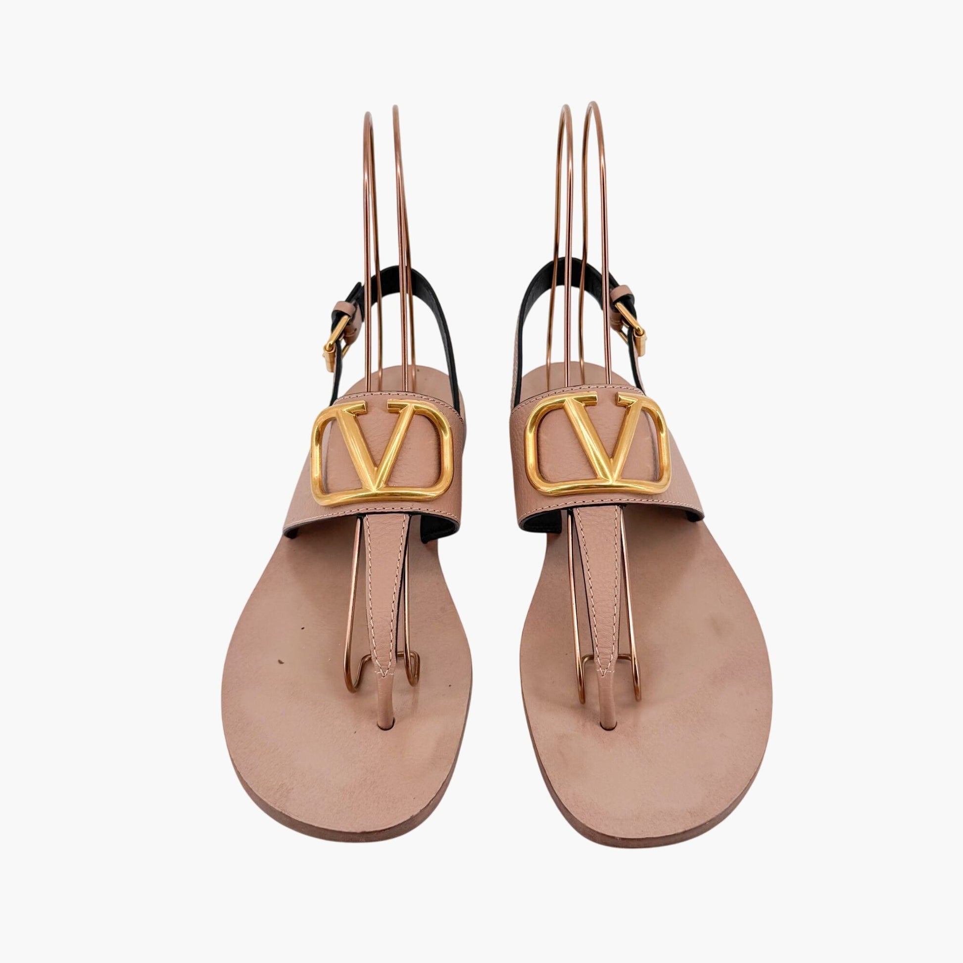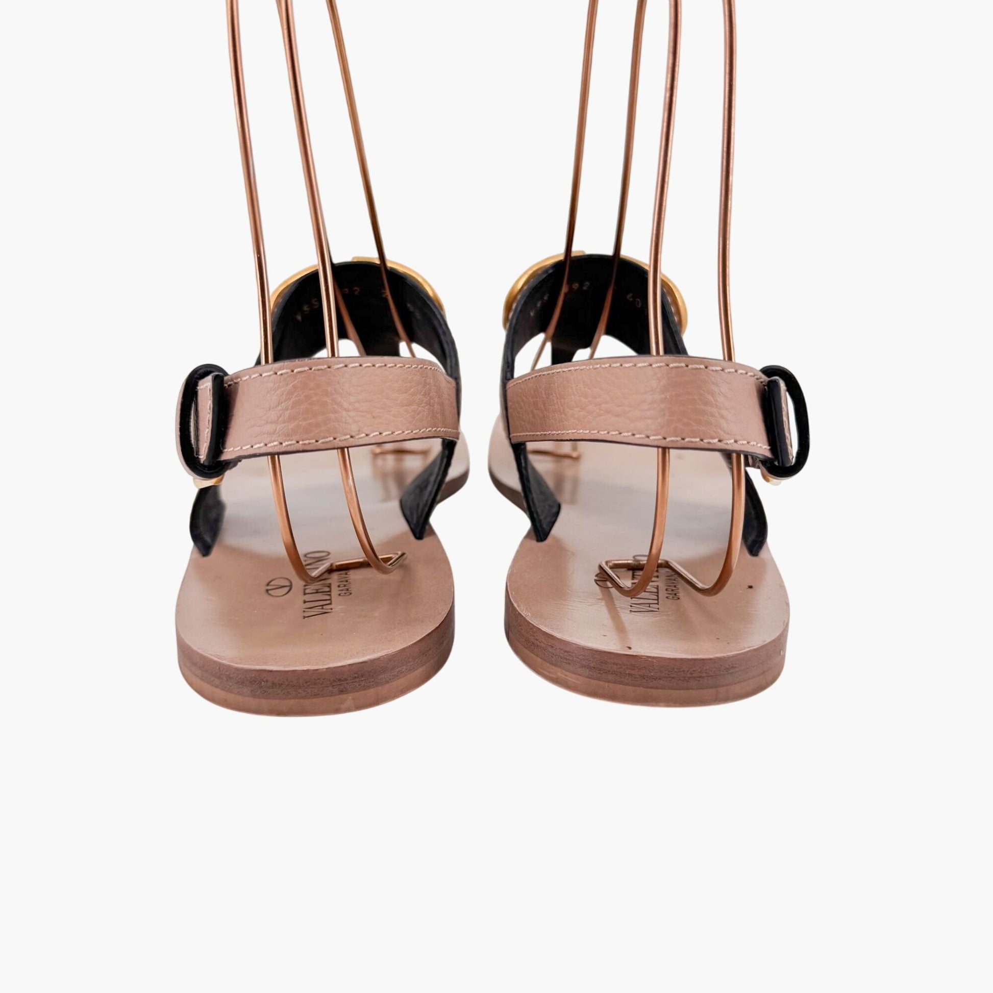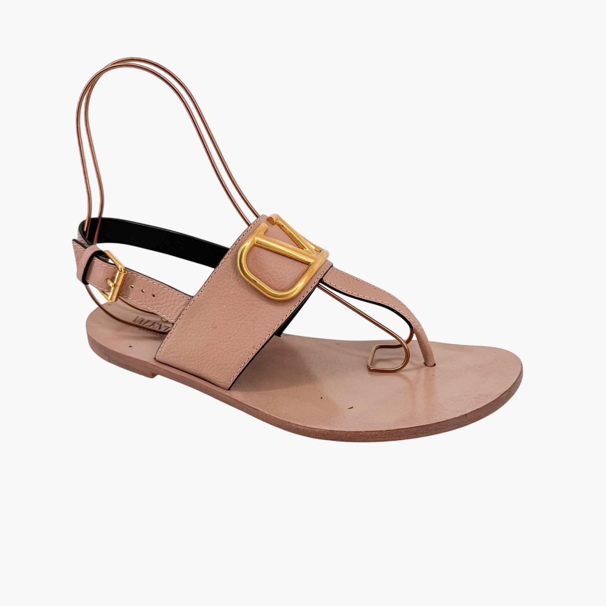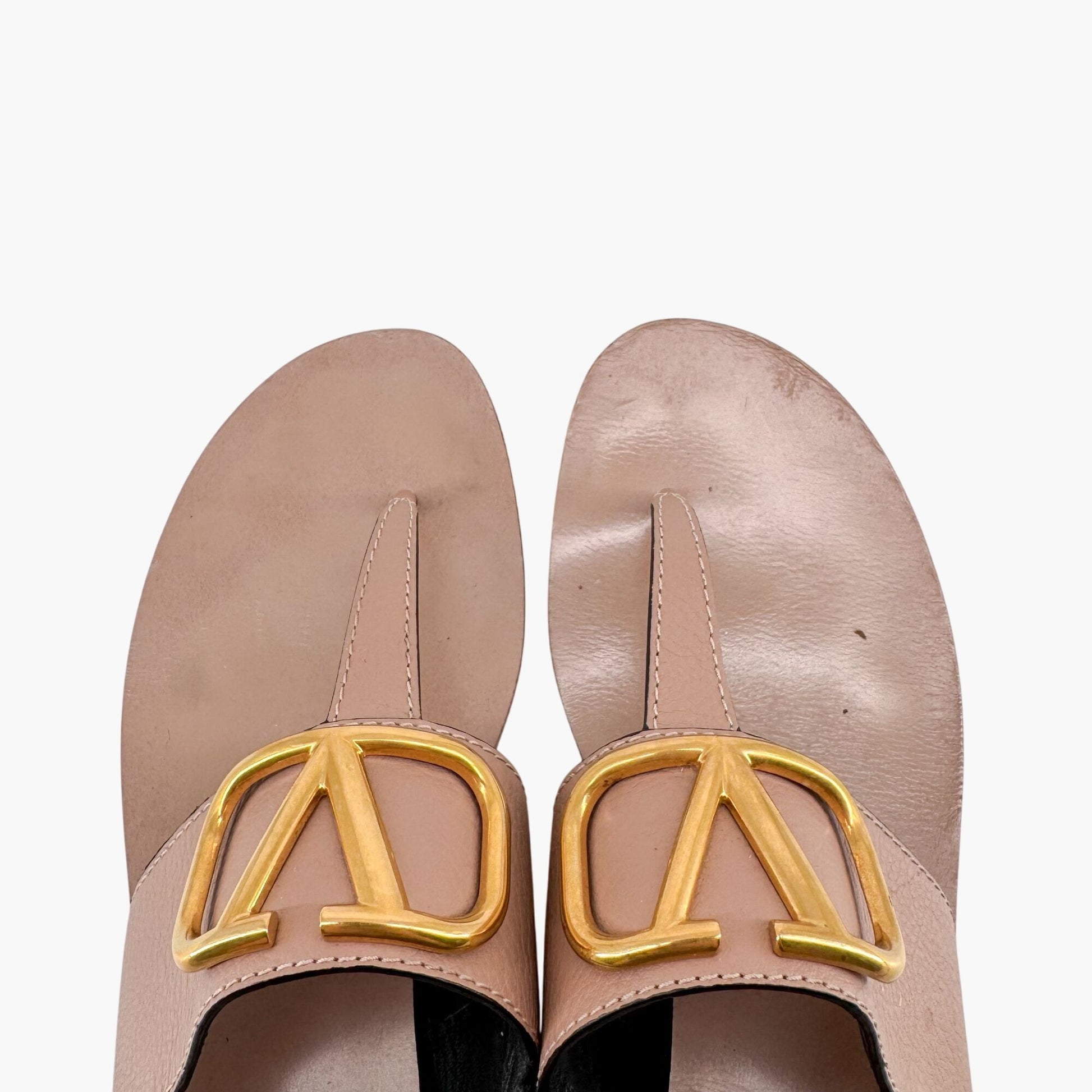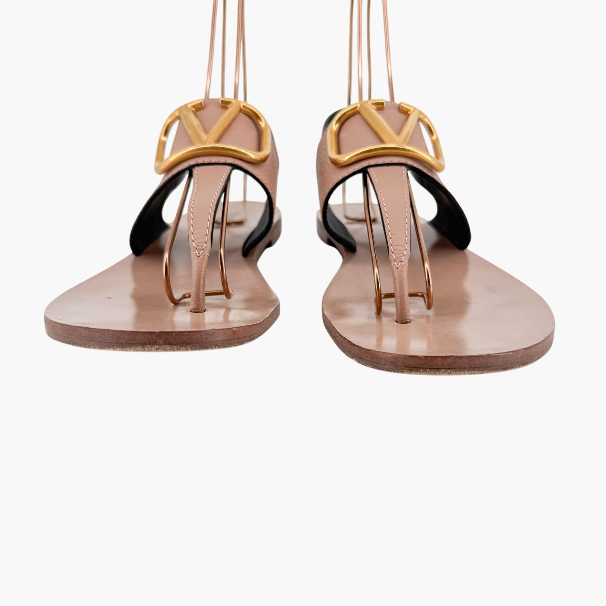 Valentino Garavani Vlogo T-Strap Flat Sandals in Beige Leather – Size 40.5