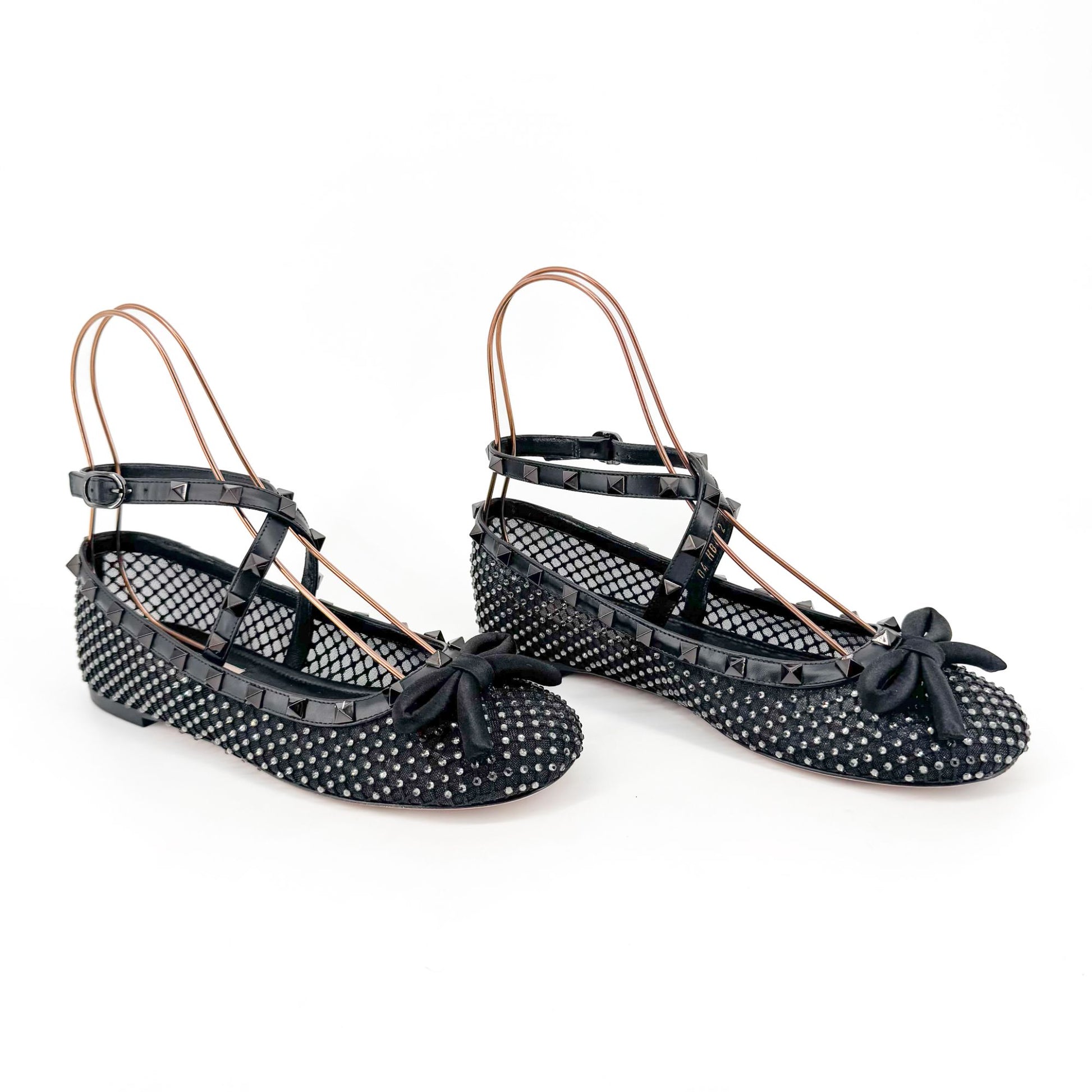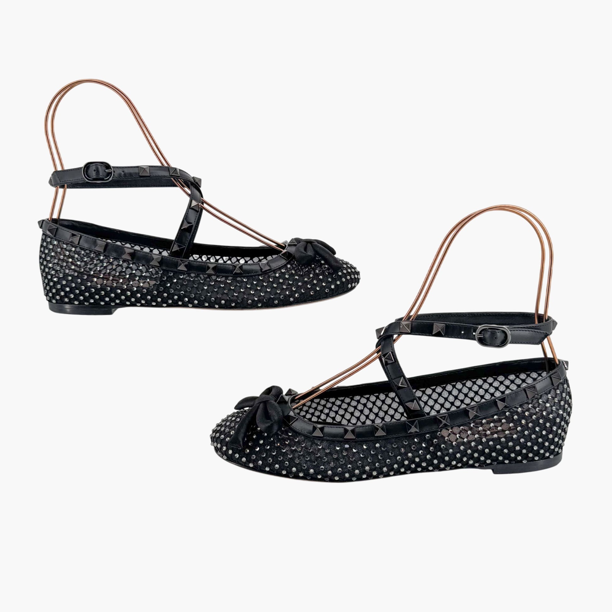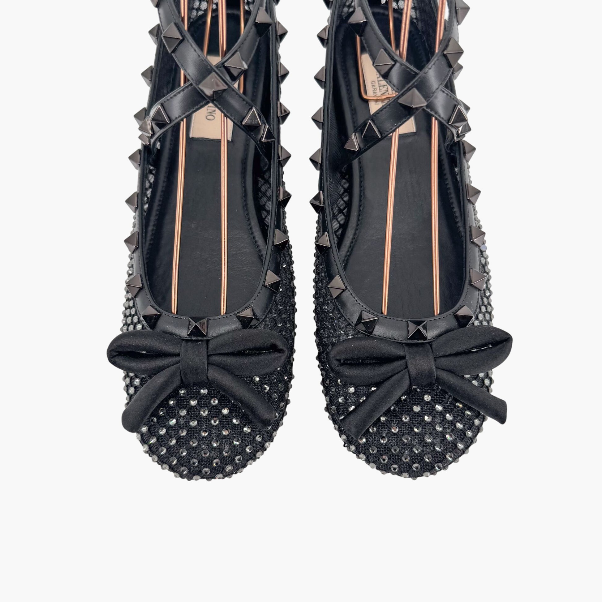 Valentino Rockstud Crystal Mesh Ballet Flats in Black – Size 37.5