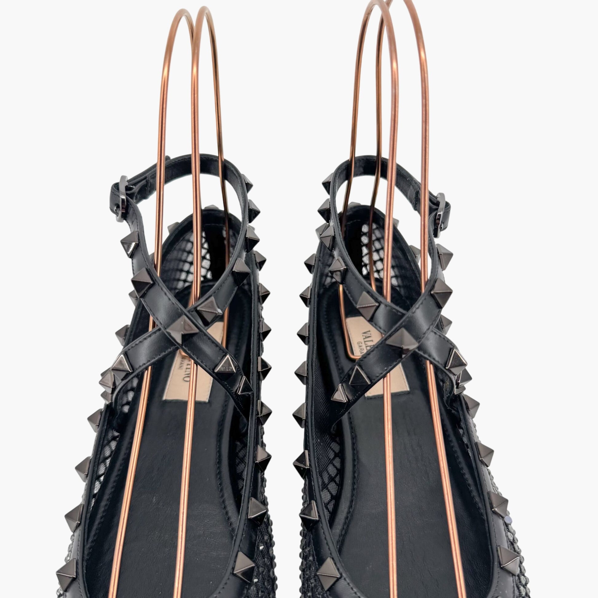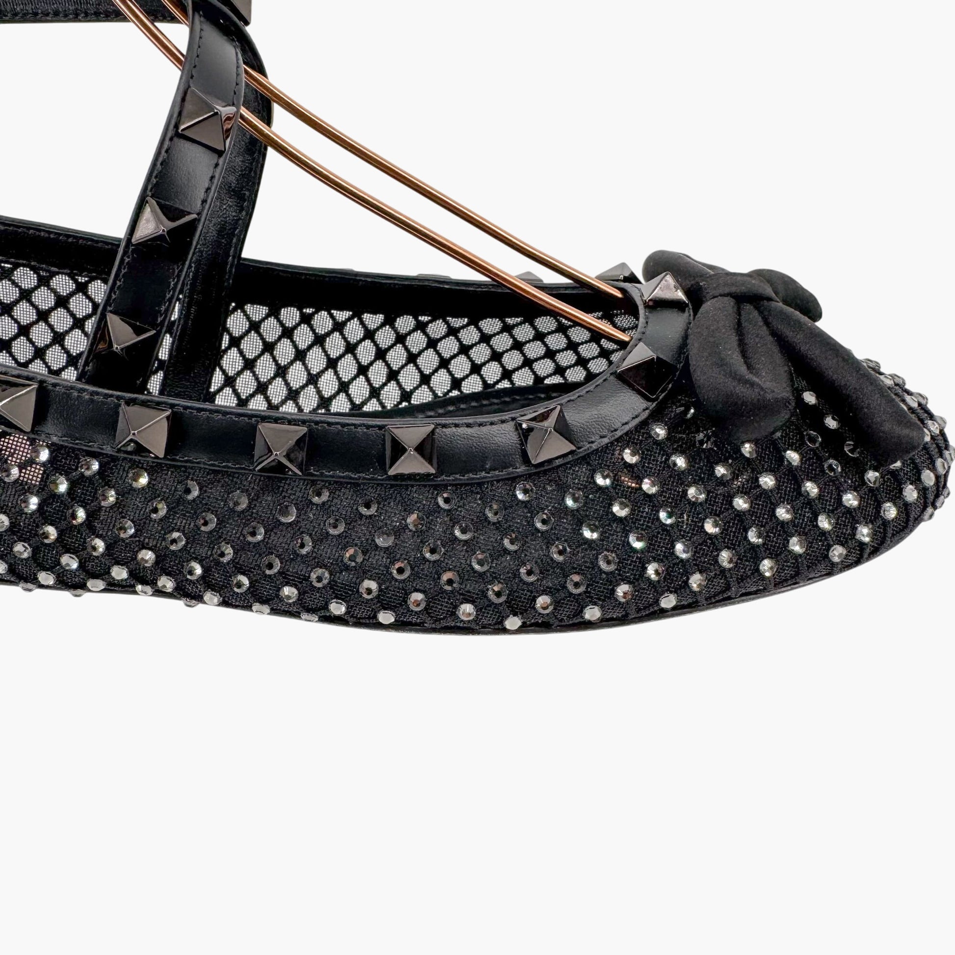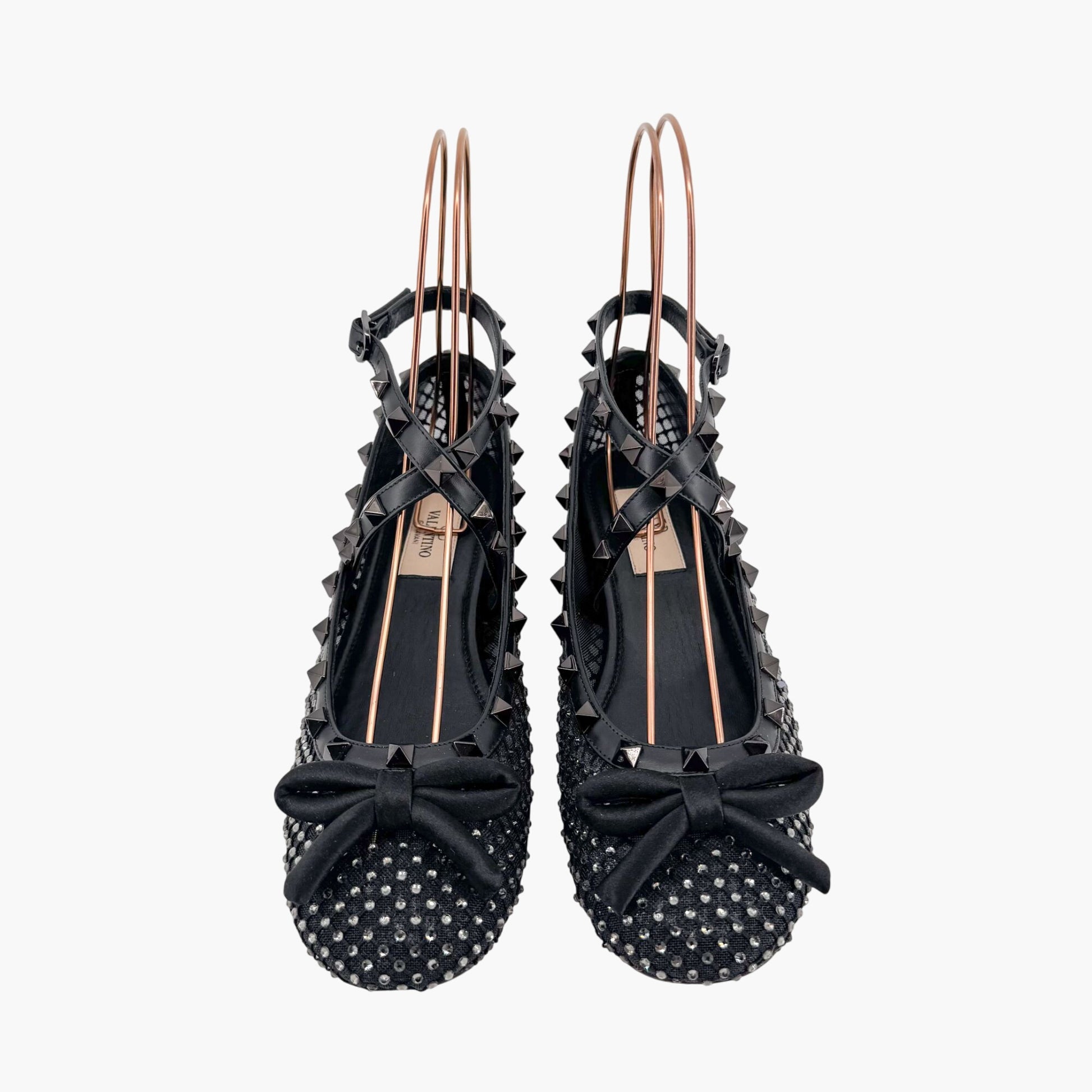 Valentino Rockstud Crystal Mesh Ballet Flats in Black – Size 37.5